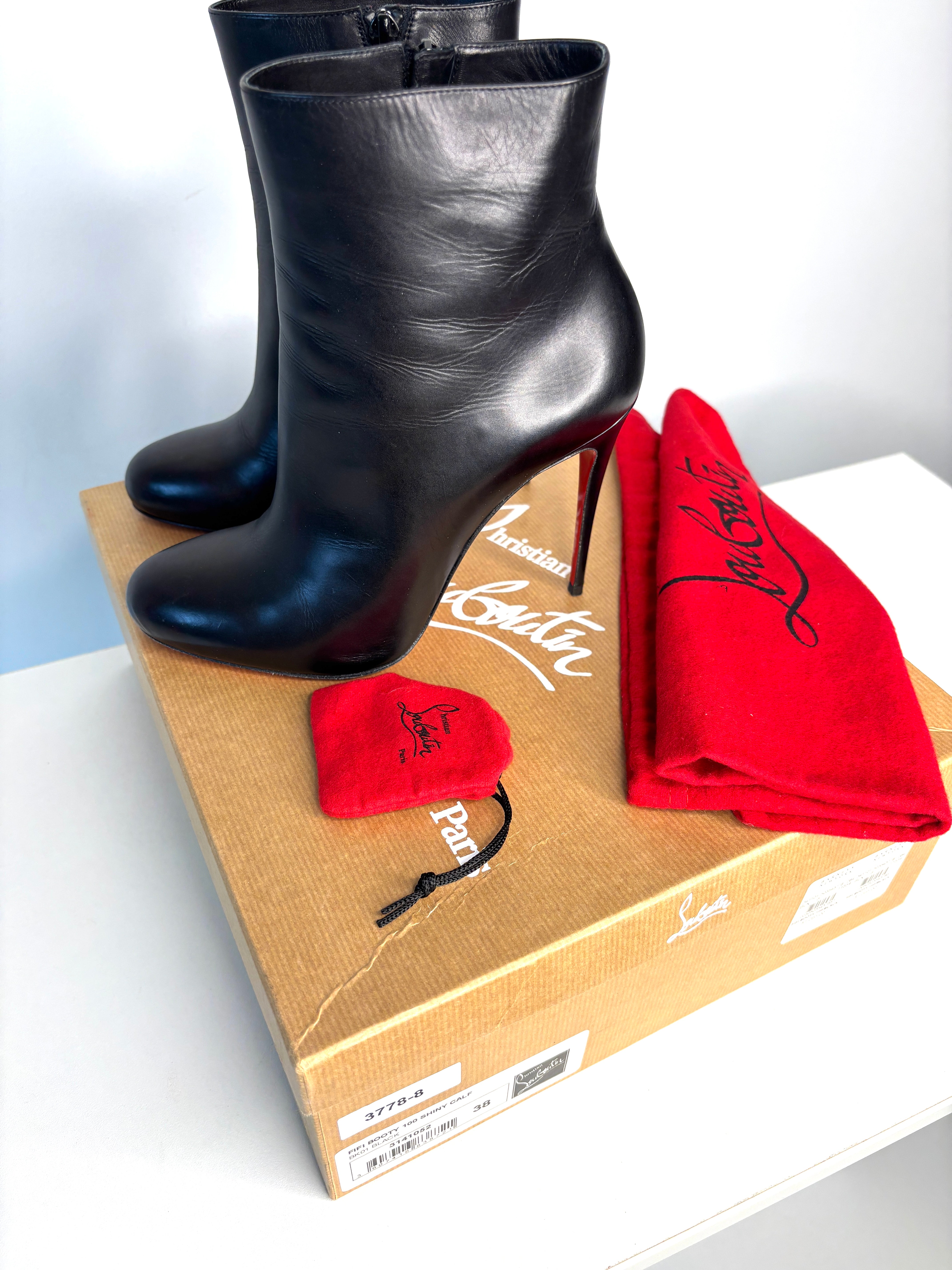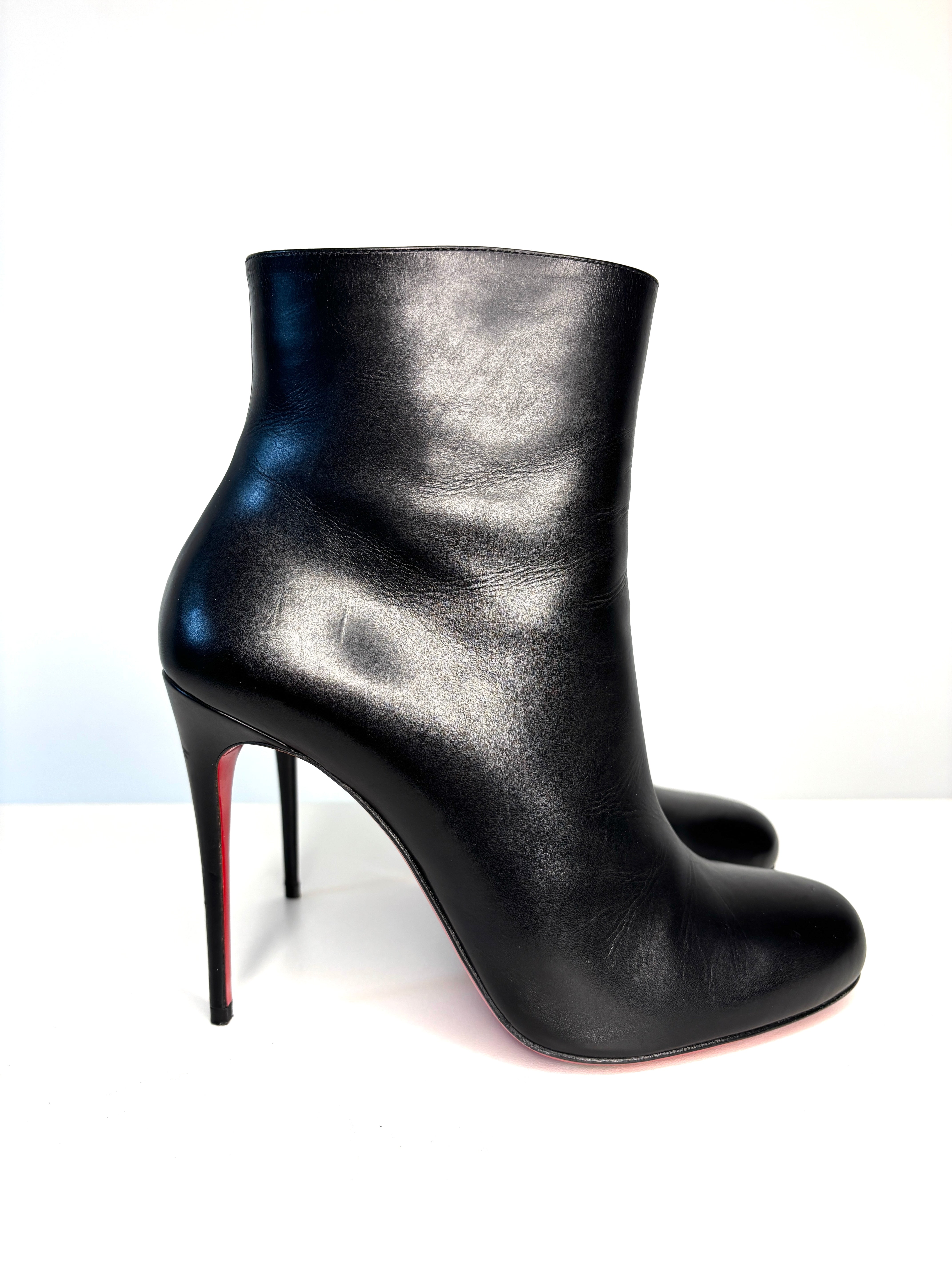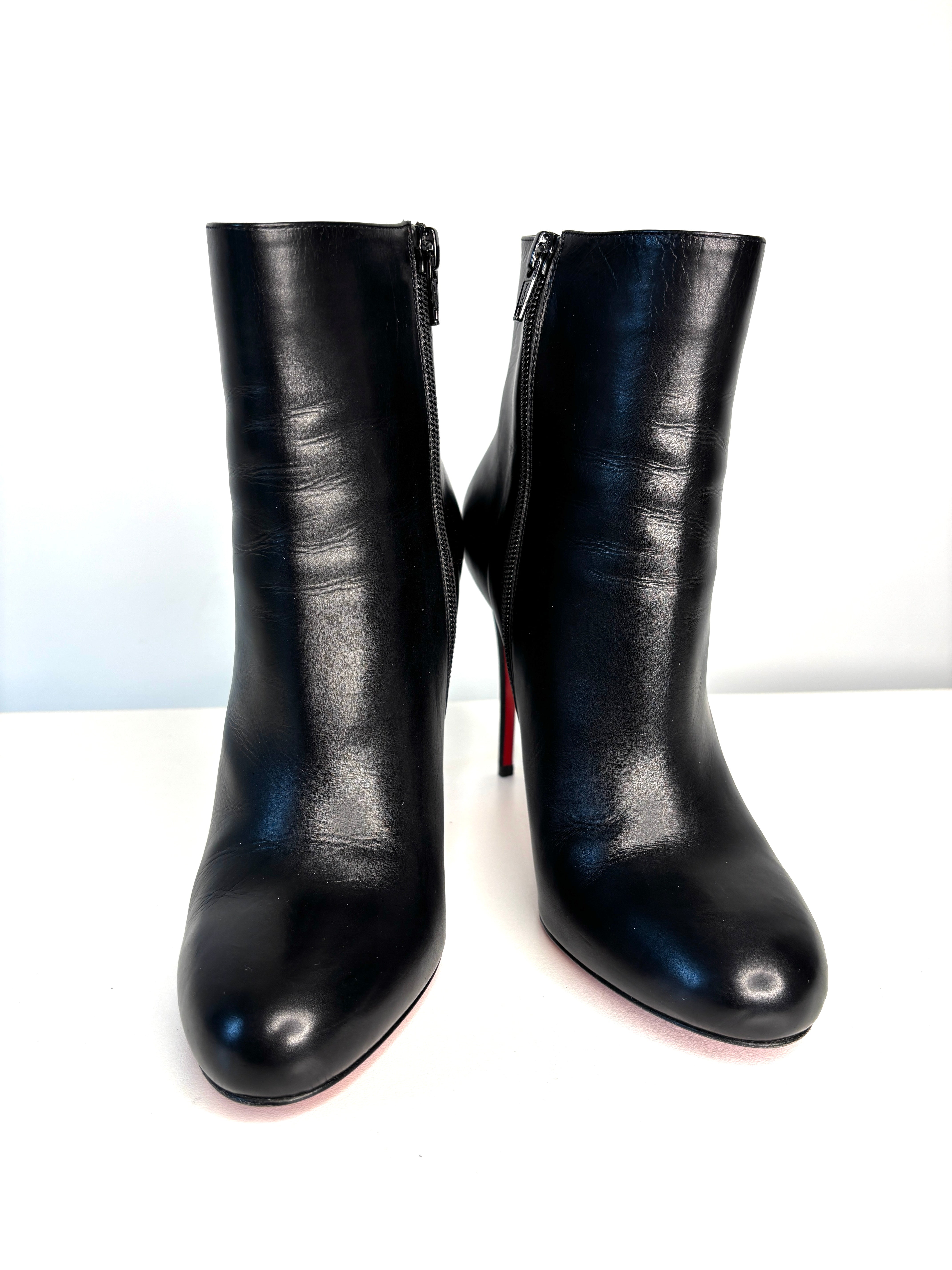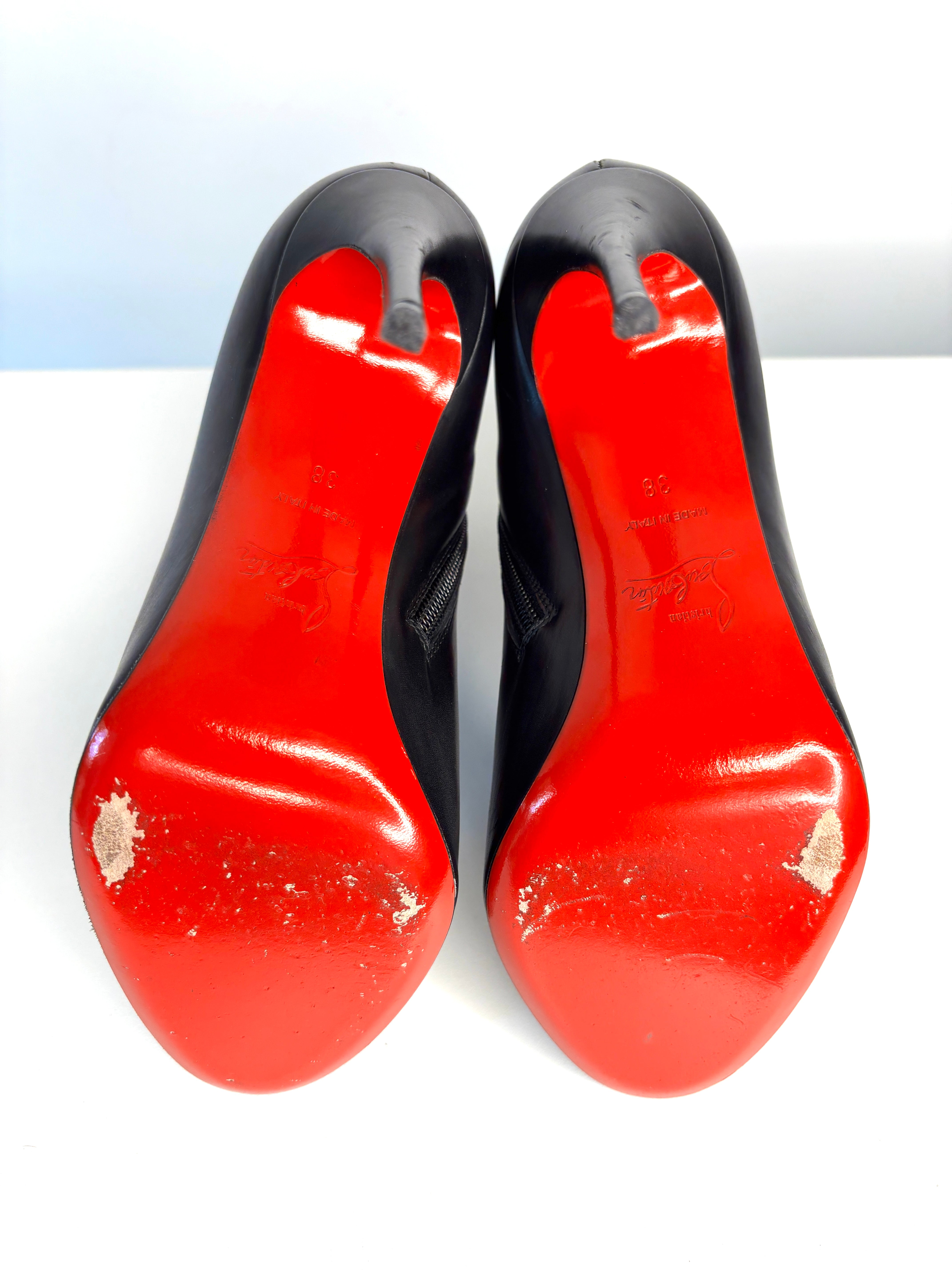 Christian Louboutin Fifi Booty 100 Black Leather Ankle Boots 38 UK5
