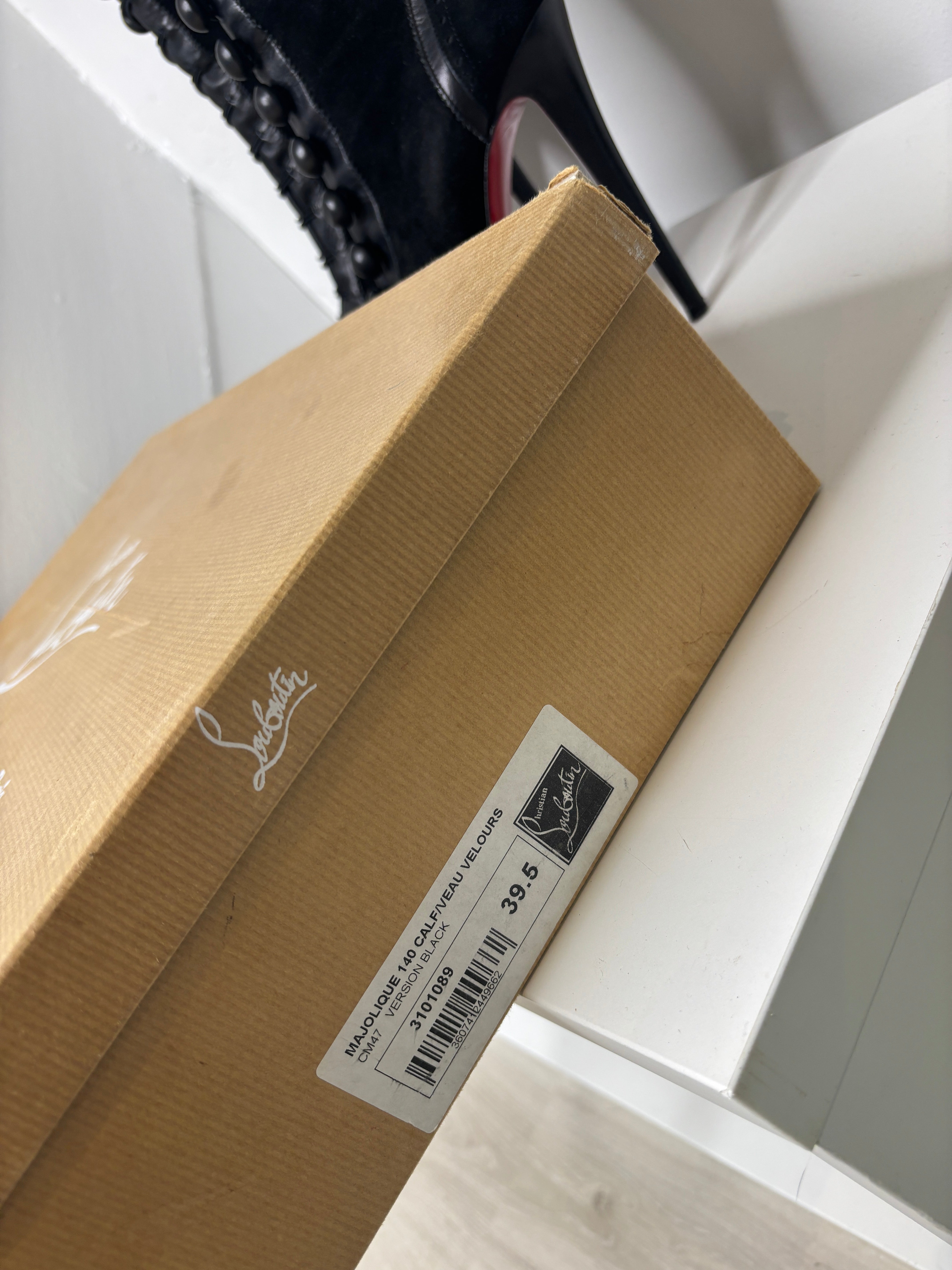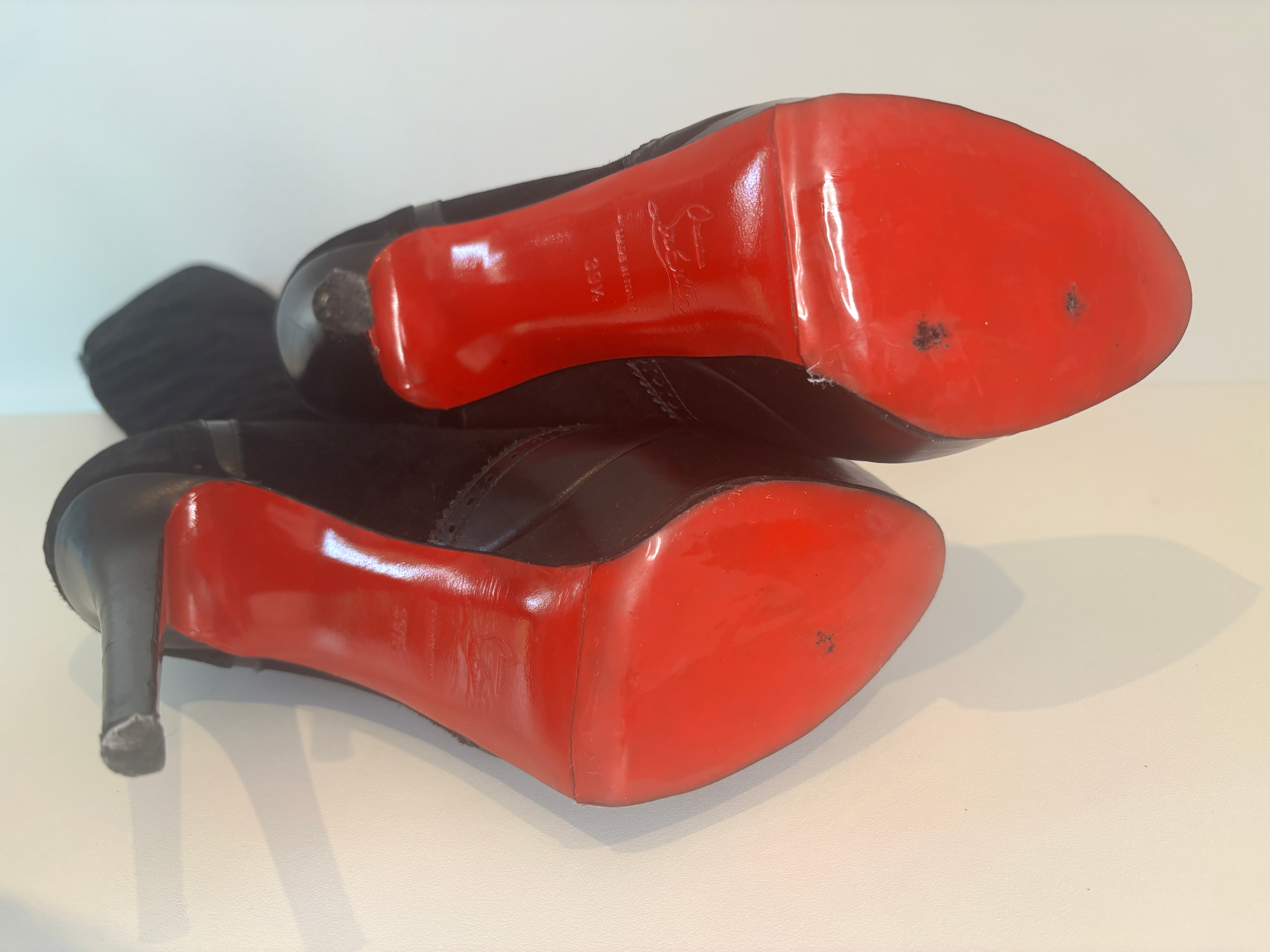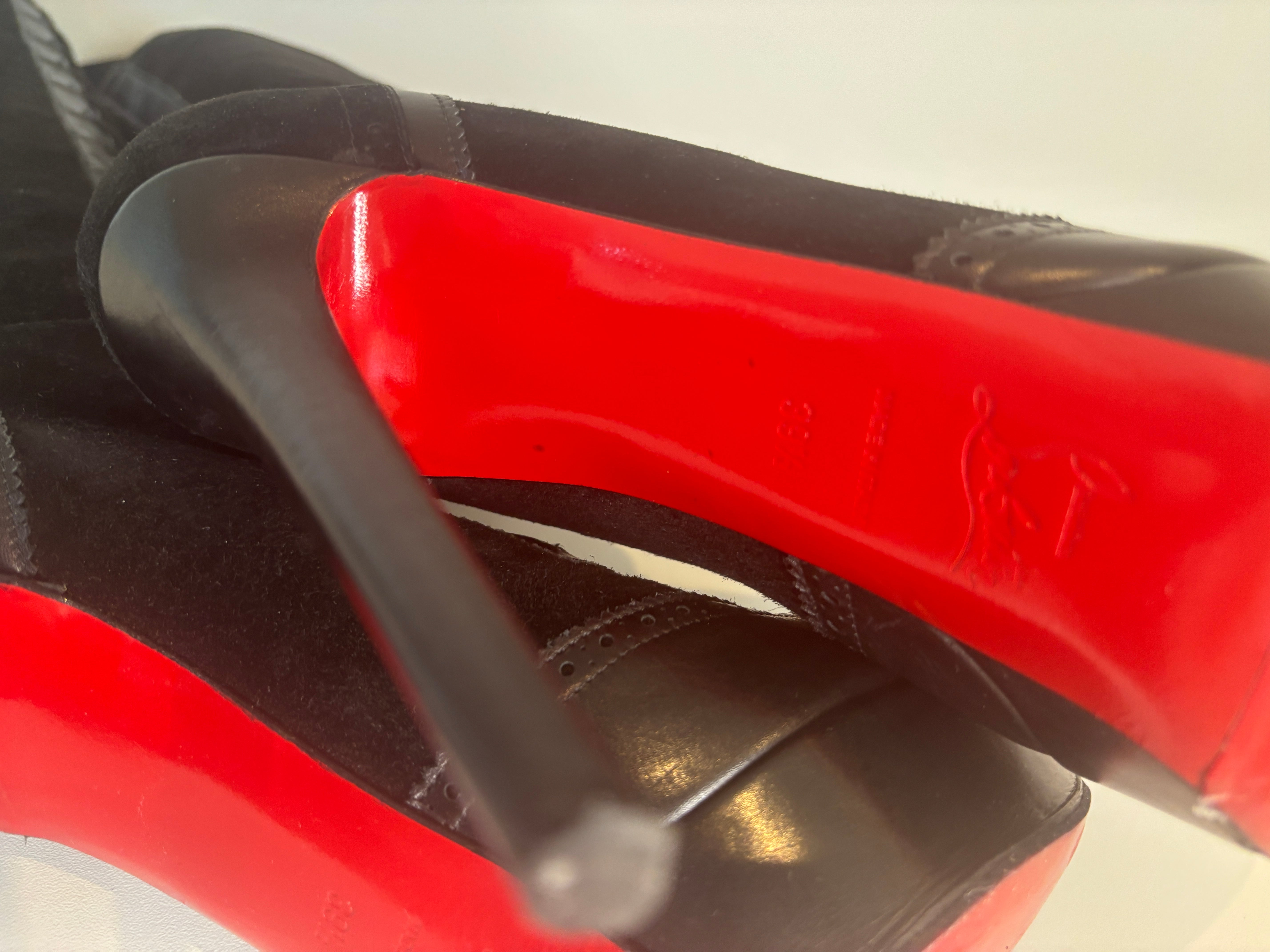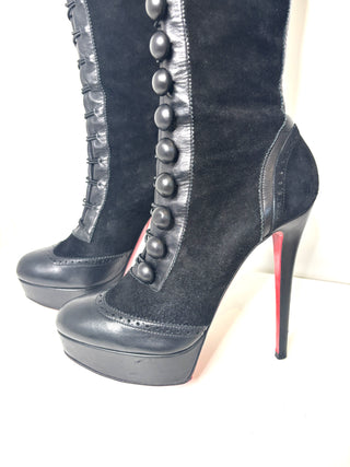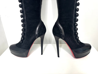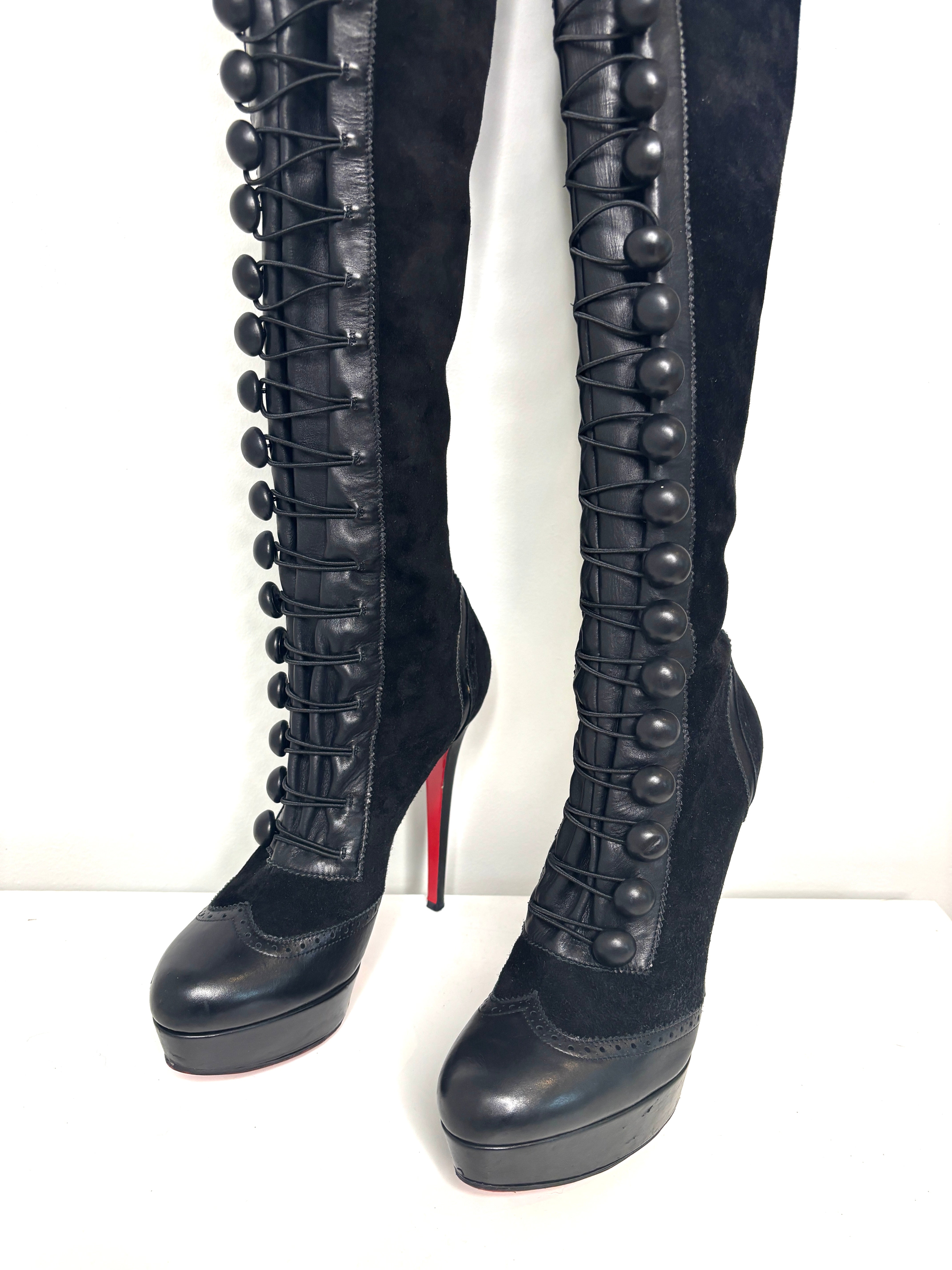 Christian Louboutin Majolique Over-the-Knee Platform Button Black Suede High Boots 39.5 UK6.5