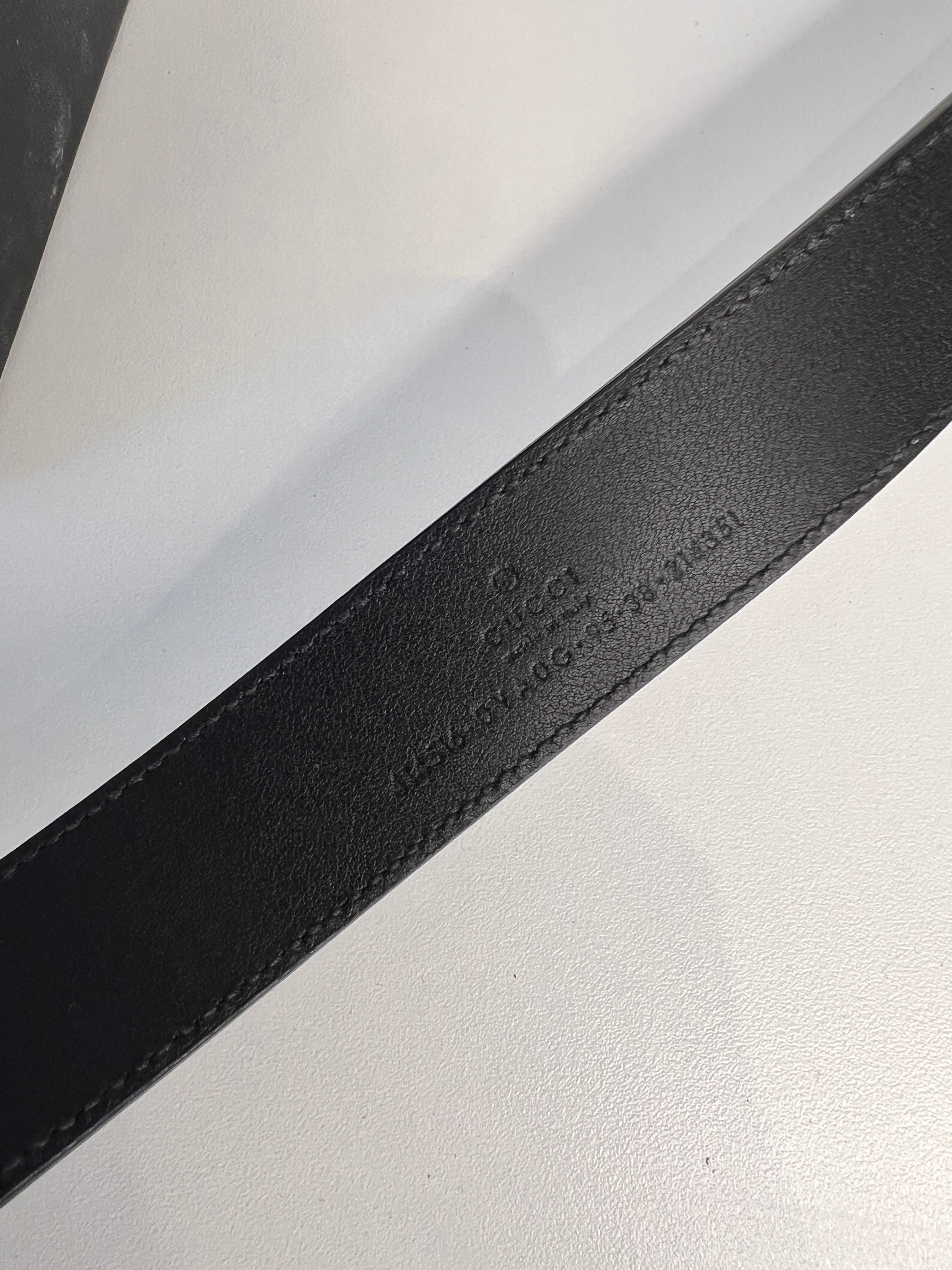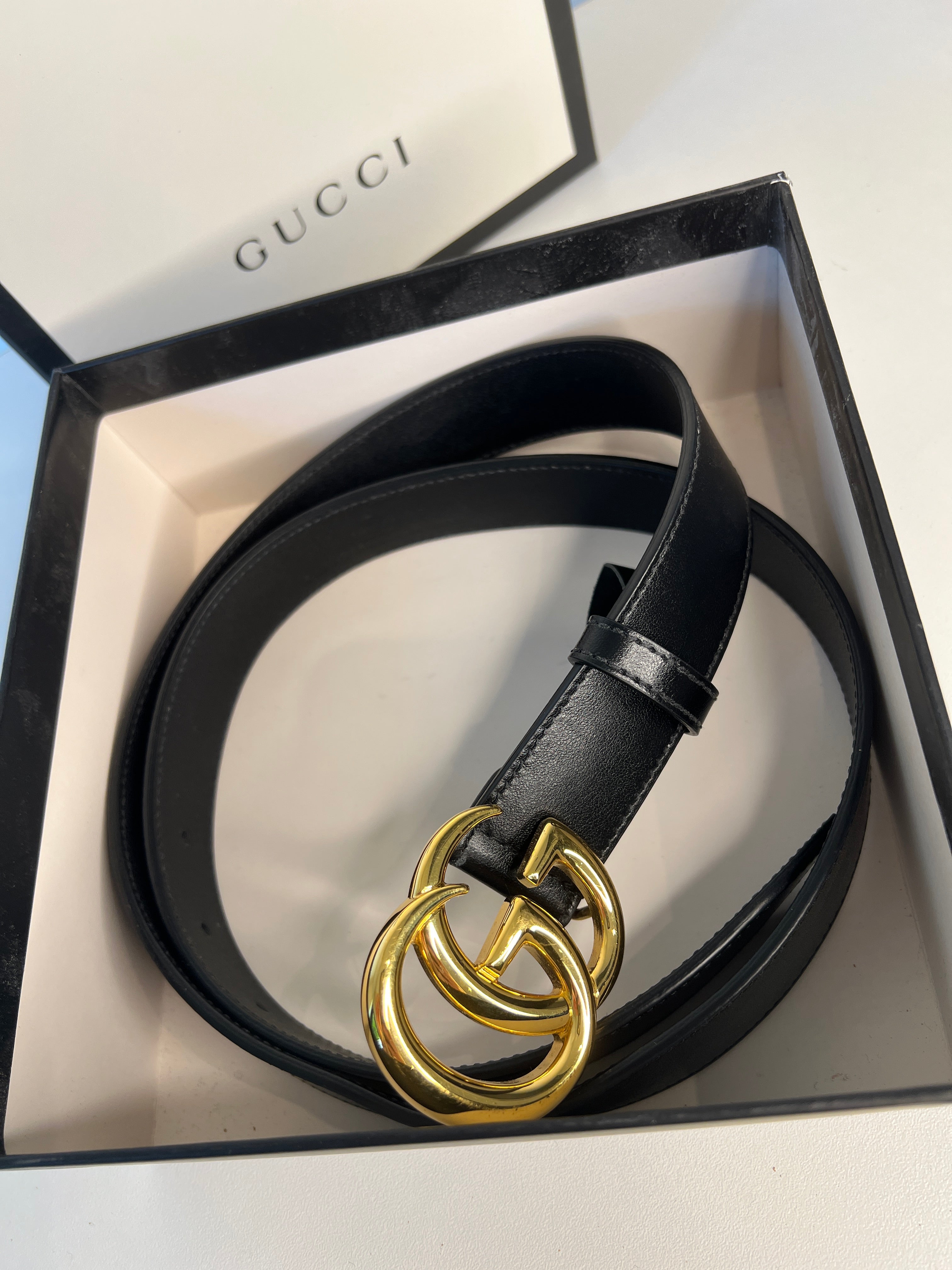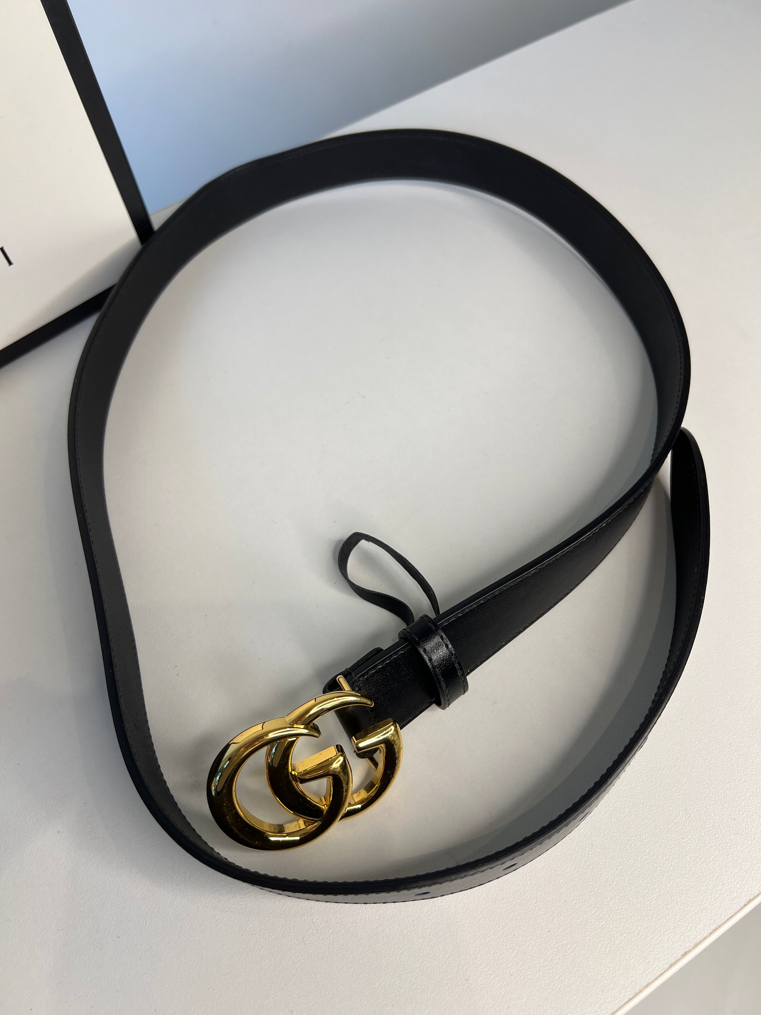 Slim leather belt with the signature Double G shiny gold-tone buckle