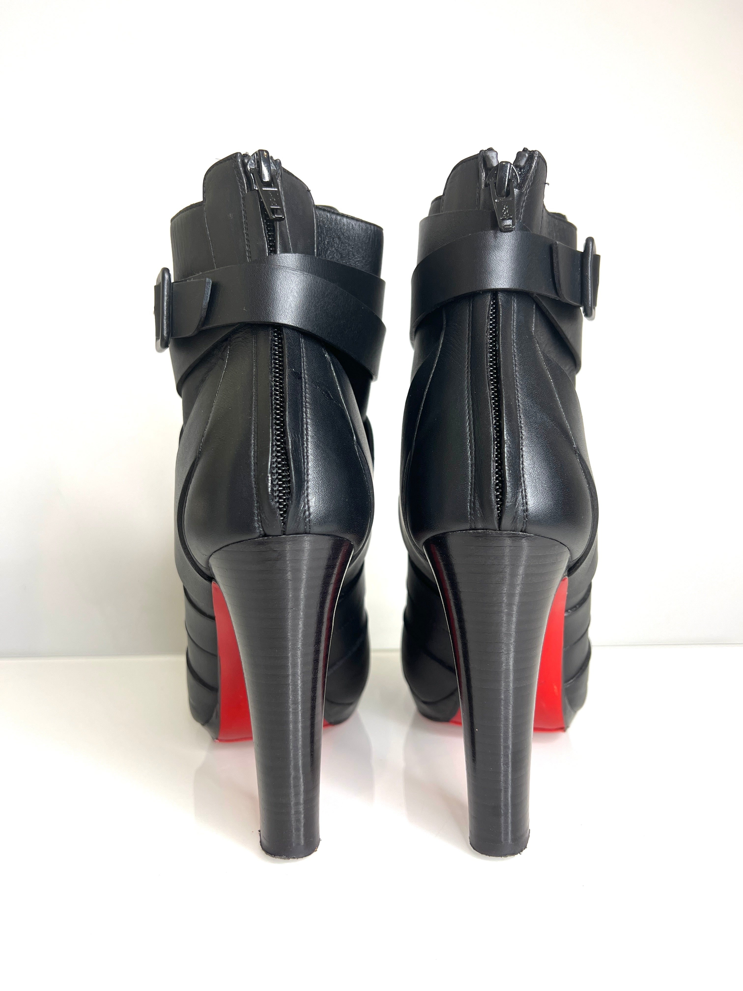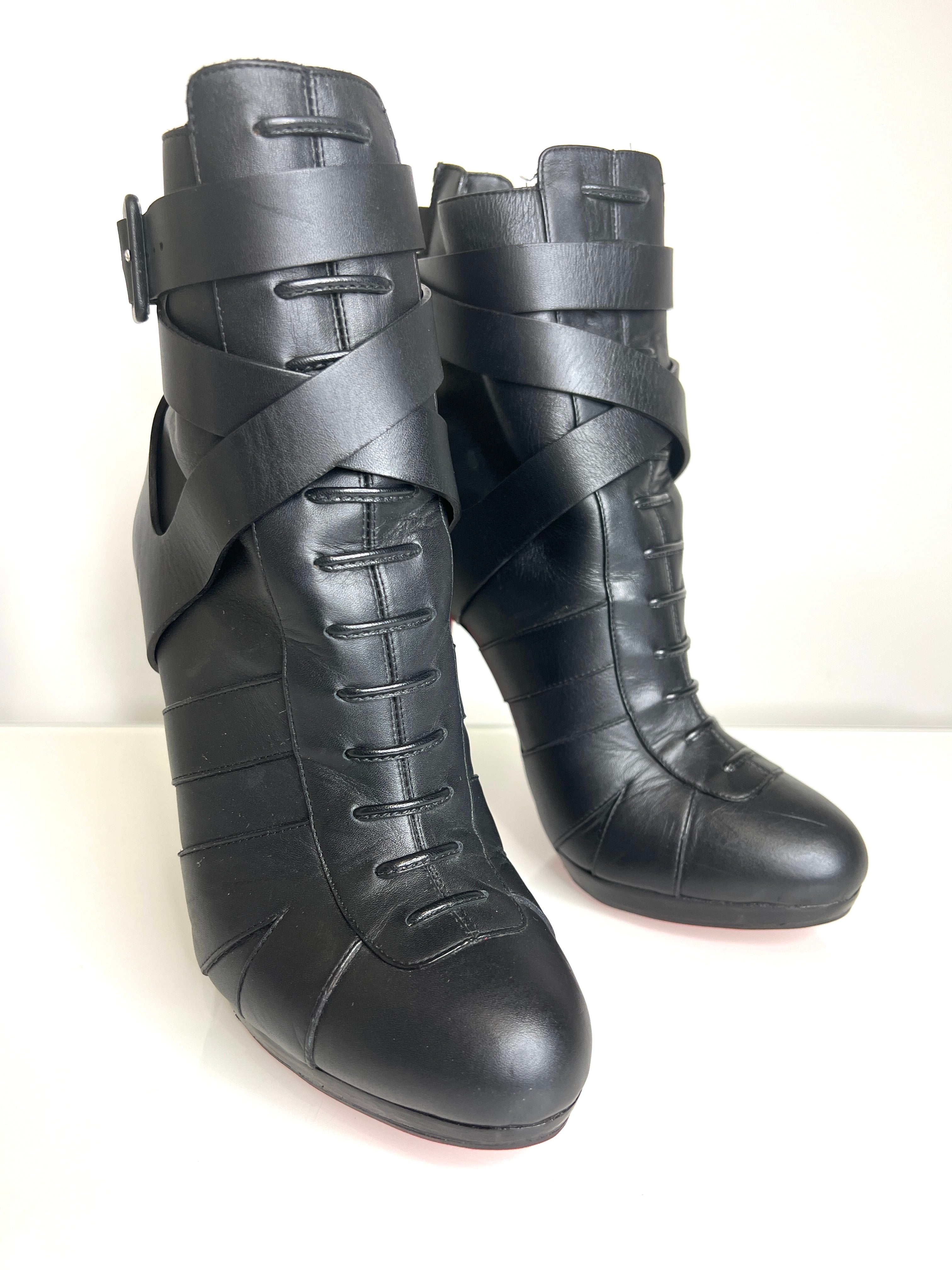 Christian Louboutin Preloved Lamu Black Leather Strappy Ankle Boots 38.5 UK5.5