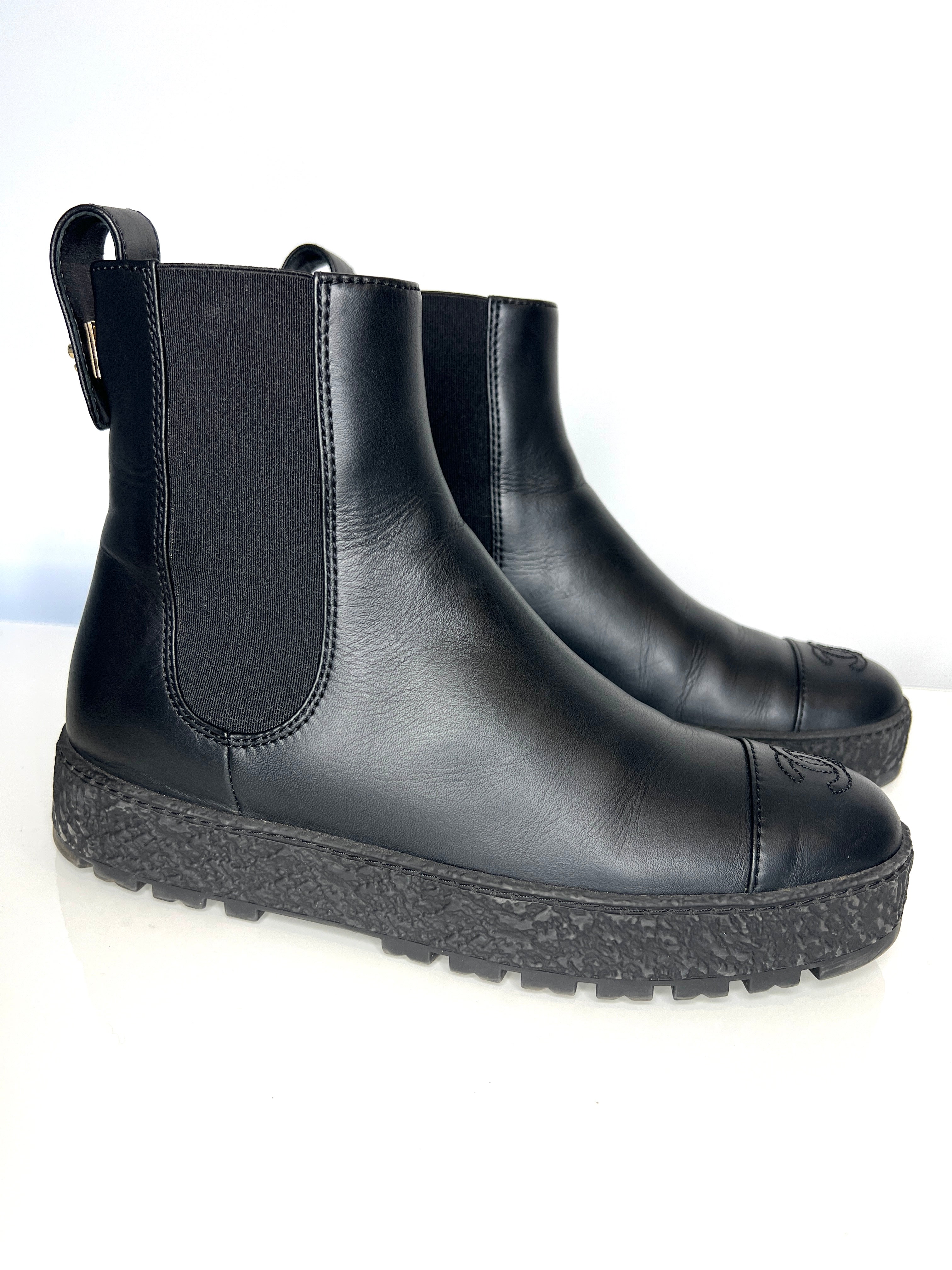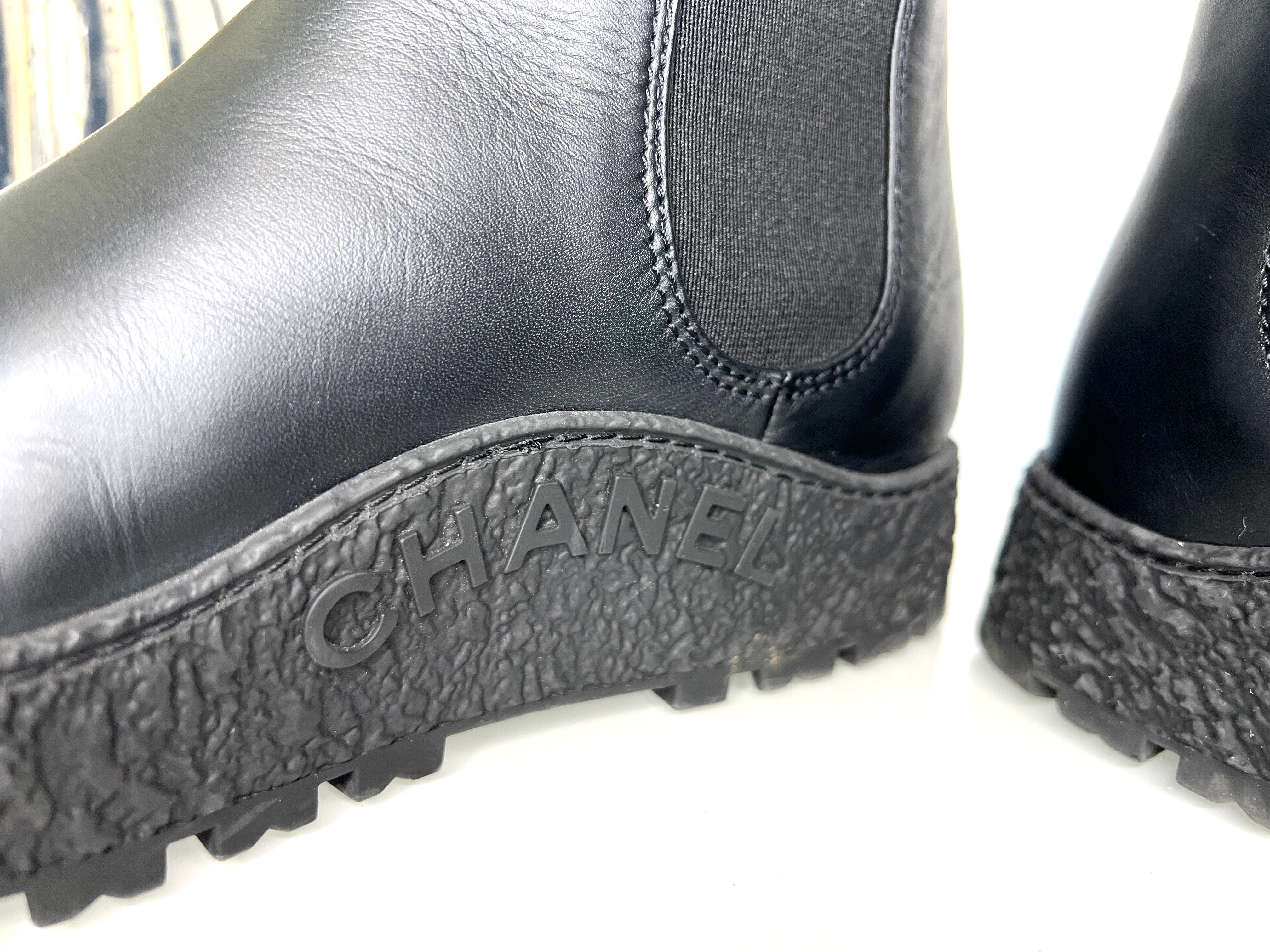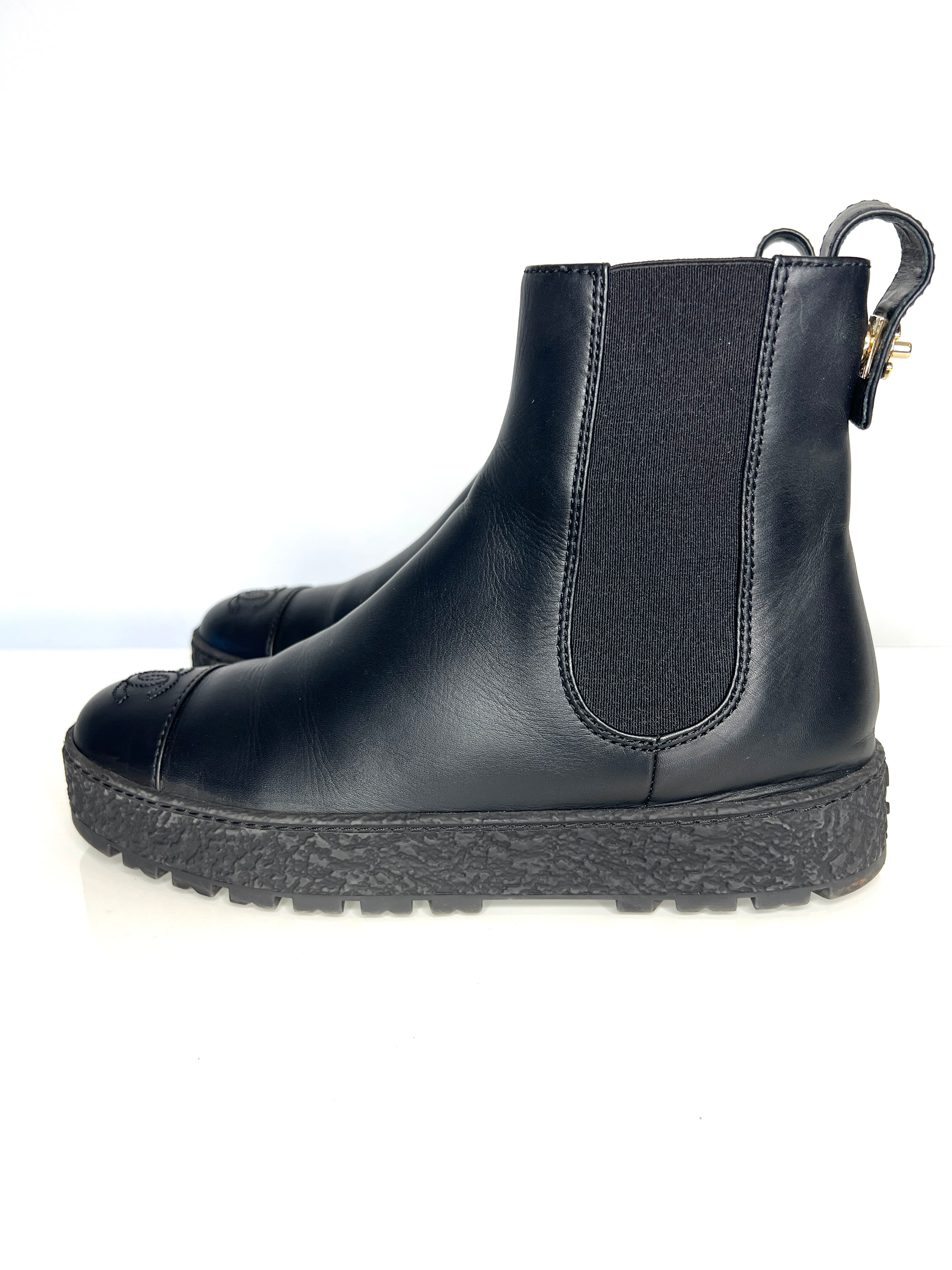Chanel Preloved Black Leather CC Chelsea Boots 39 UK6