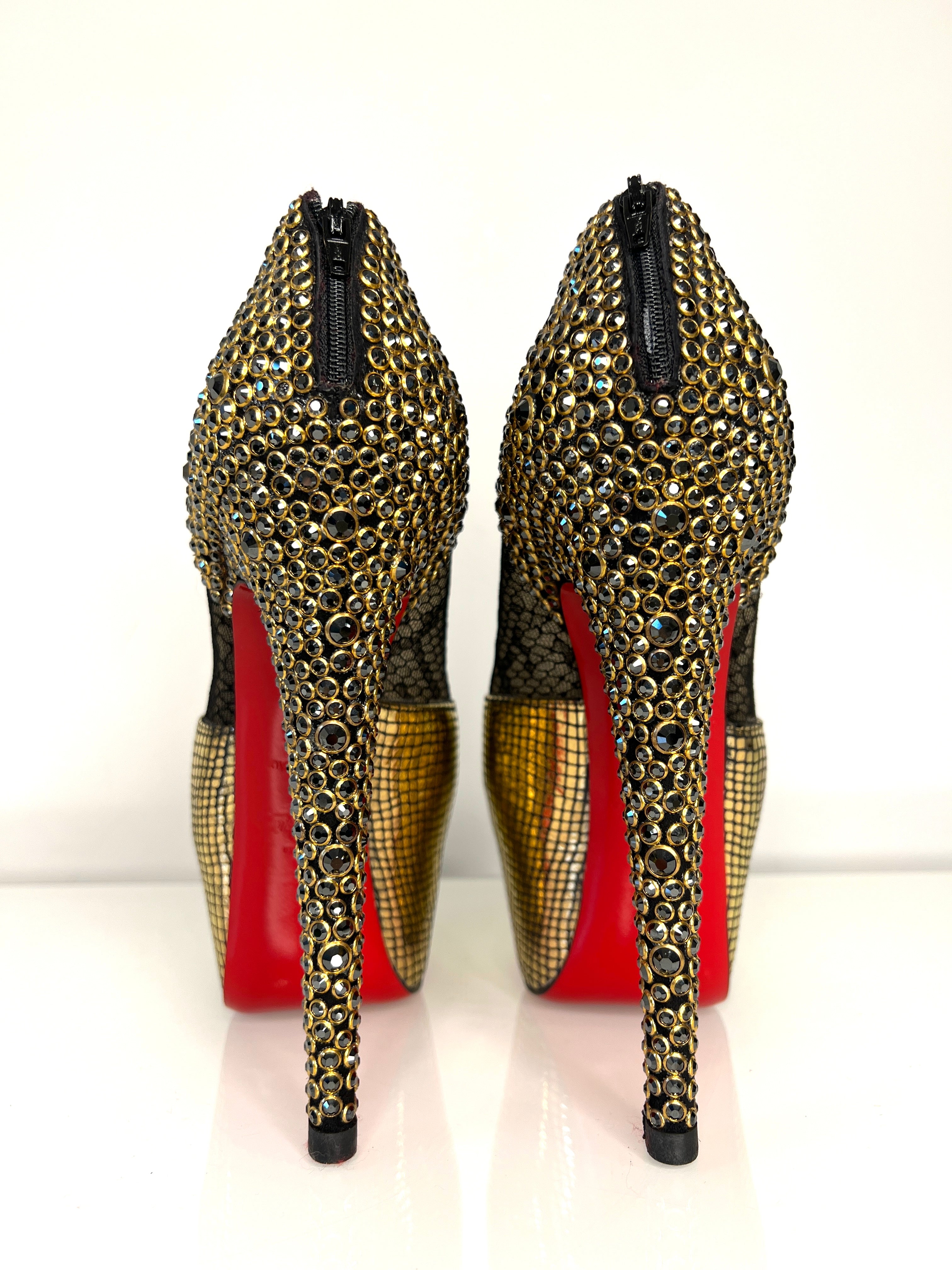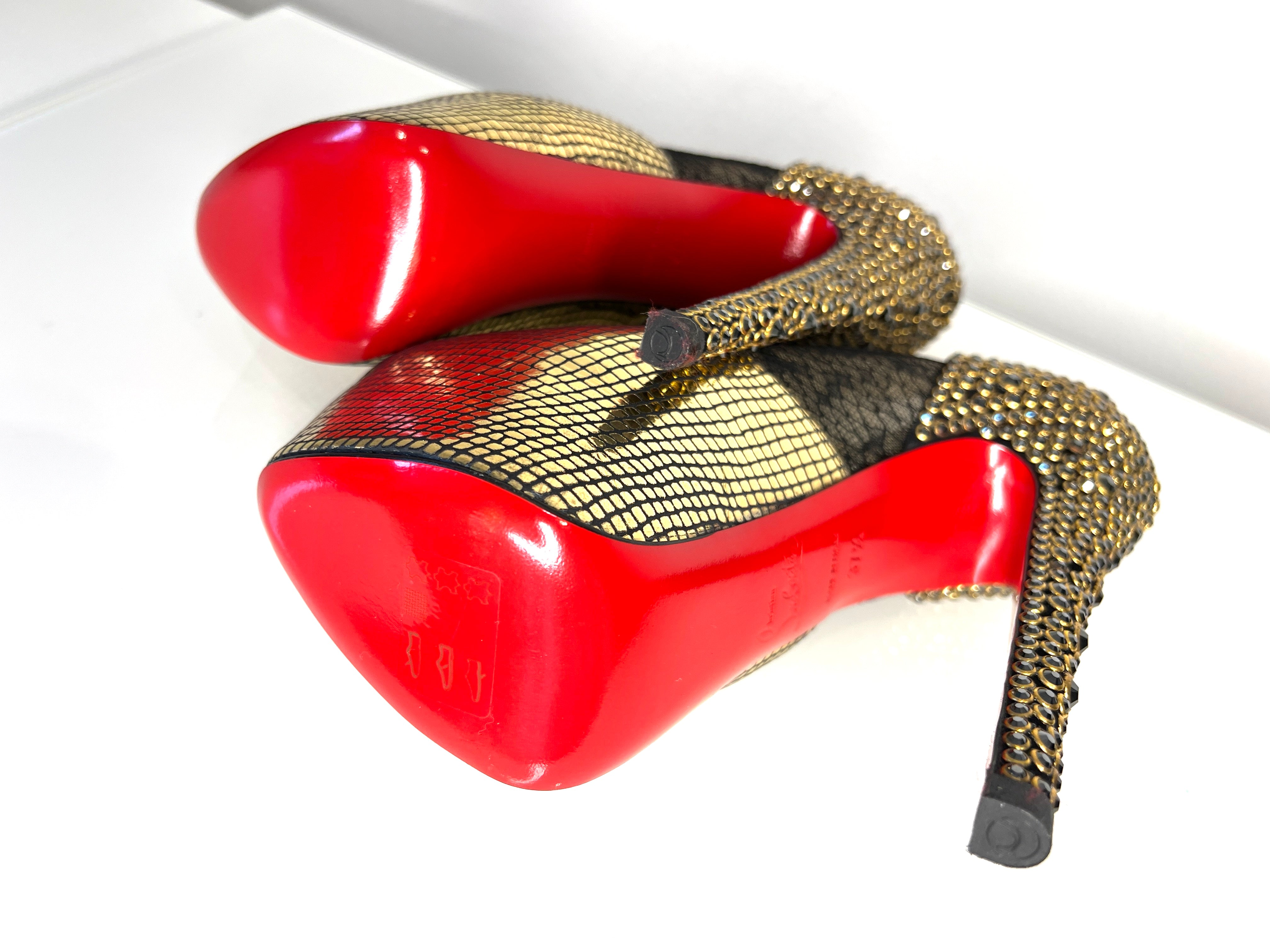 Christian Louboutin Aeronotoc Strass 160 Platform Peep-Toe Gold Heels 37.5 UK4.5