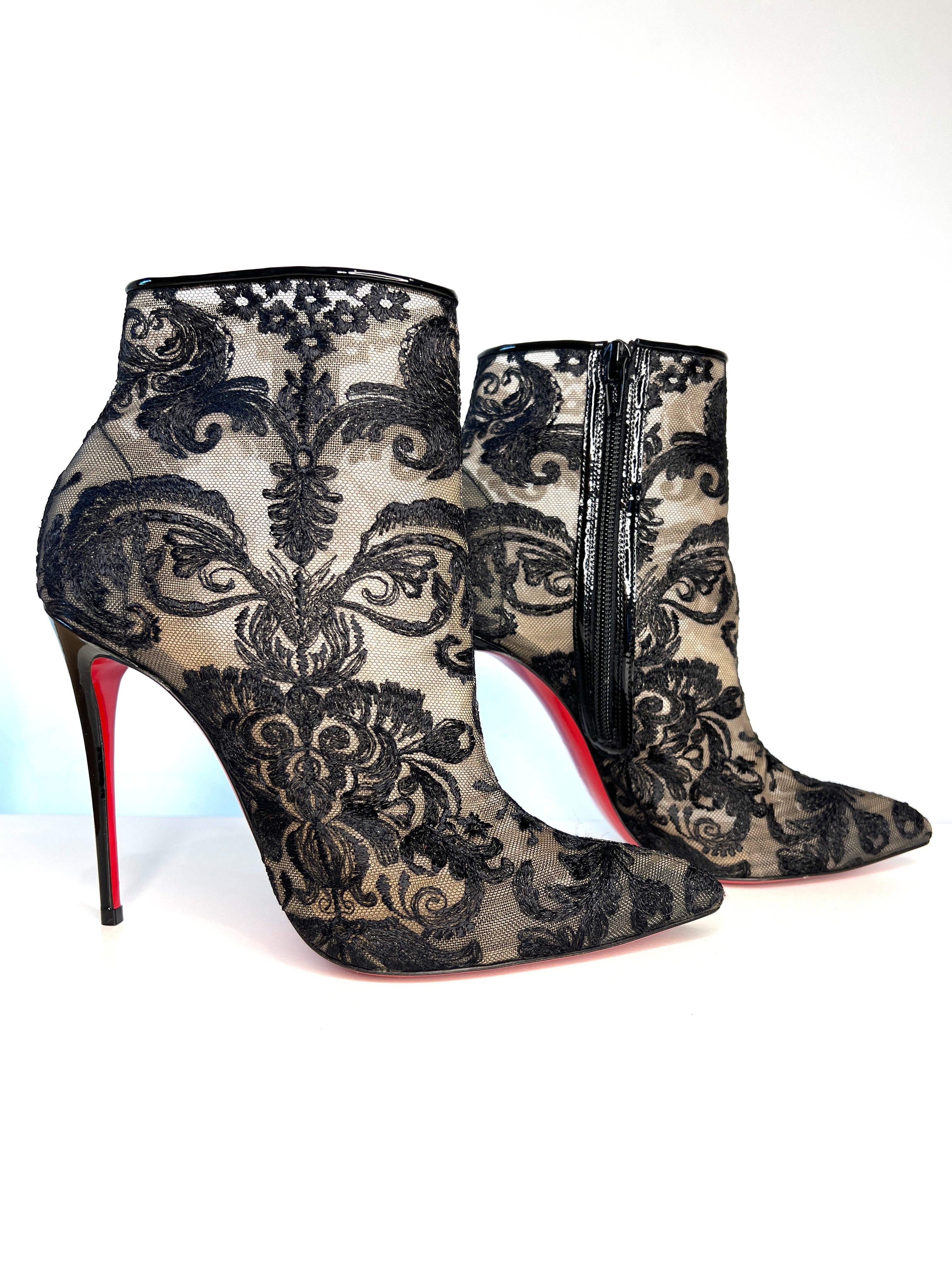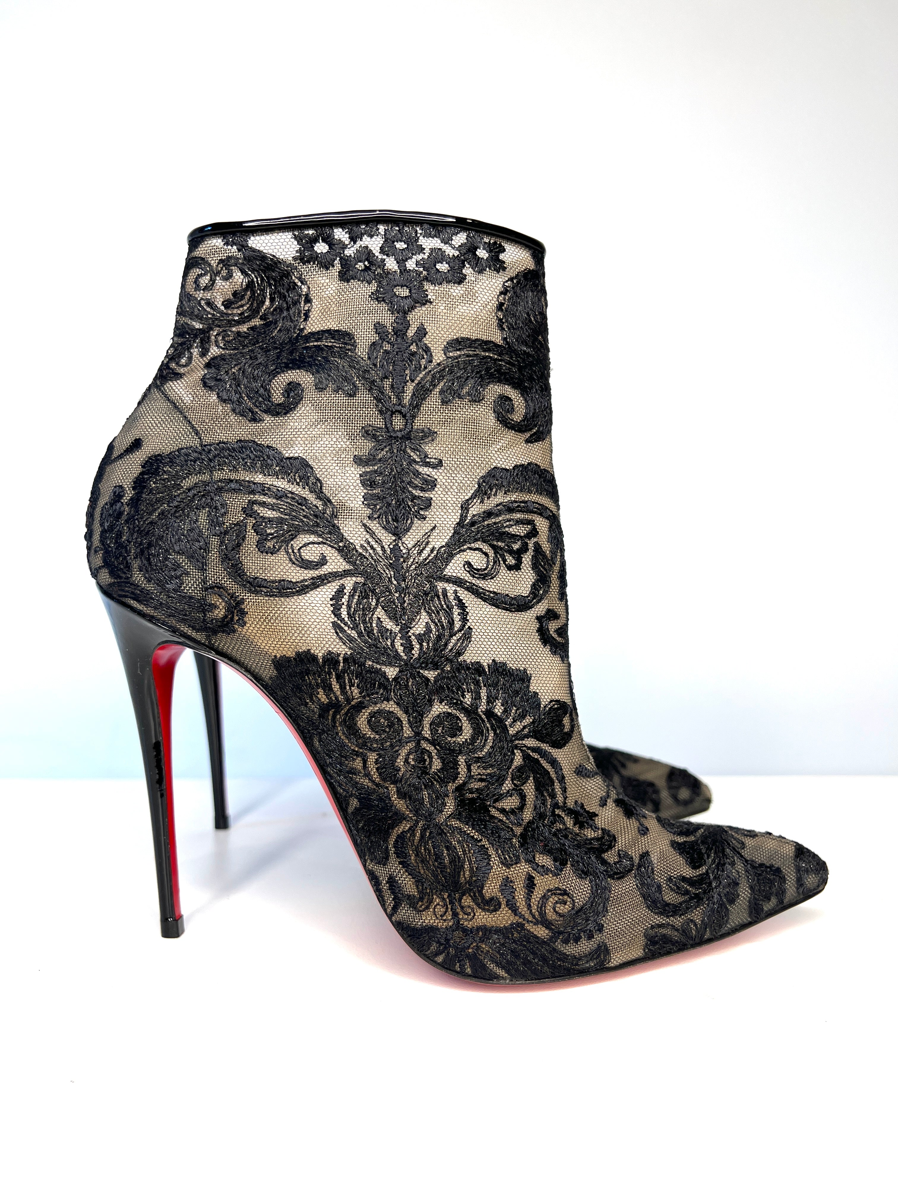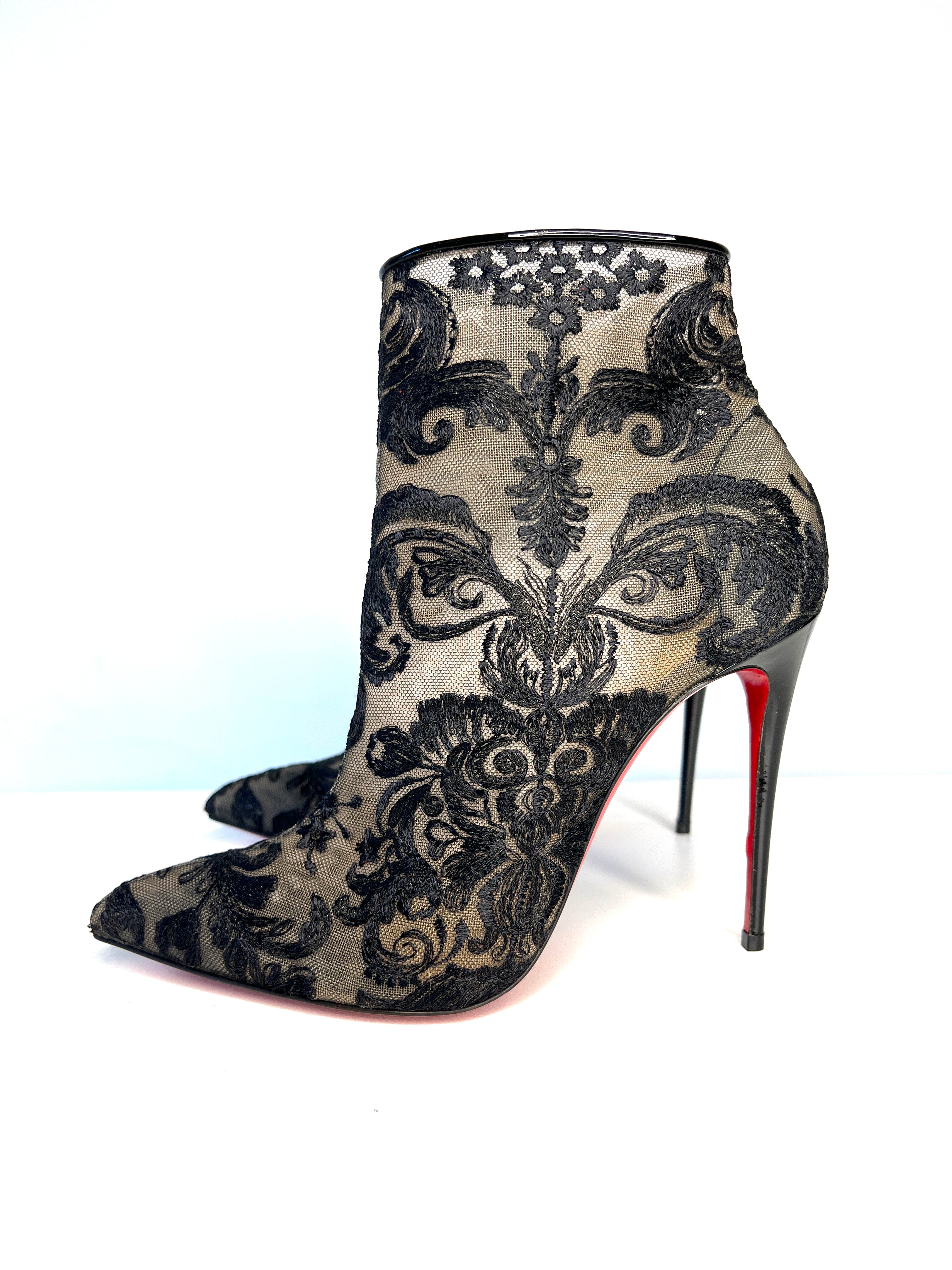 Christian Louboutin Gipsybootie 100 Black Lace Heel Booties 39 UK6