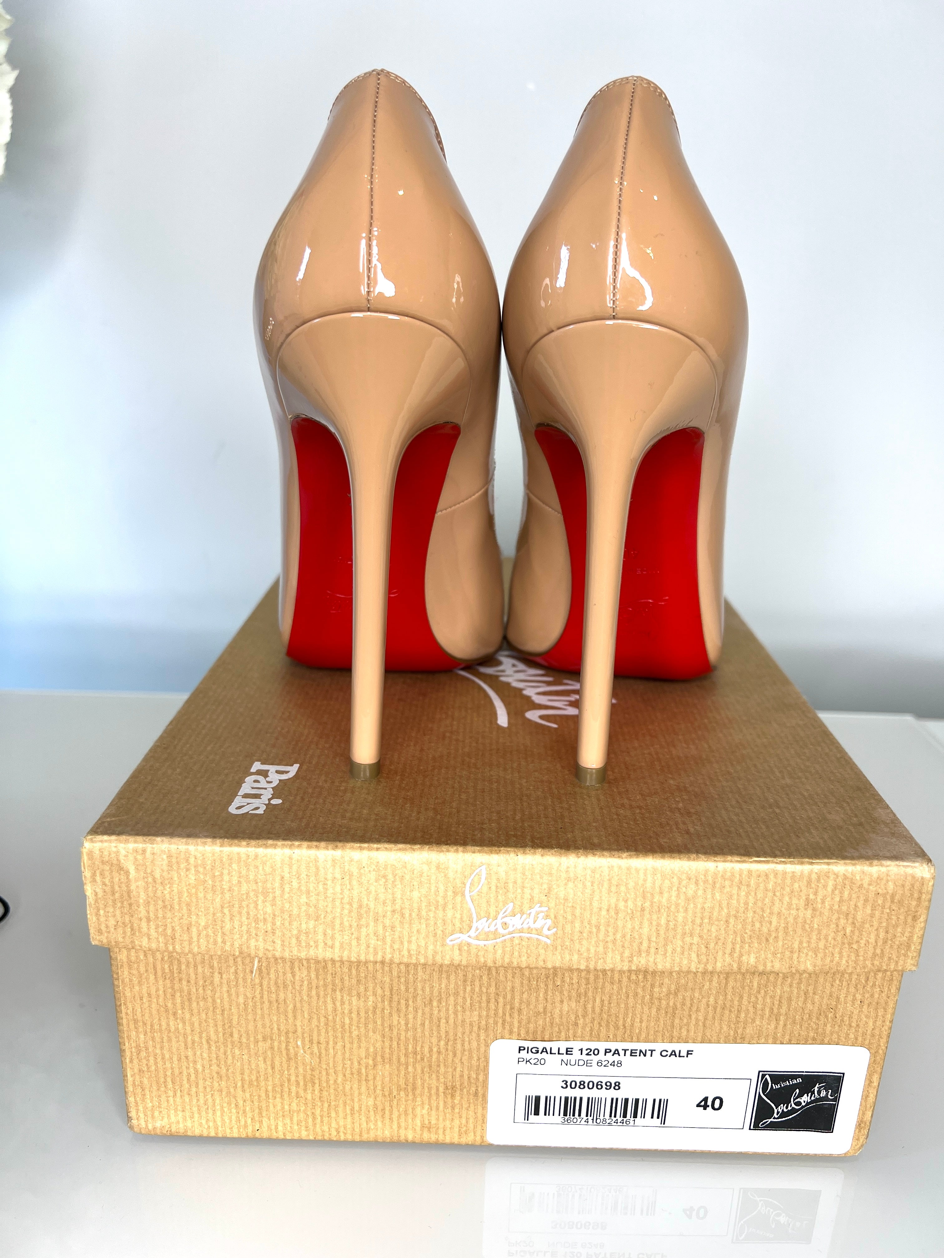 Christian Louboutin Pigalle 120 Nude Patent Leather Heels 40 UK7