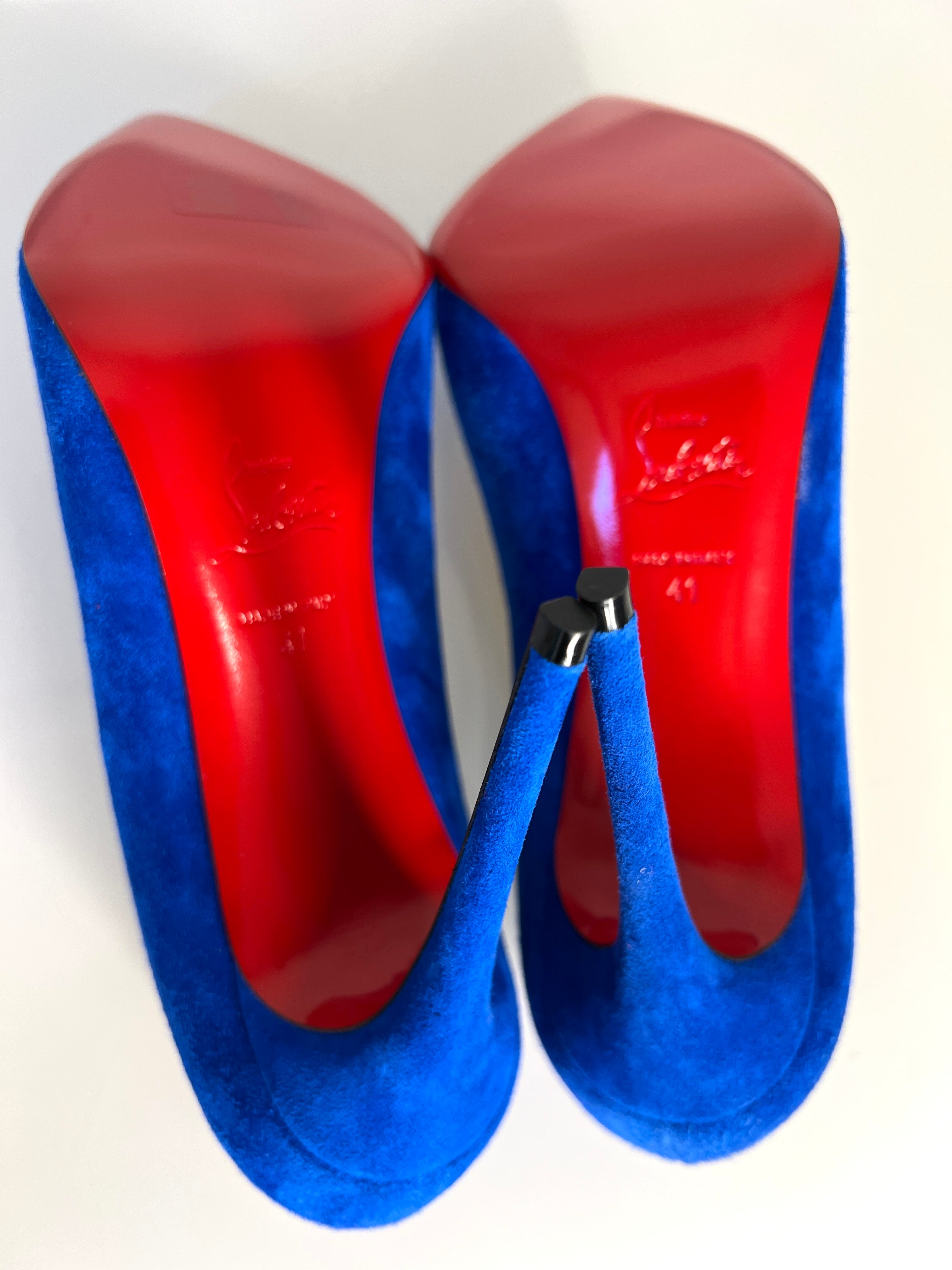 Christian Louboutin Pigalle Follies 100 Blue Suede Heels 41 UK8