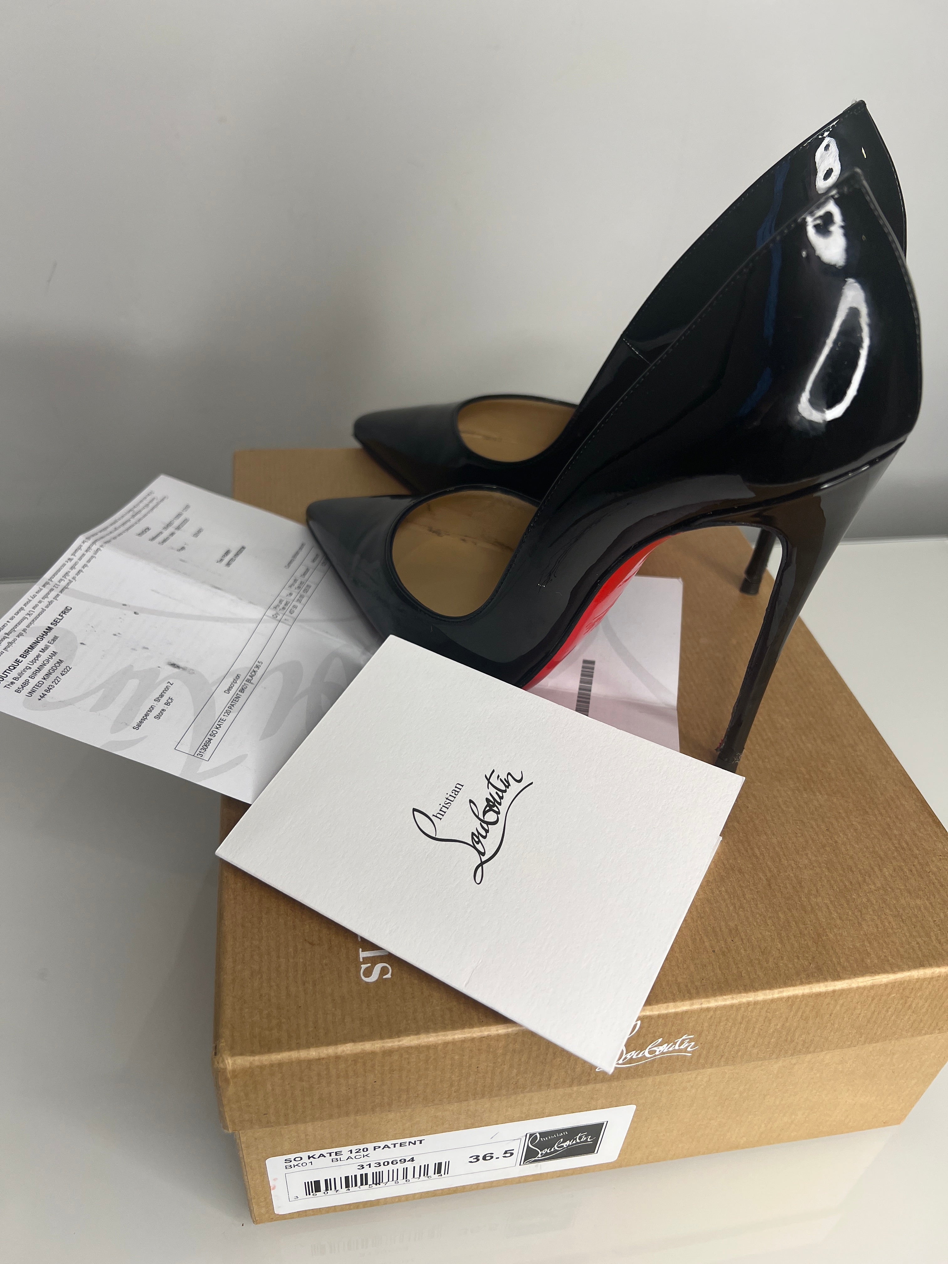 Christian Louboutin So Kate 120 Black Patent Heels 36.5 UK3.5