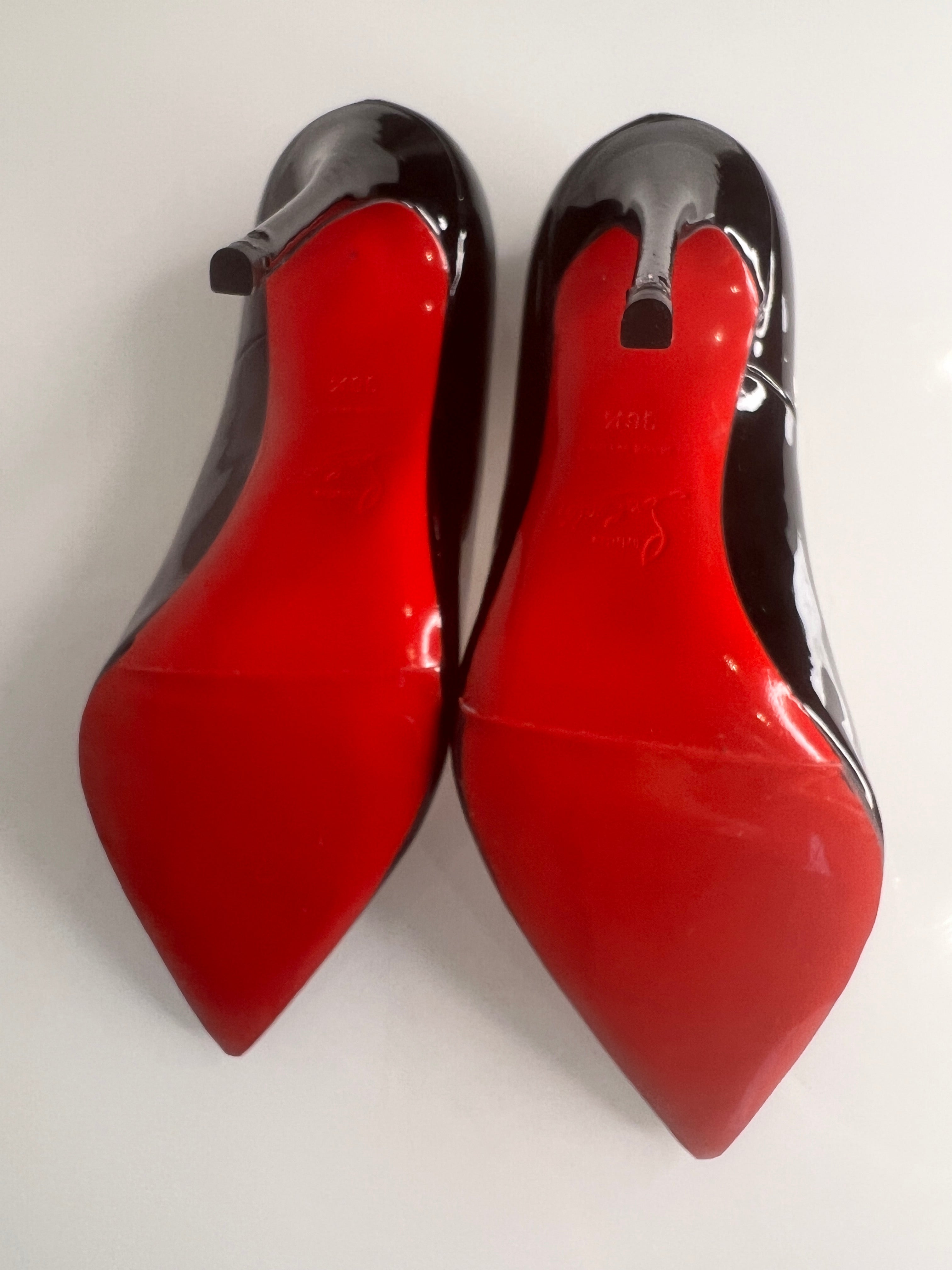 They feature the designer’s signature red soles and sleek pointed toe