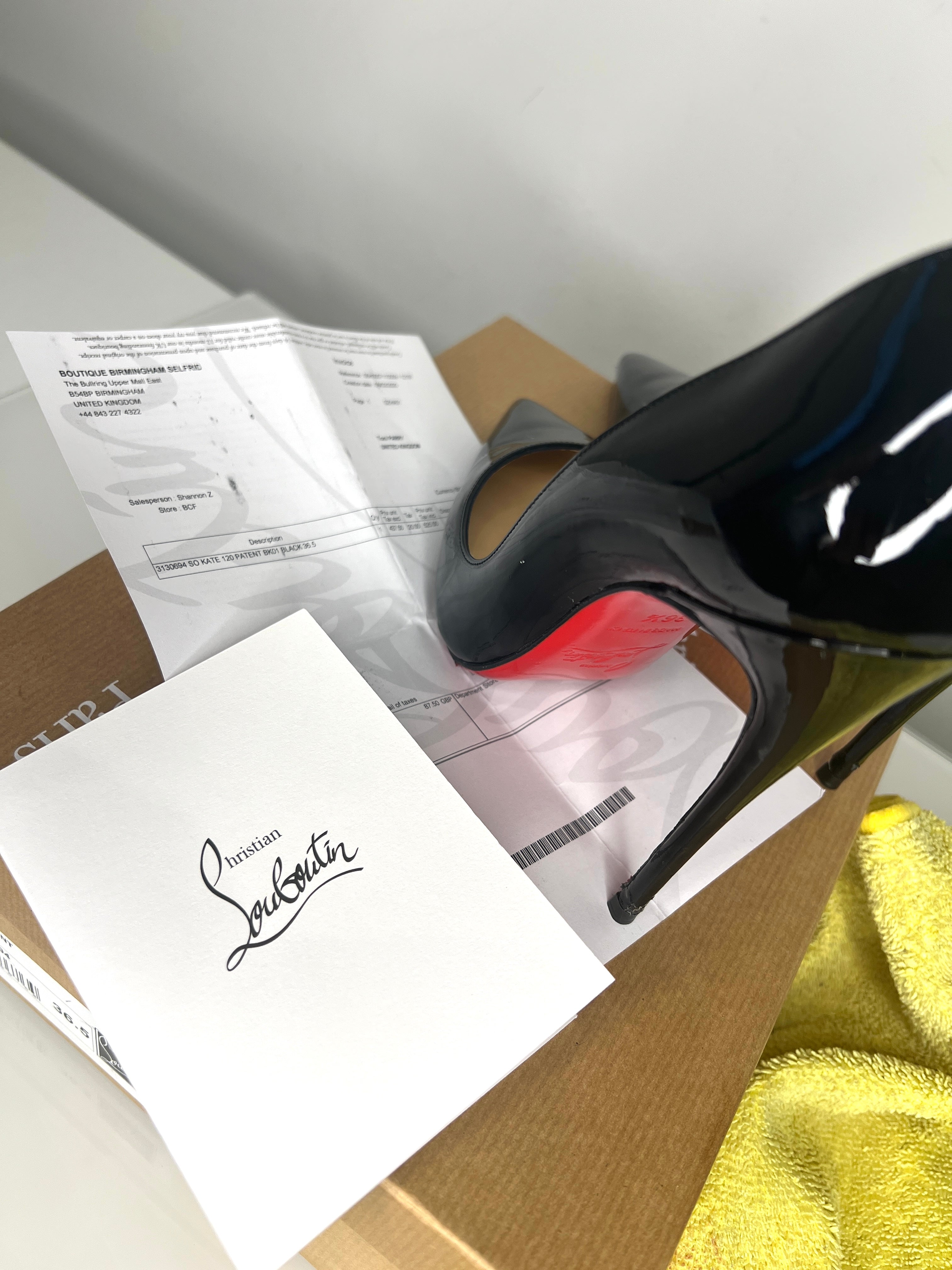 They have been fitted with new sole-protectors, preserving the signature red bottoms