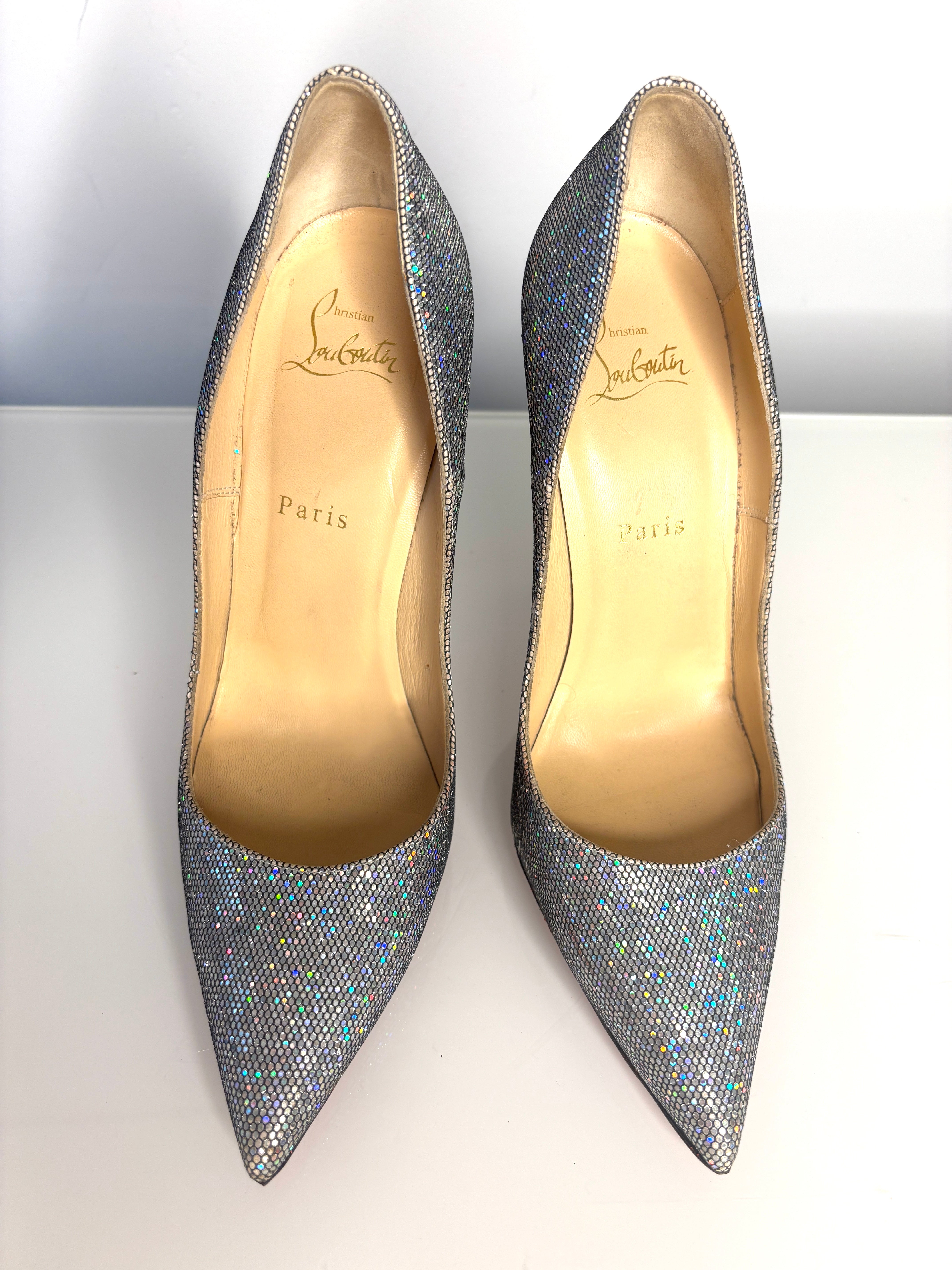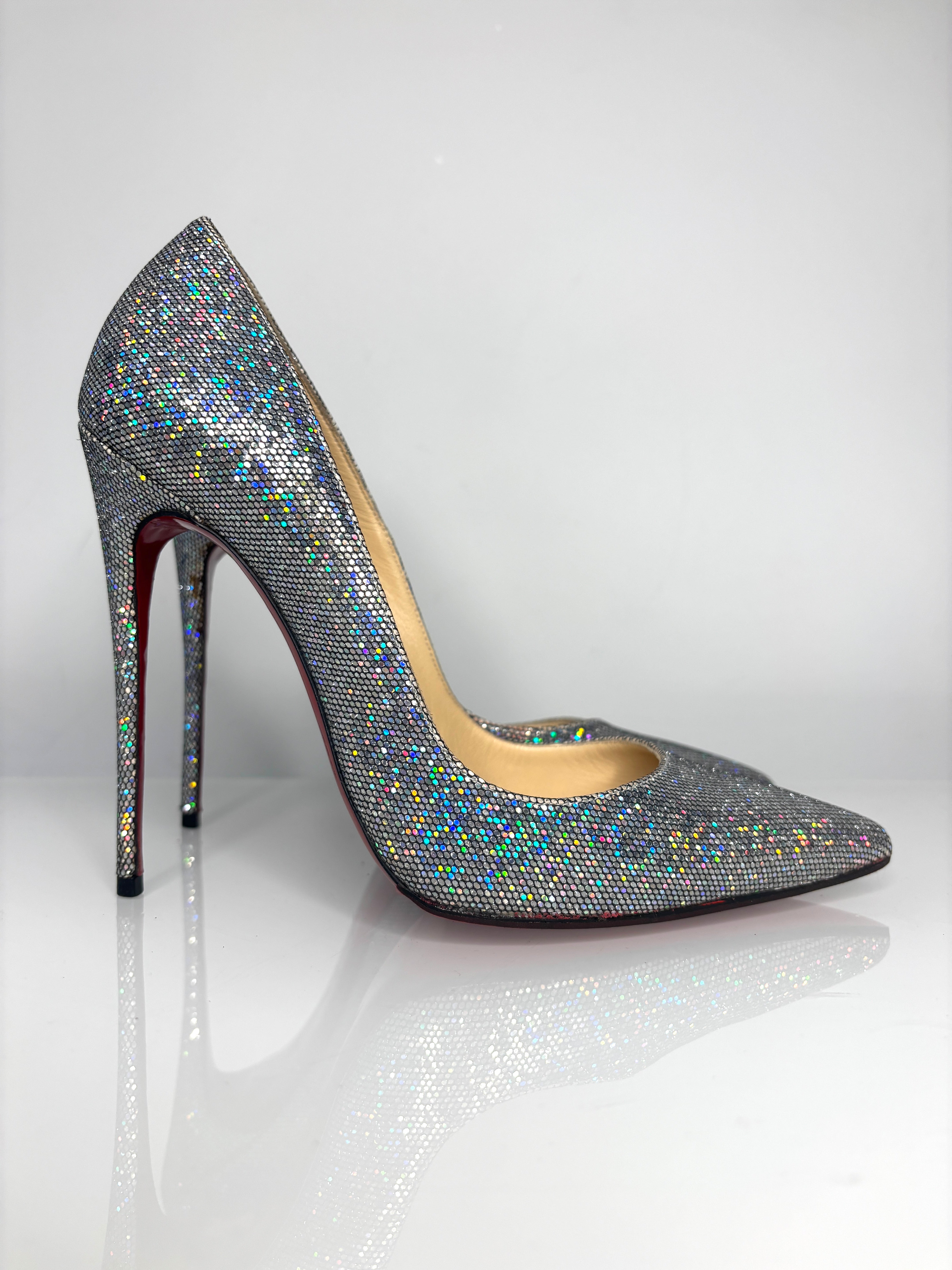 Christian Louboutin So Kate 120 Glitter Disco Ball Silver Heels 40 UK7