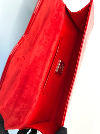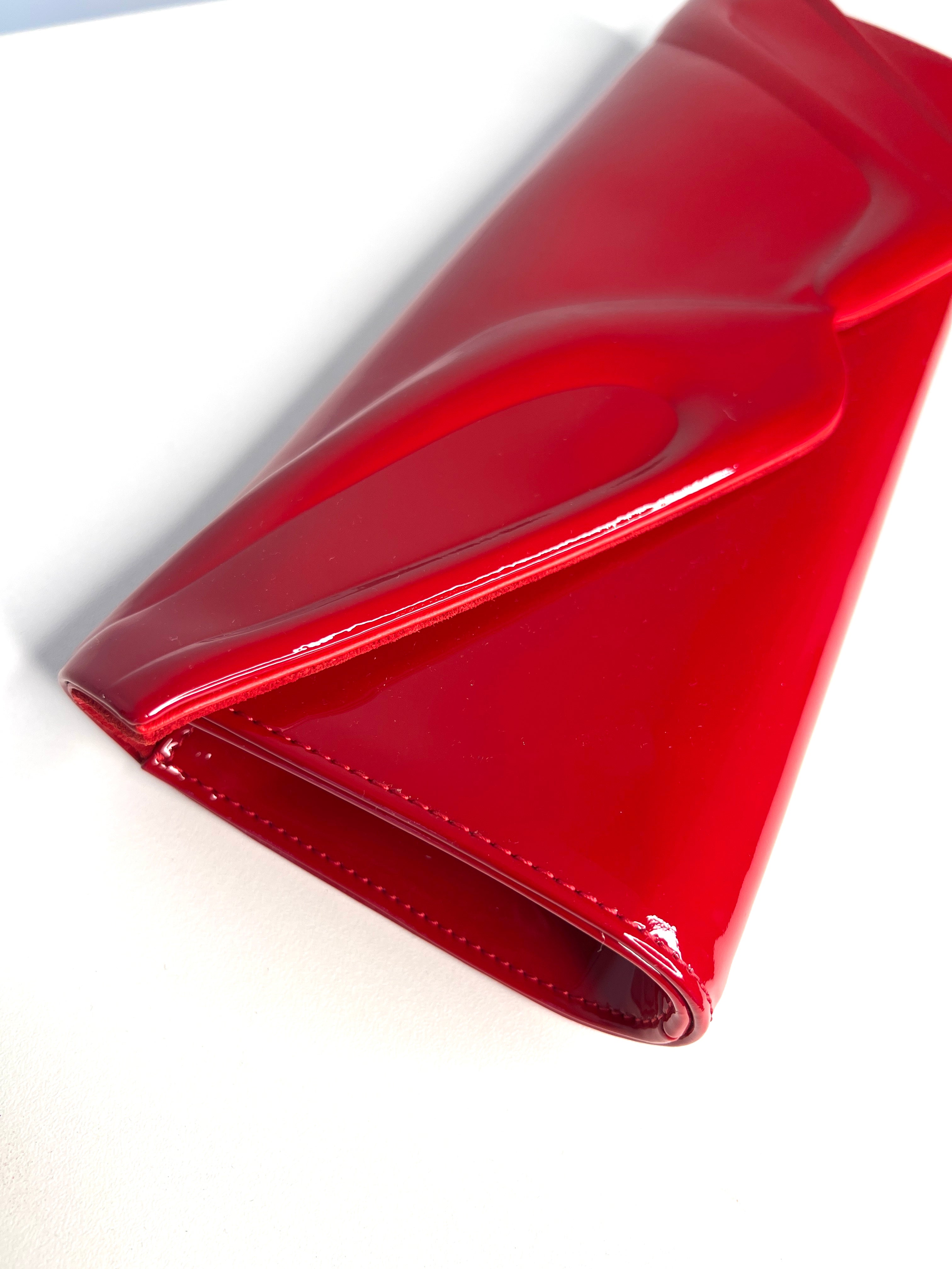 Christian Louboutin So Kate Baguette Red Patent Clutch Bag Preloved