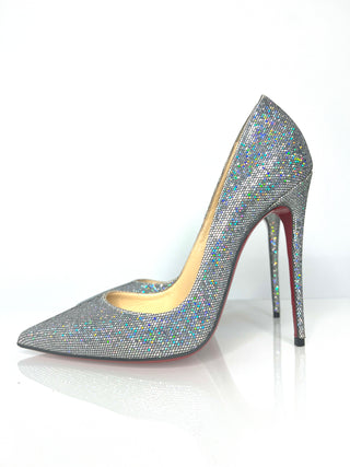 Christian Louboutin So Kate 120 Glitter Disco Ball Silver Heels 38 UK5