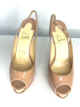 Christian Louboutin Preloved Private Number 120 Nude Patent Peep-toe Slingback Heels 37 UK4