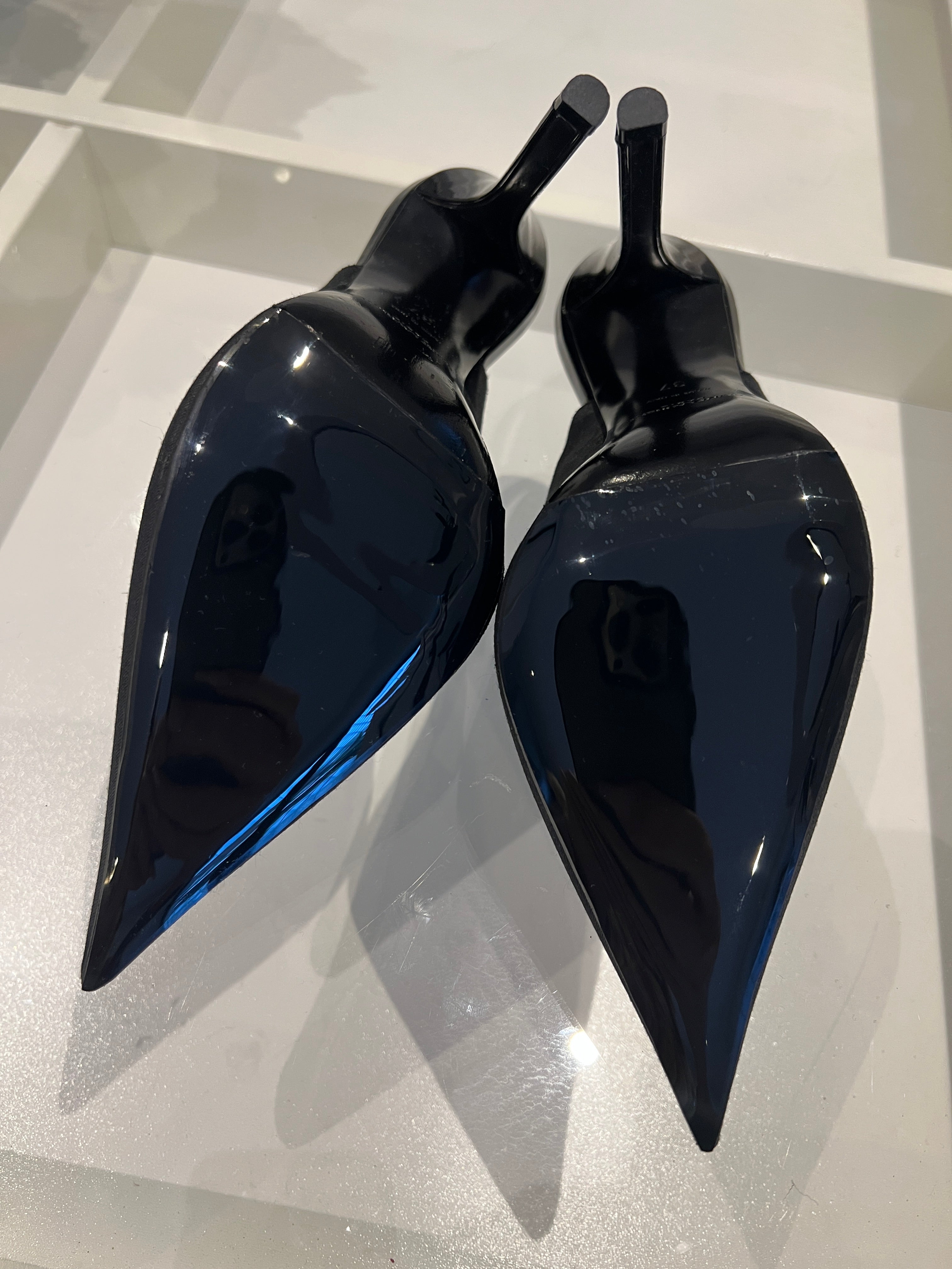 Saint Laurent Raven 110 Black Satin Slingback Heels 37 UK4