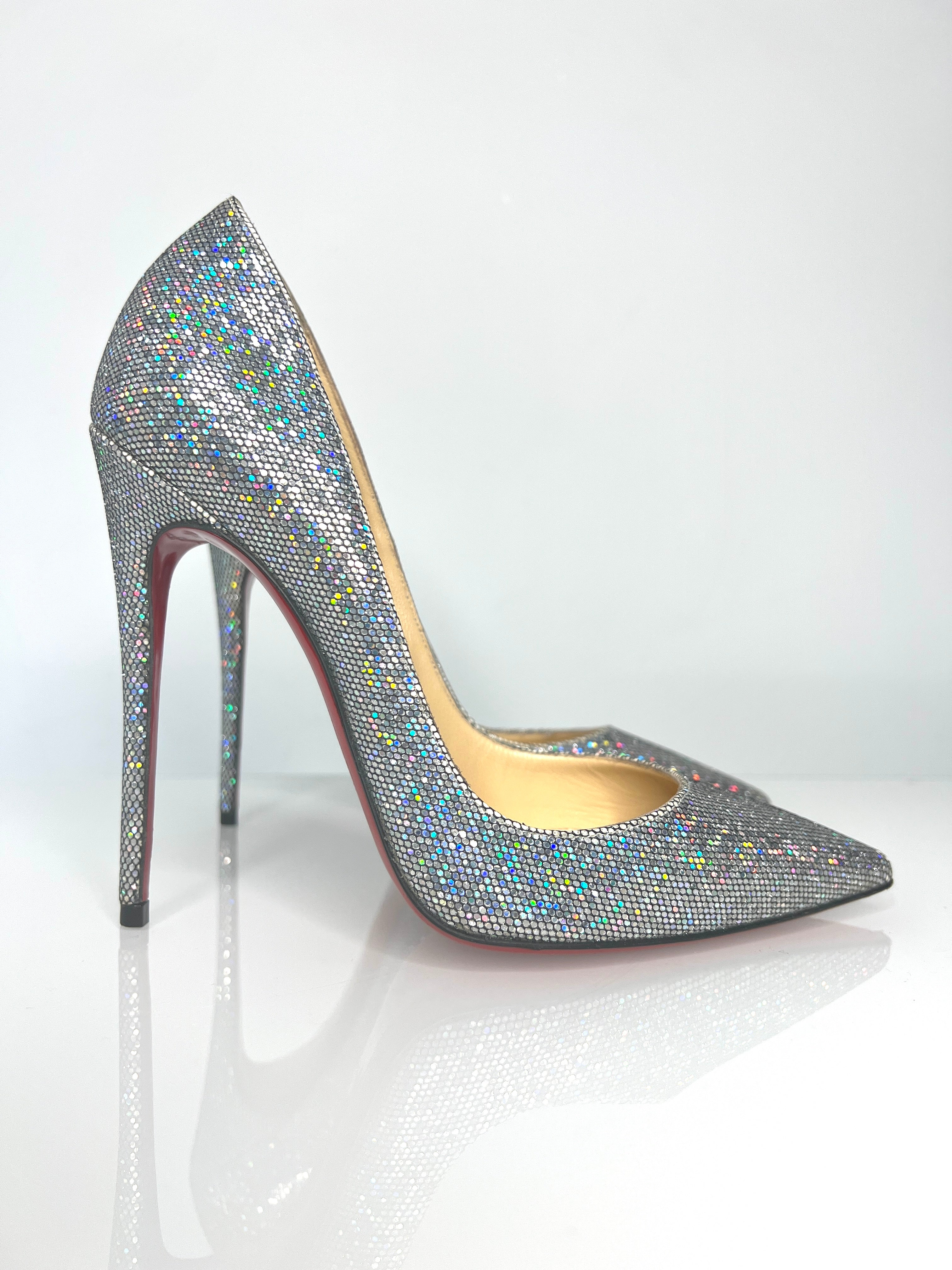 Christian Louboutin So Kate 120 Glitter Disco Ball Silver Heels 38 UK5