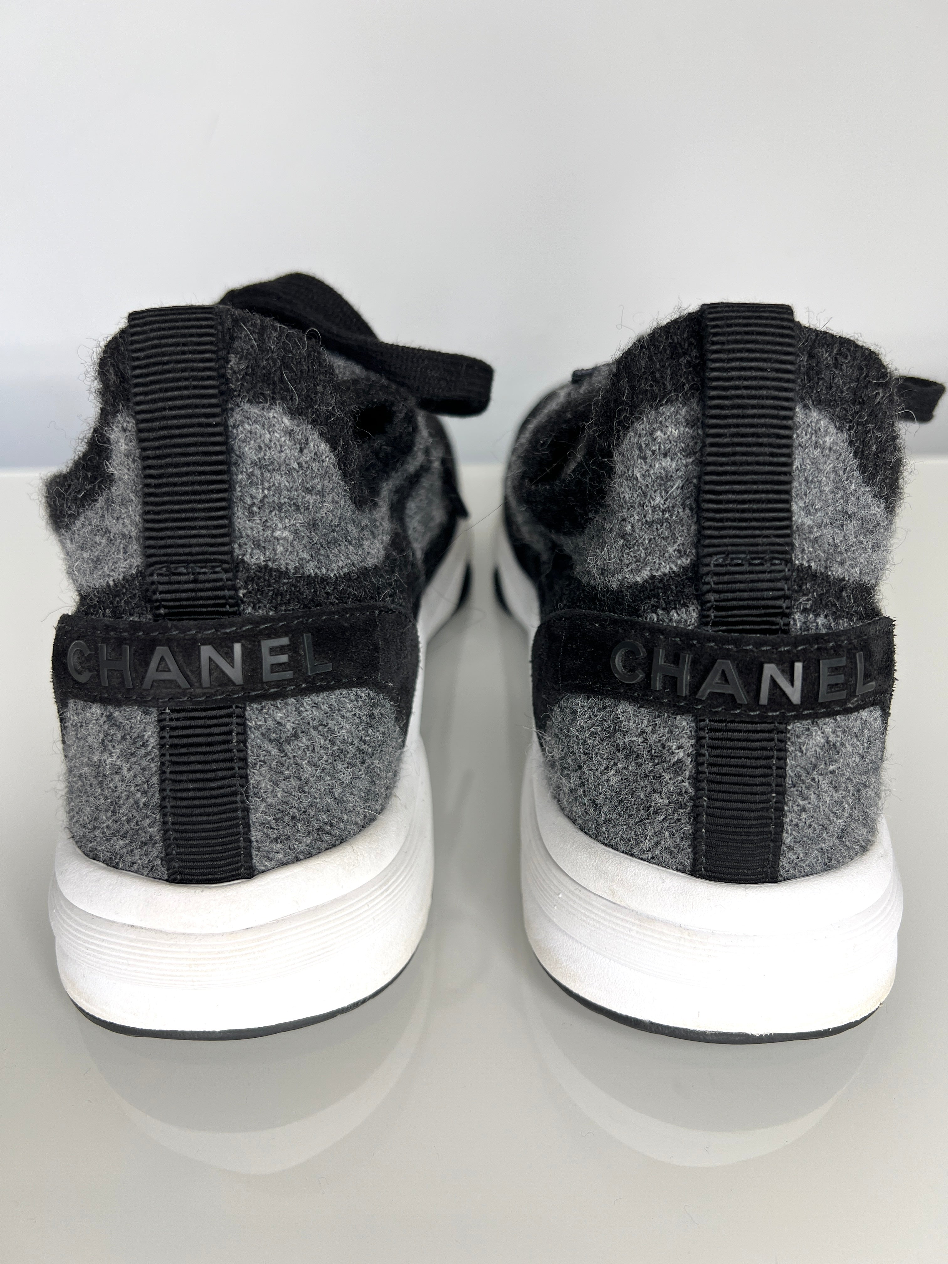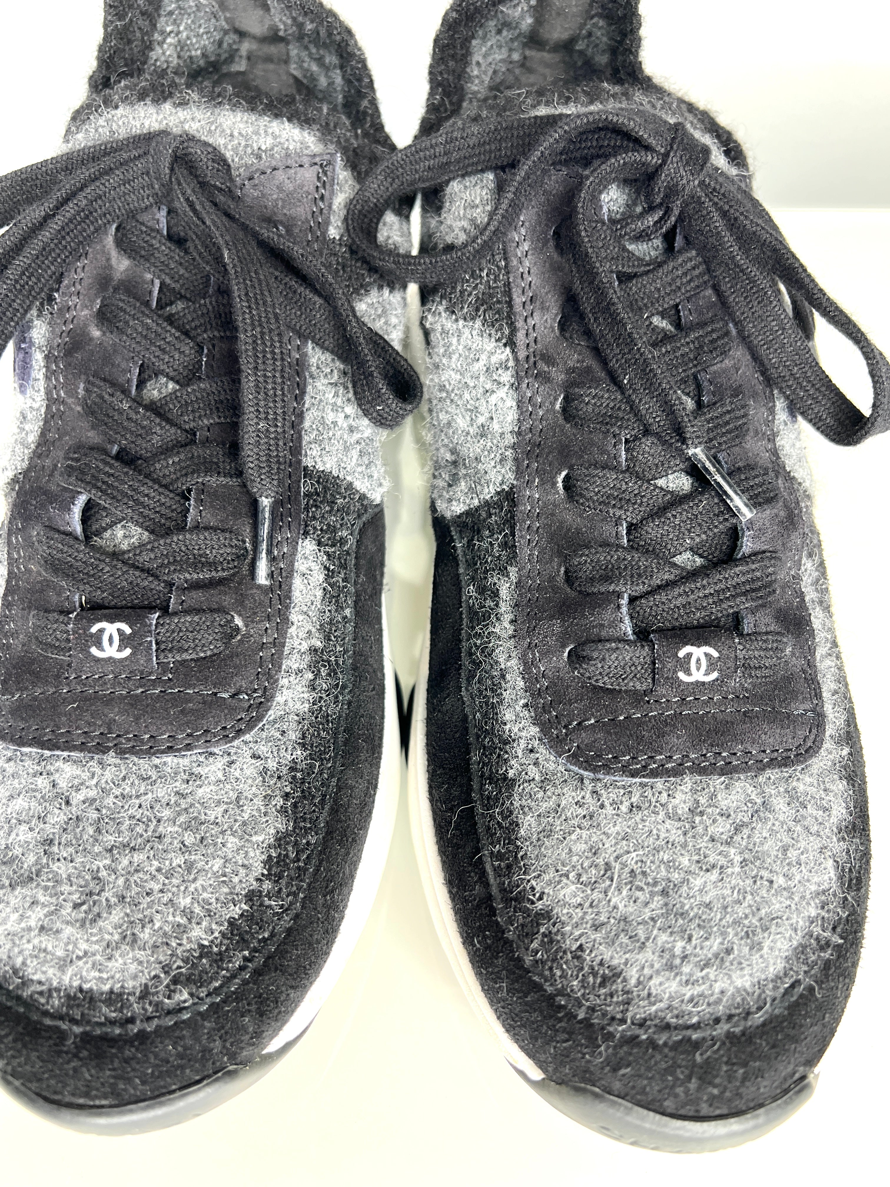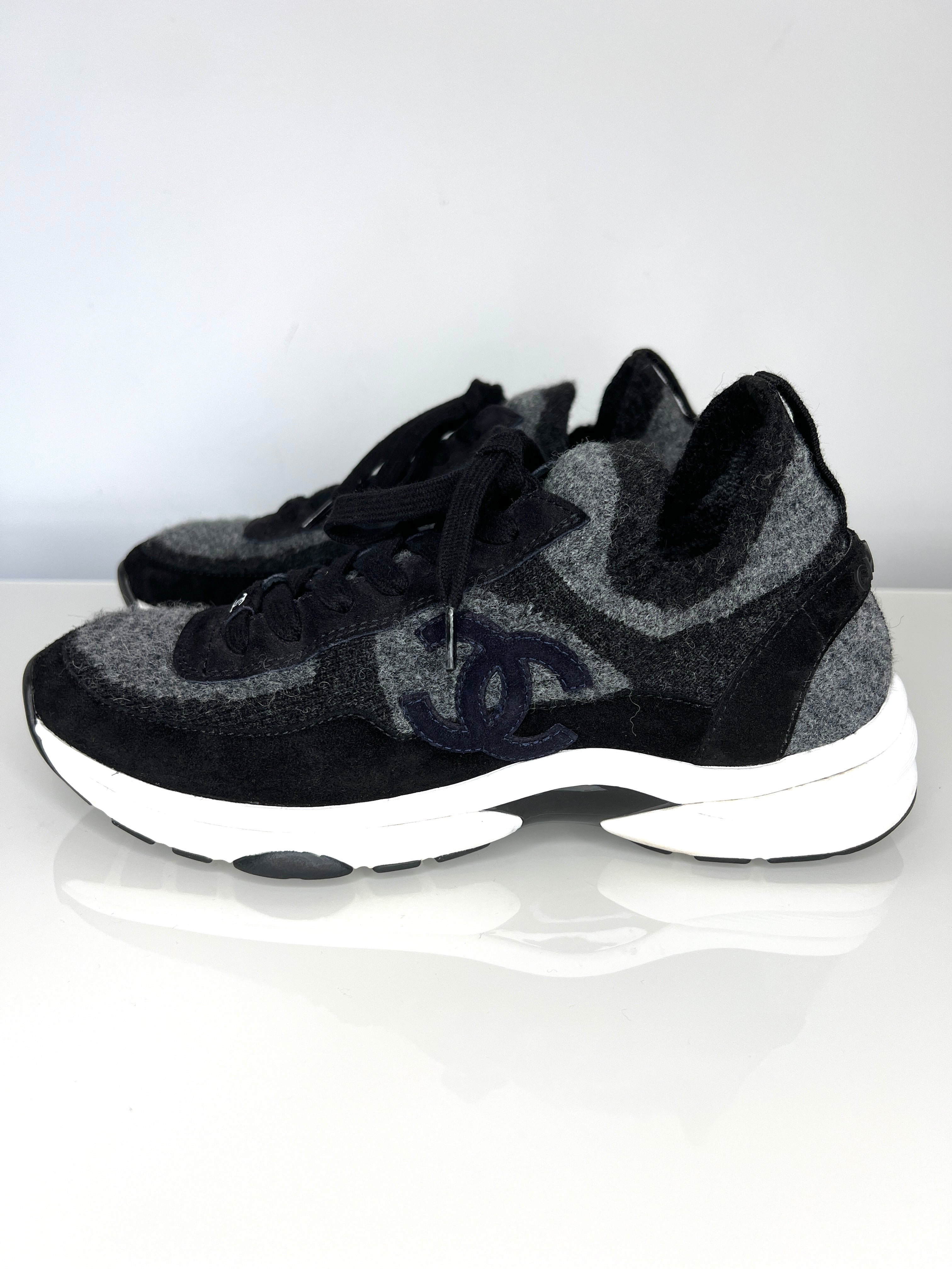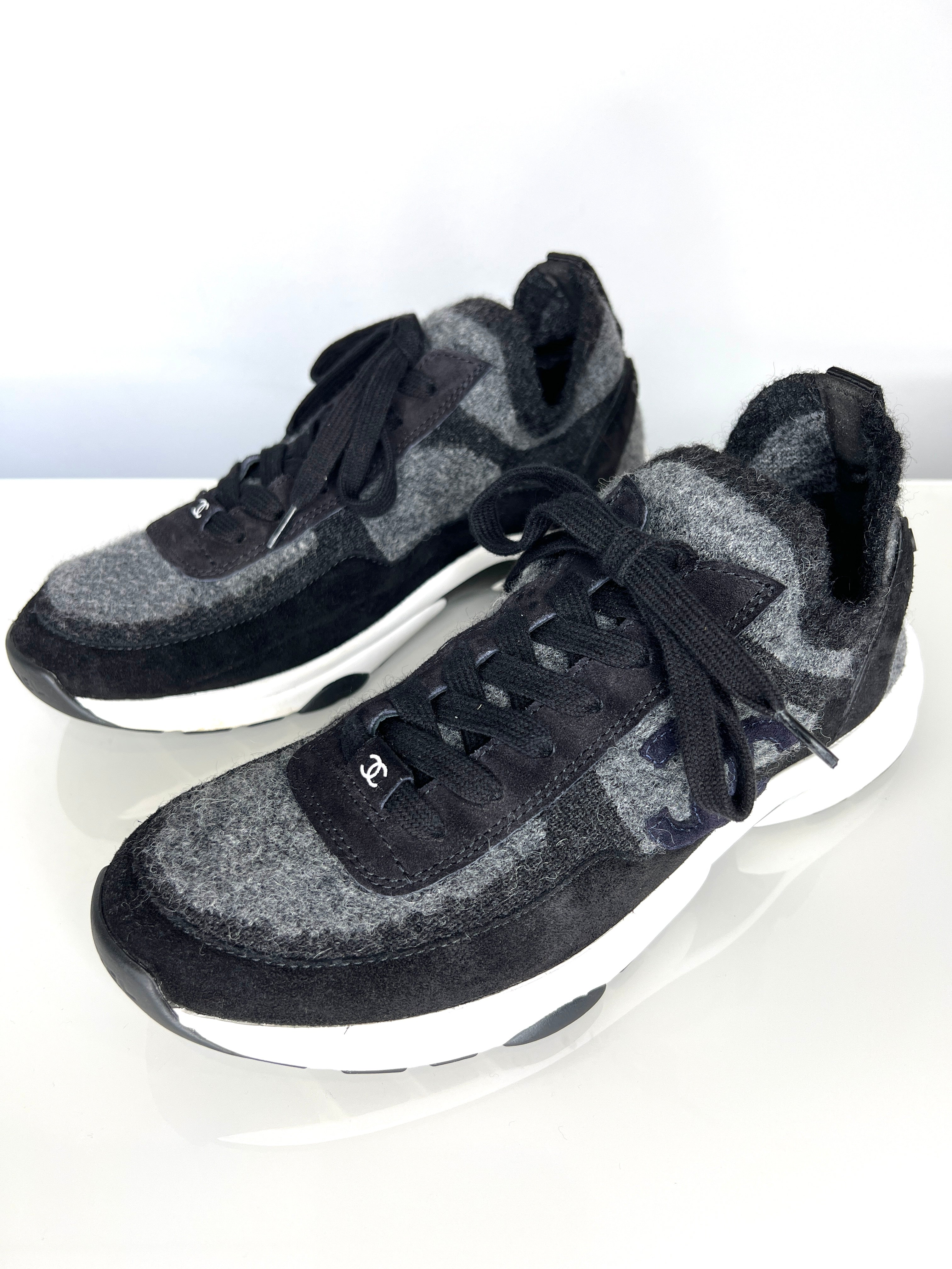Chanel Preloved Grey Fabric Black Suede Sneakers Trainers 38.5 UK5.5