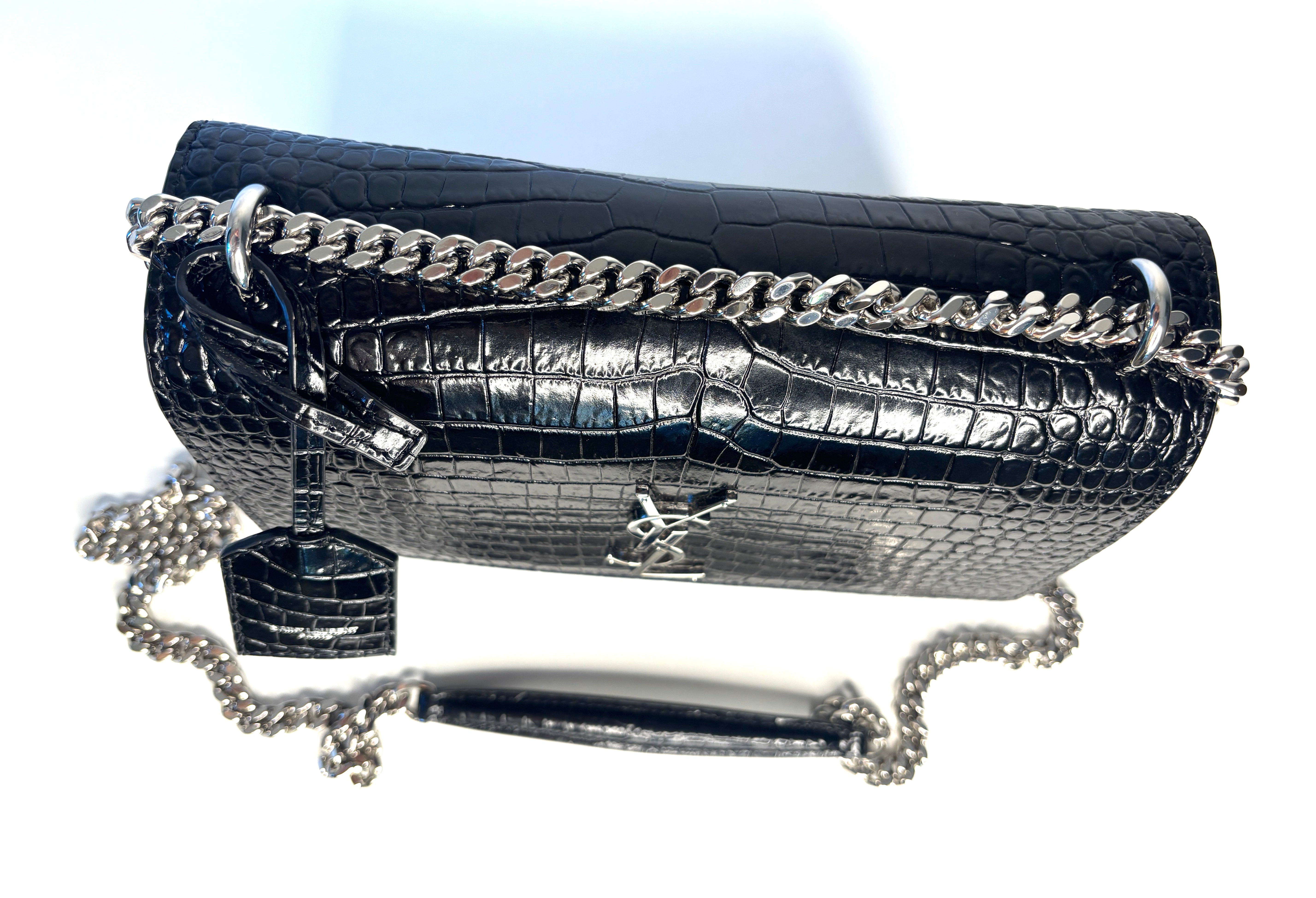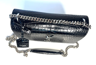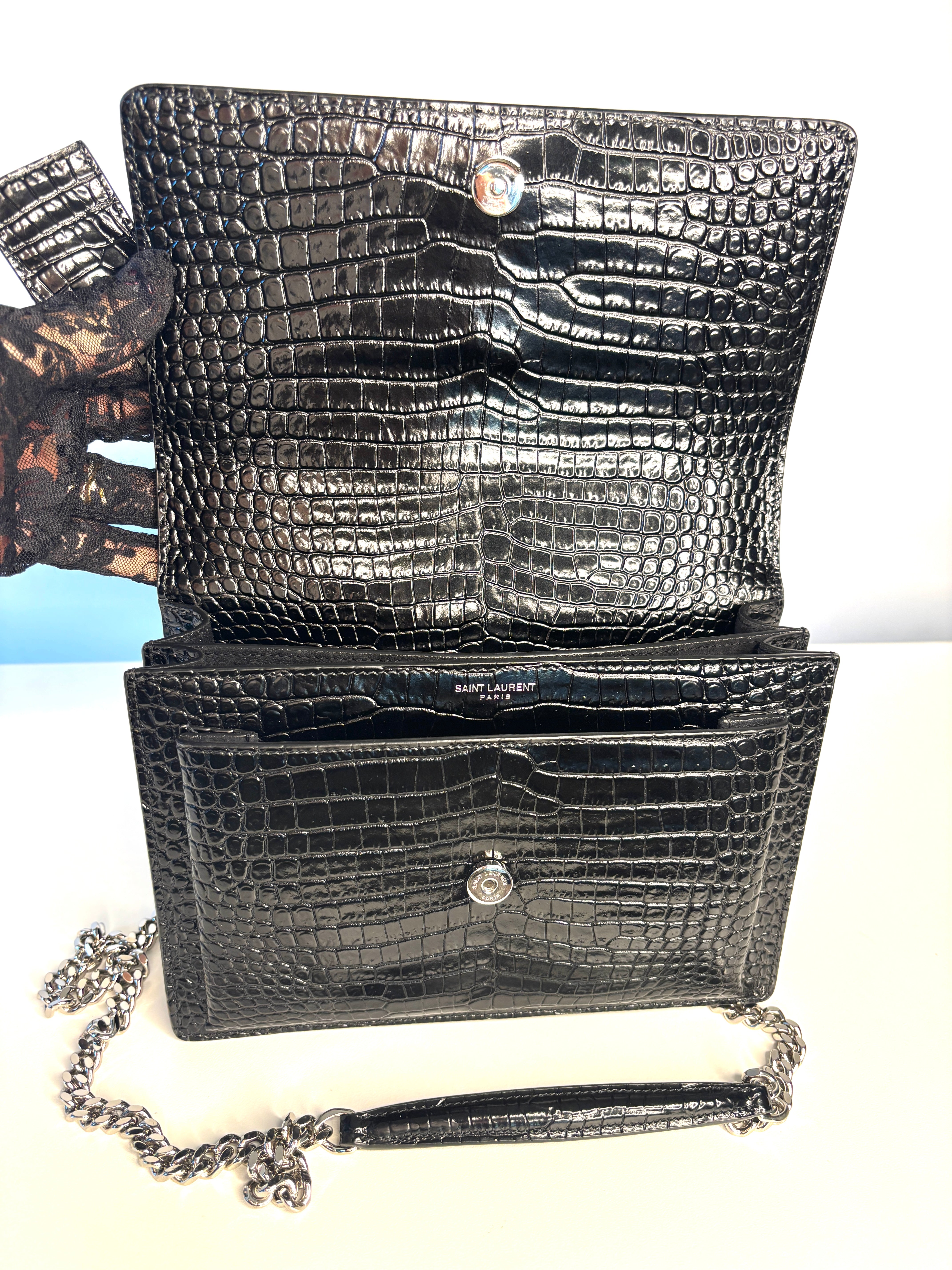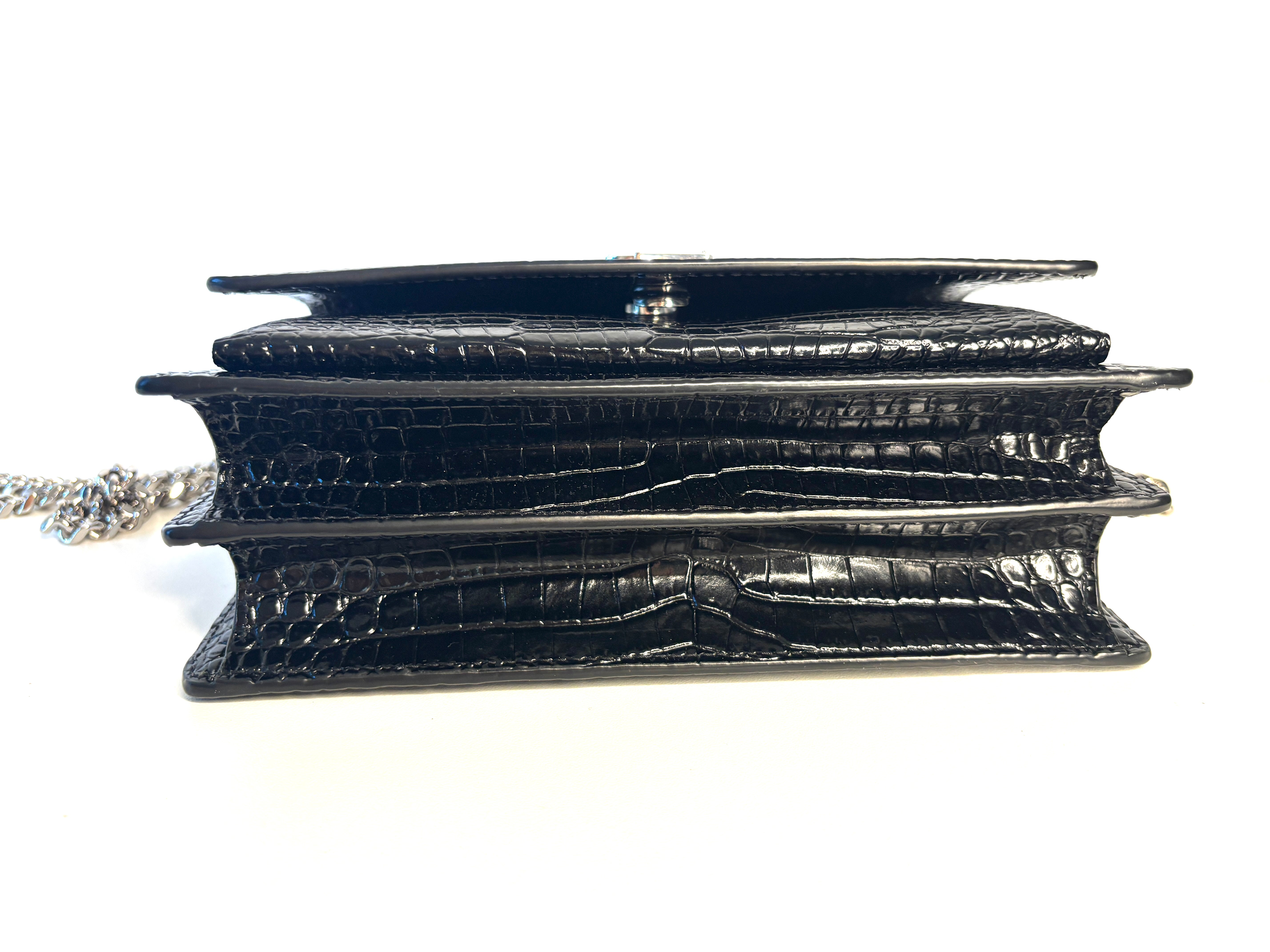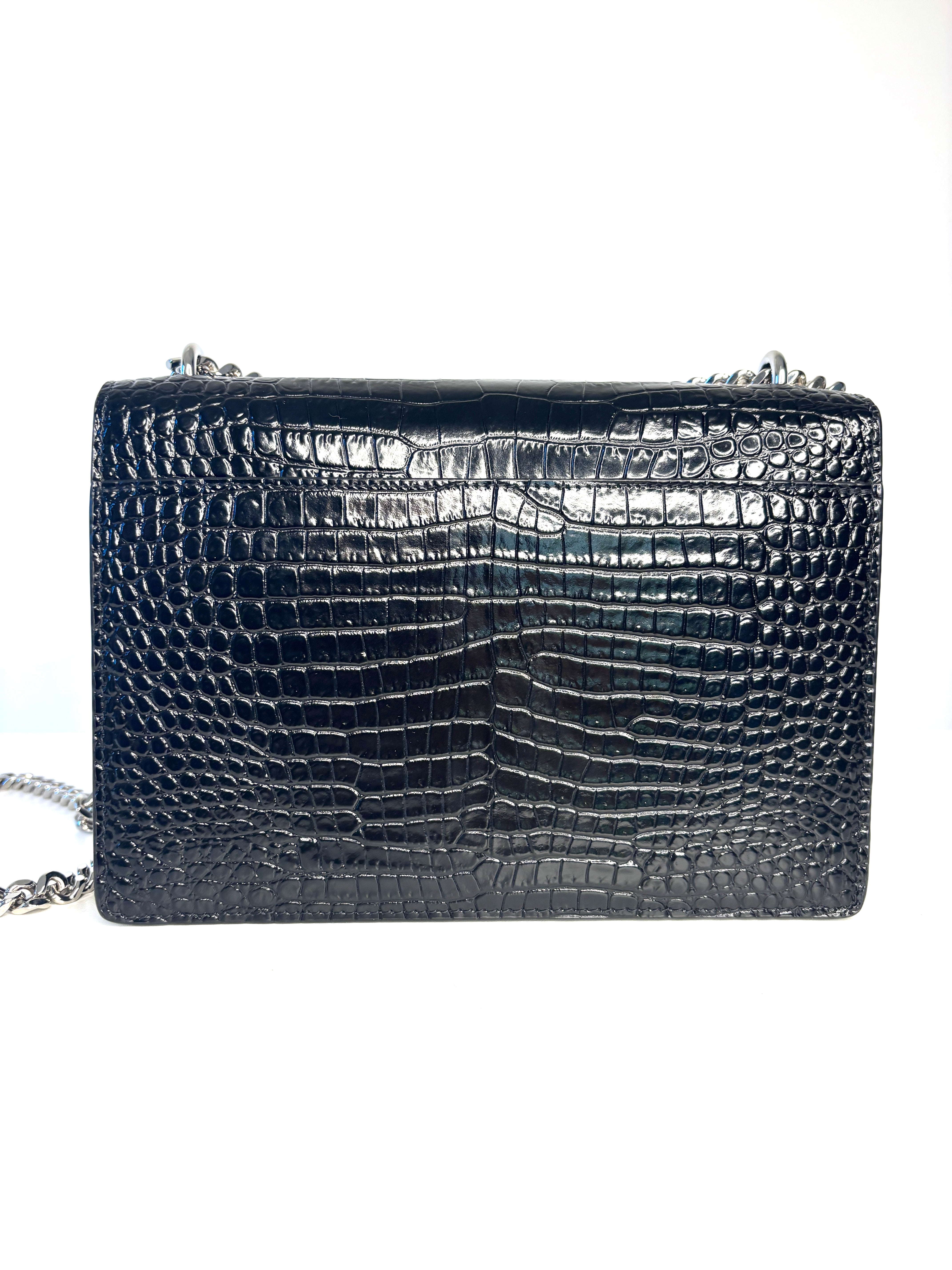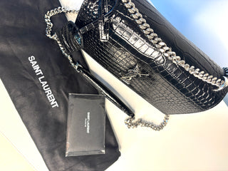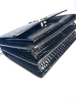 Saint Laurent Sunset Croc-Effect Black Medium Shoulder Bag - Preloved (Like New)