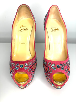 Christian Louboutin Bollywoody Pink Suede Peep Toe Heels 38 UK5