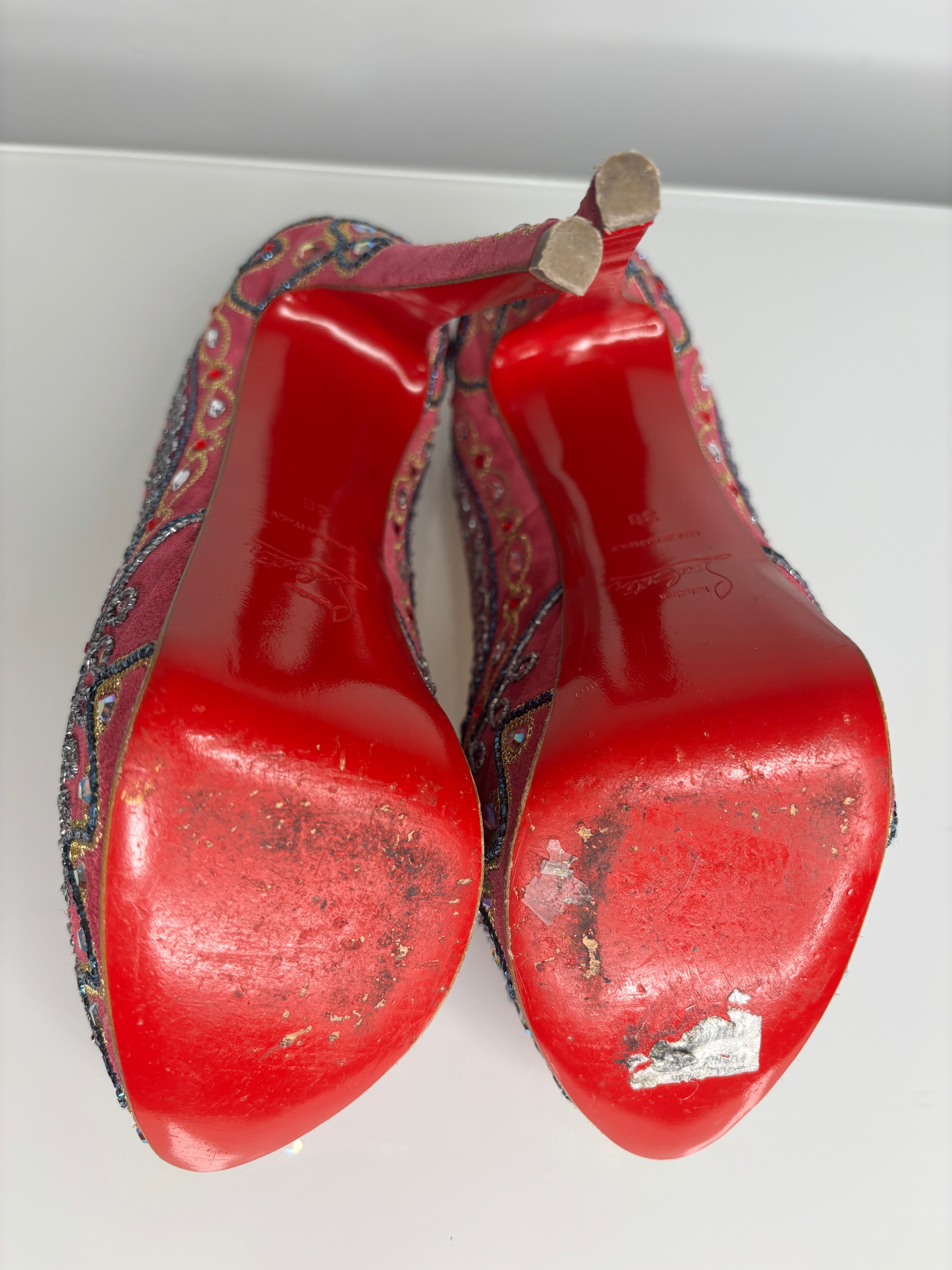 Christian Louboutin Bollywoody Pink Suede Peep Toe Heels 38 UK5