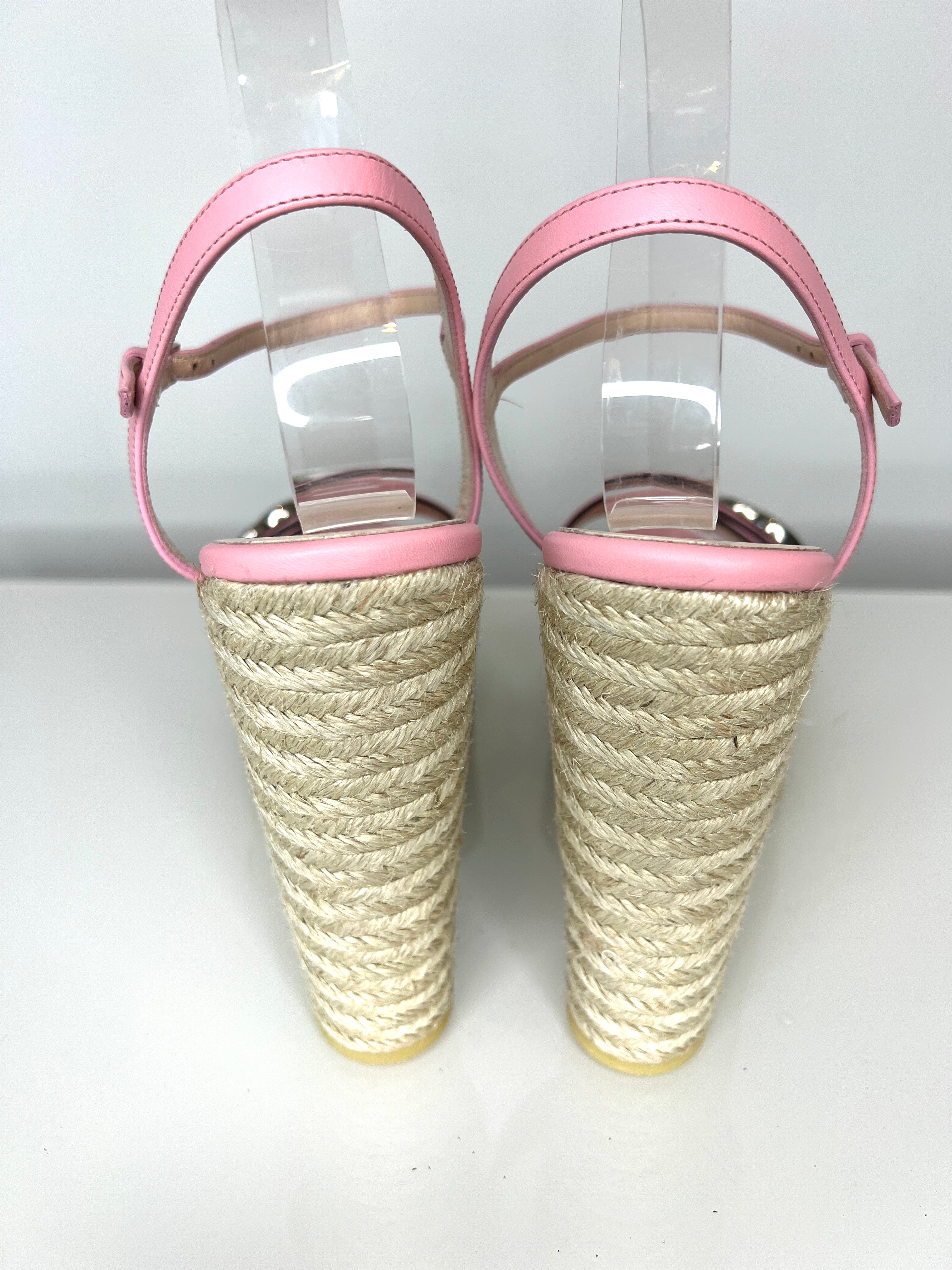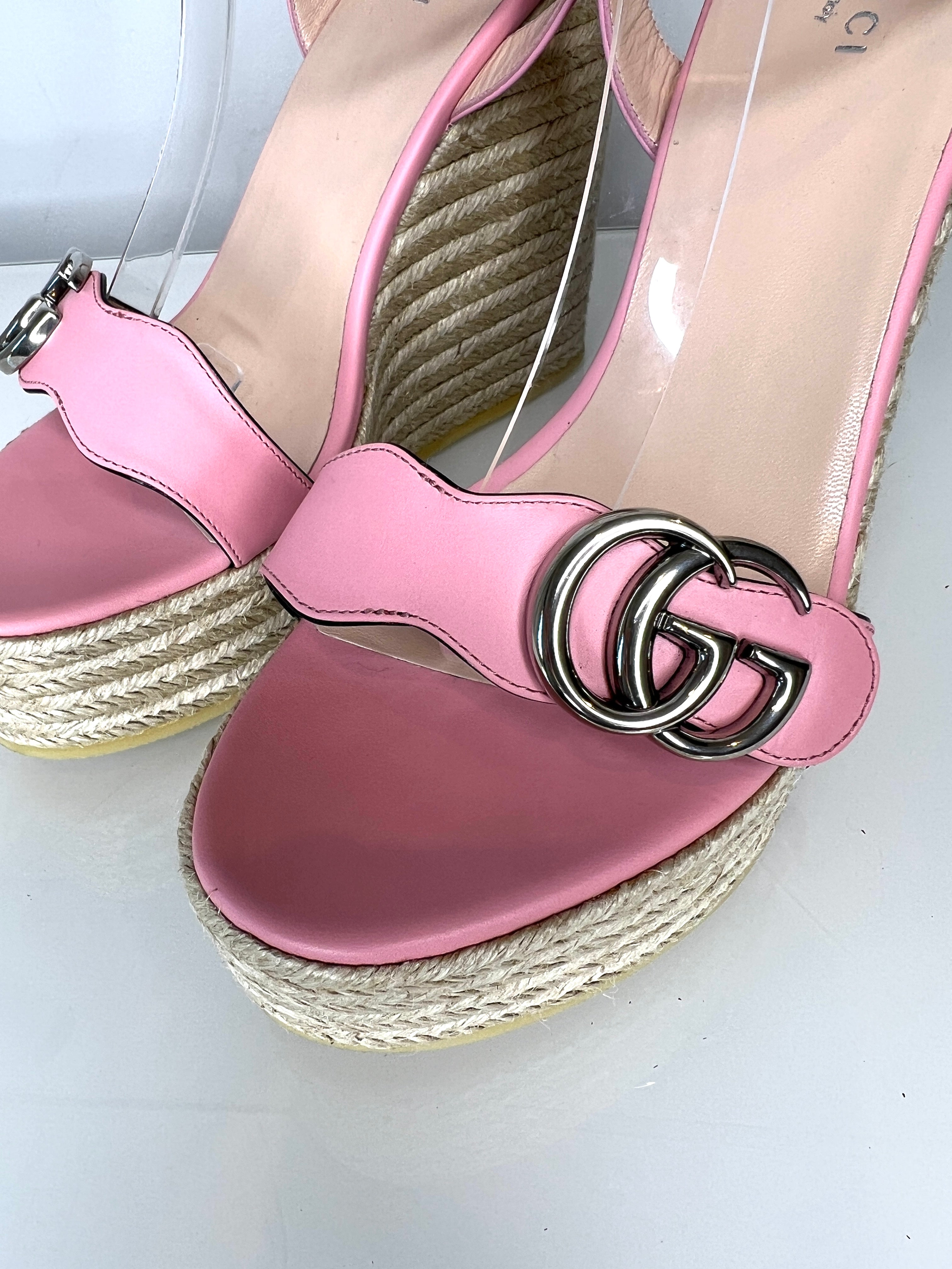 Gucci GG Marmont Pink Leather Espadrille Wedge Sandals 40.5 UK7.5