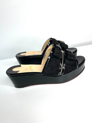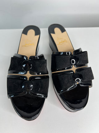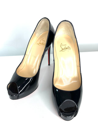 Christian Louboutin Preloved Lady Peep Black Patent Platform Heels 37 UK4