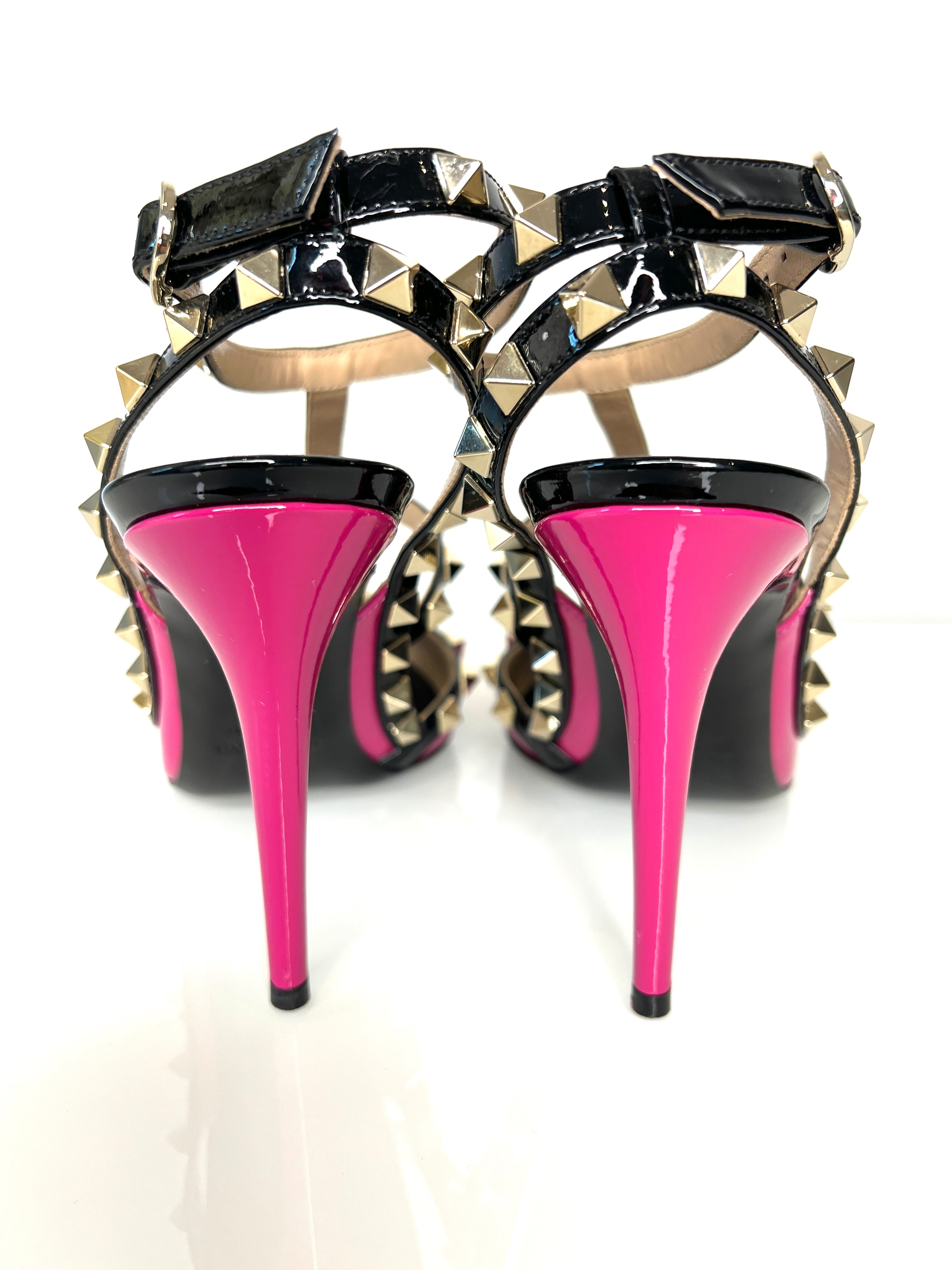 Valentino Garavani Preloved Rockstud Caged Pump 100 Pink Patent Leather Heels 37.5 UK4.5