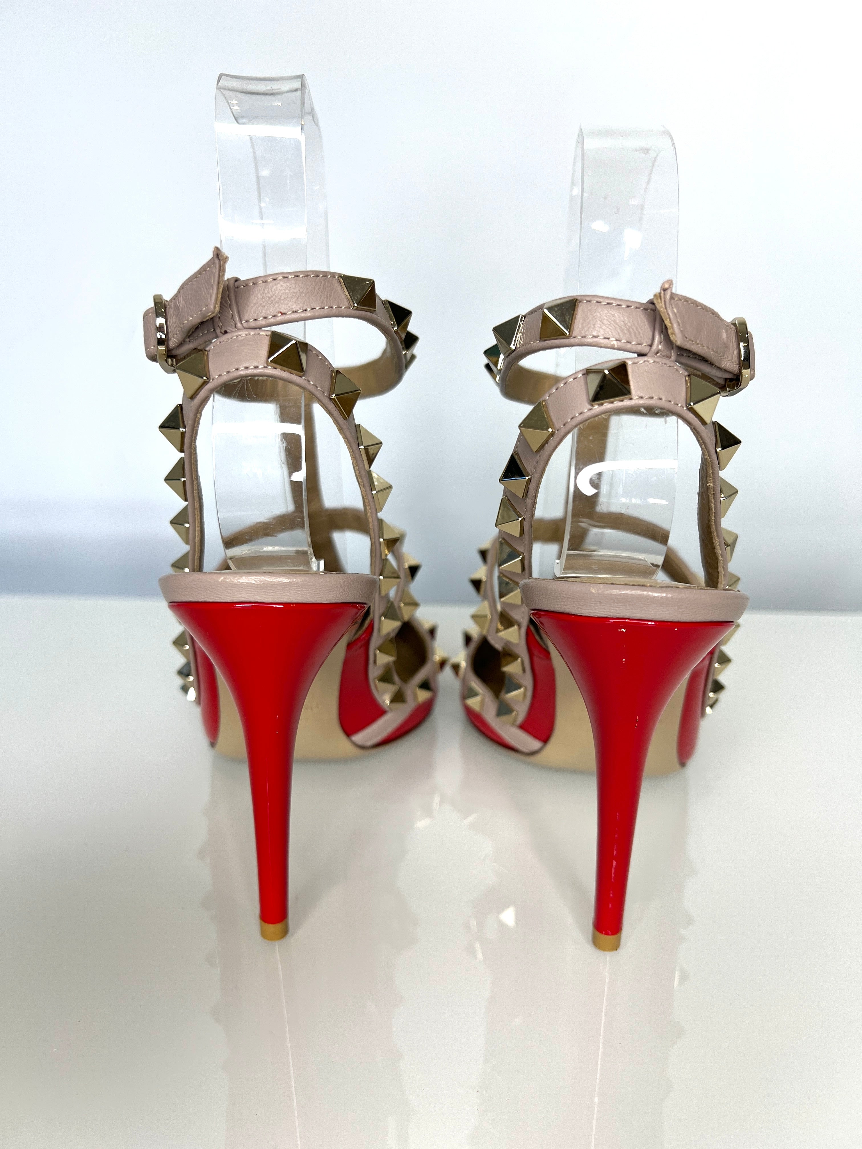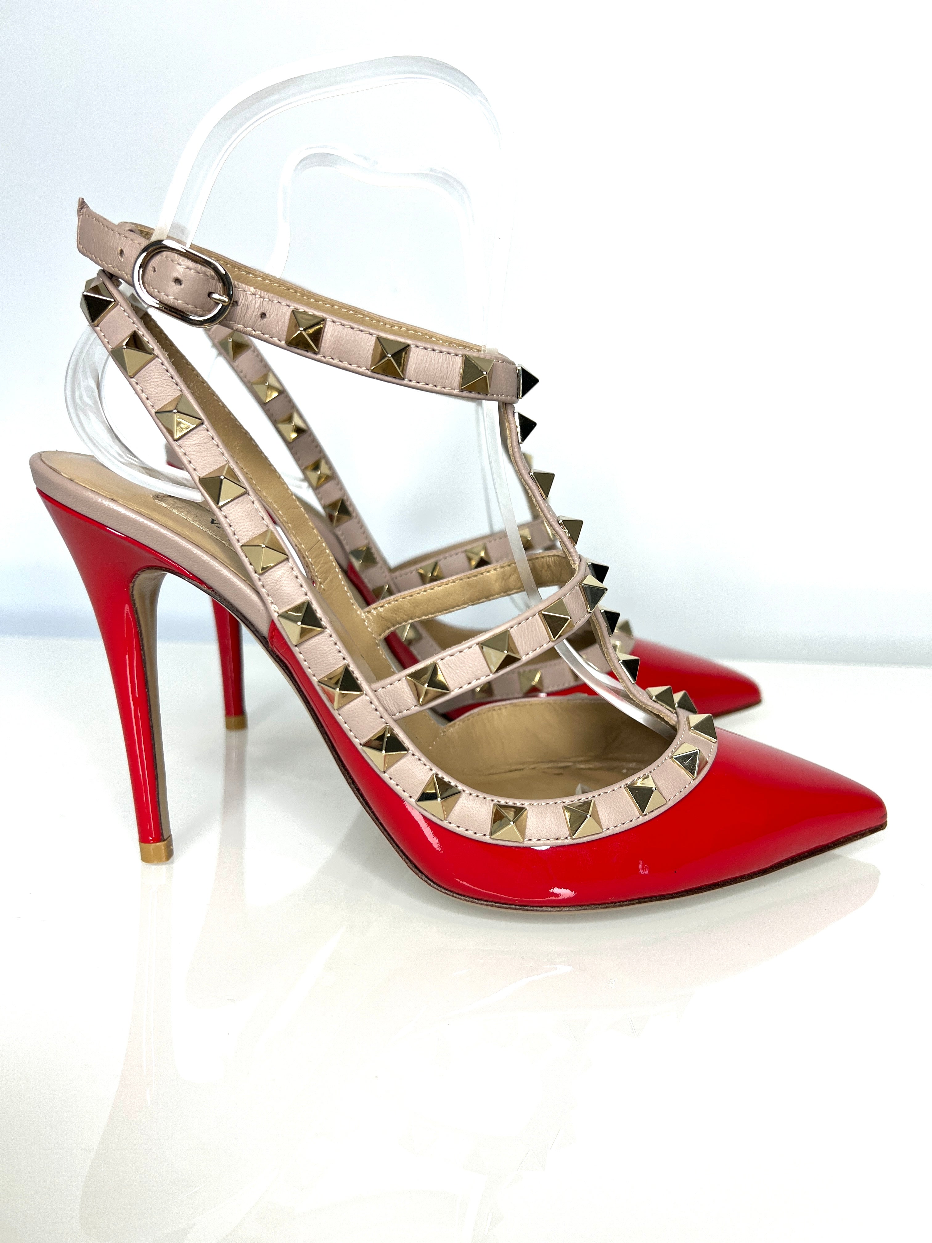 Valentino Garavani Rockstud 100 Red Patent Leather Caged Heels 37 UK4