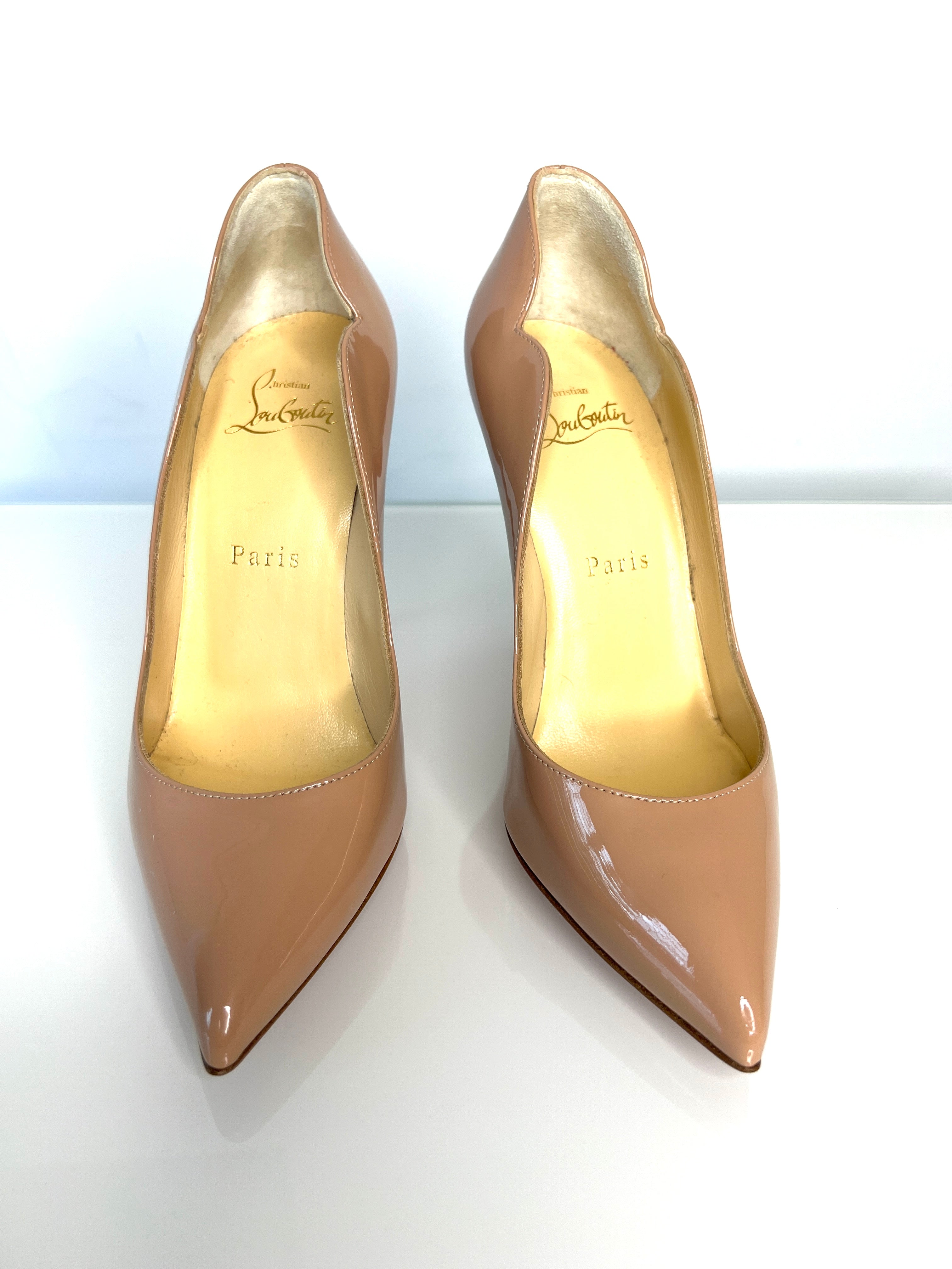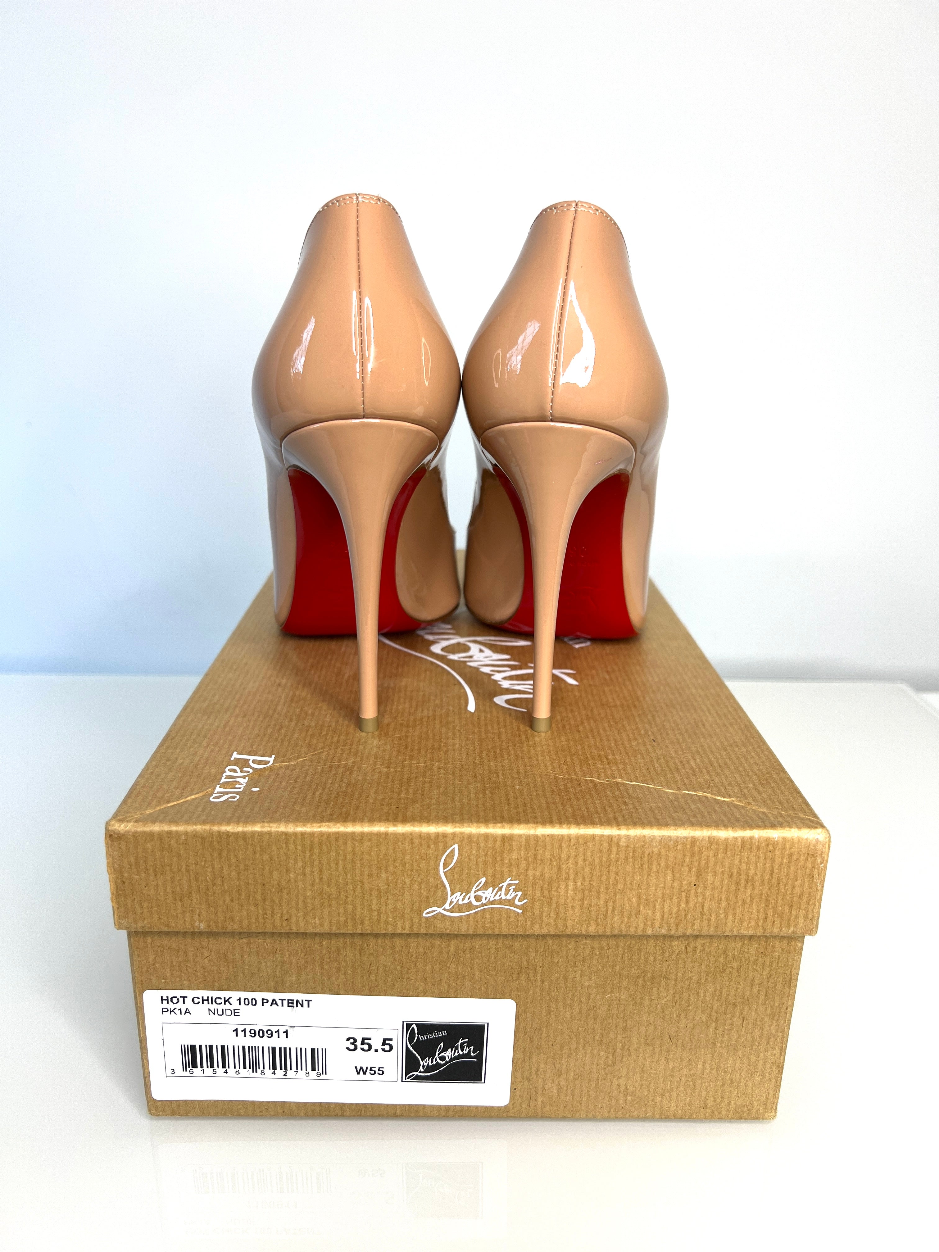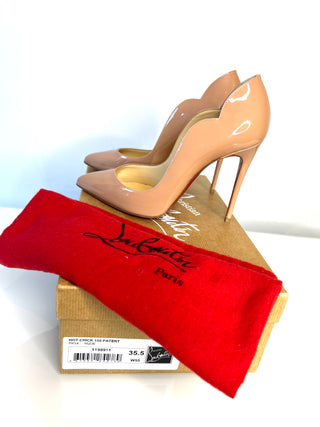 Christian Louboutin Hot Chick 100 Nude Patent Leather Heels 35.5 UK2.5 - Preloved