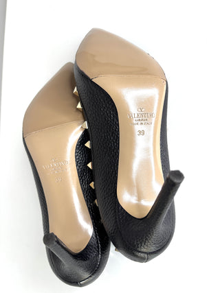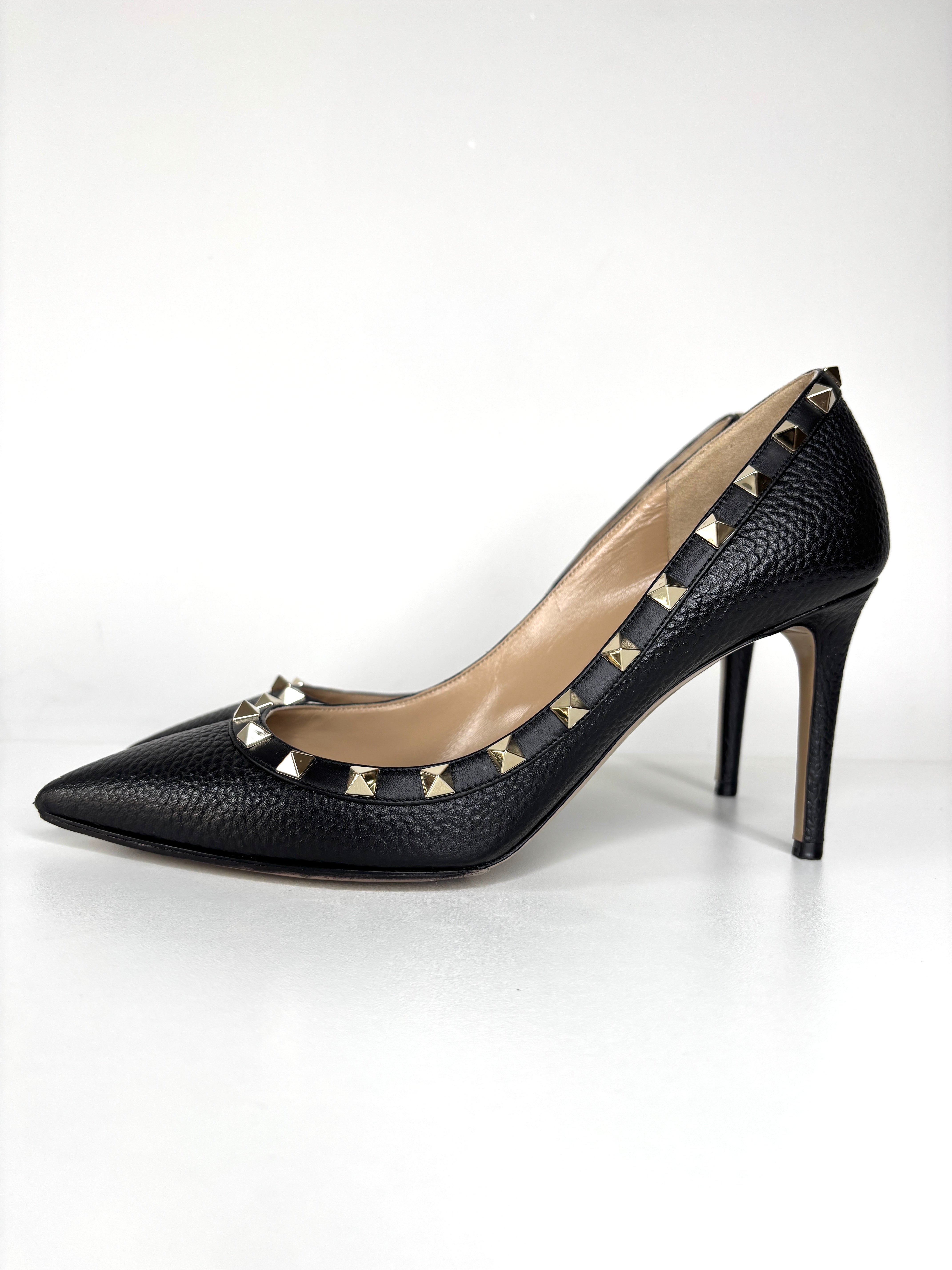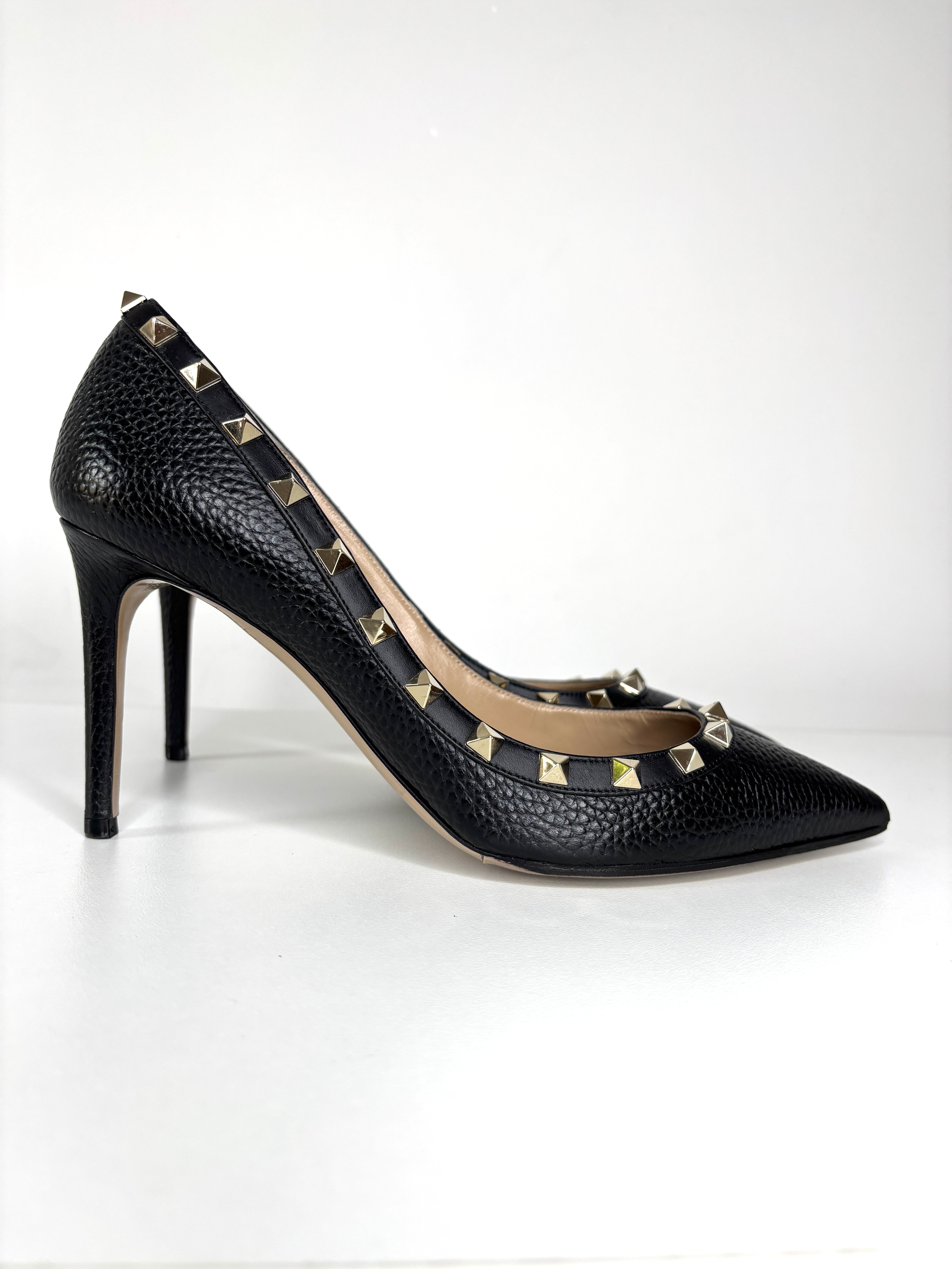 Valentino Garavani Rockstud 85 Black Leather Heel Pumps 39 UK6