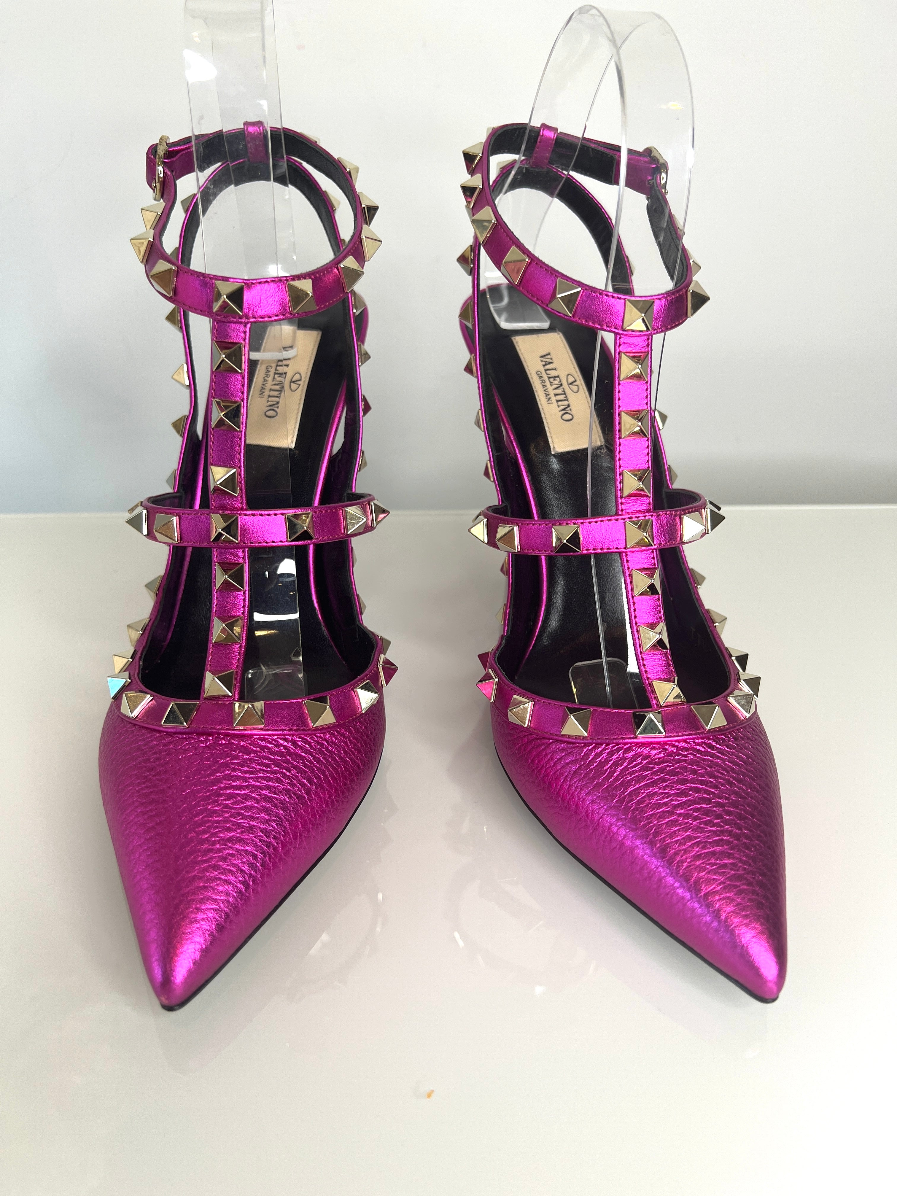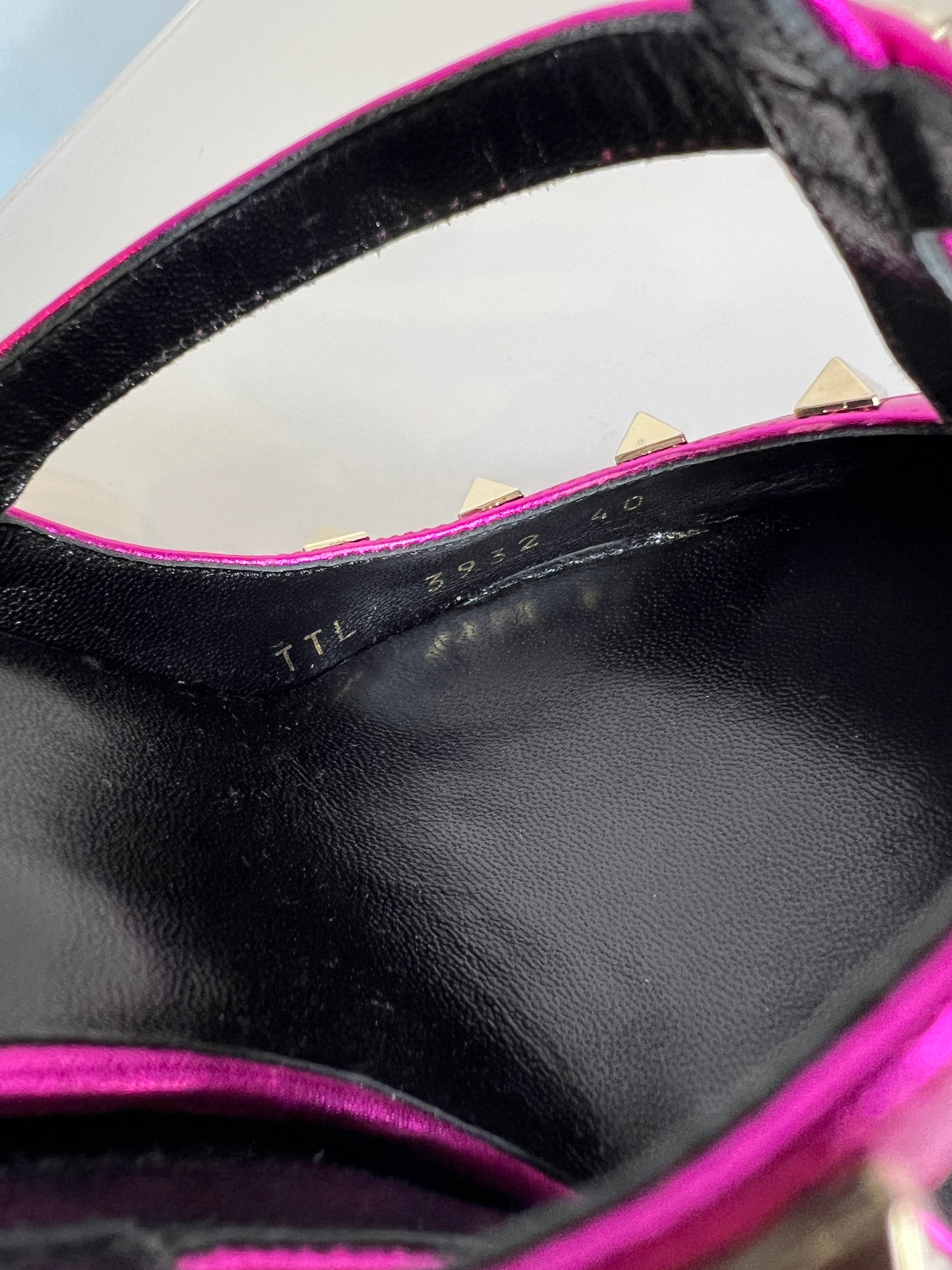 Valentino Garavani Rockstud 100 Metallic Pink Textured Leather Sandals Heels 40 UK7