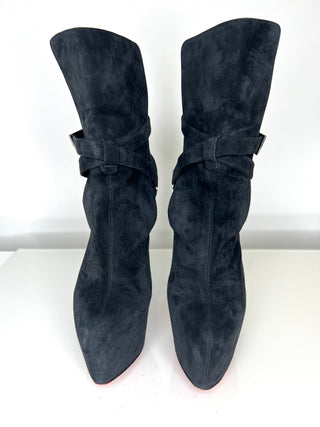 Christian Louboutin Equestria 160 Black Suede Platform Ankle Boots 37.5 UK4.5