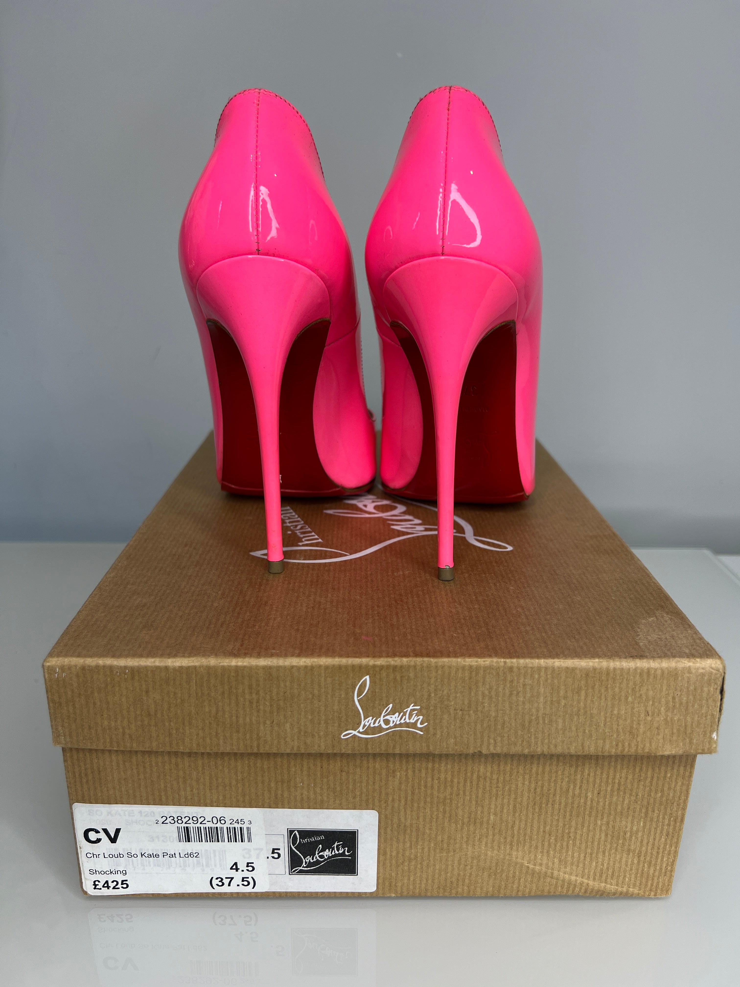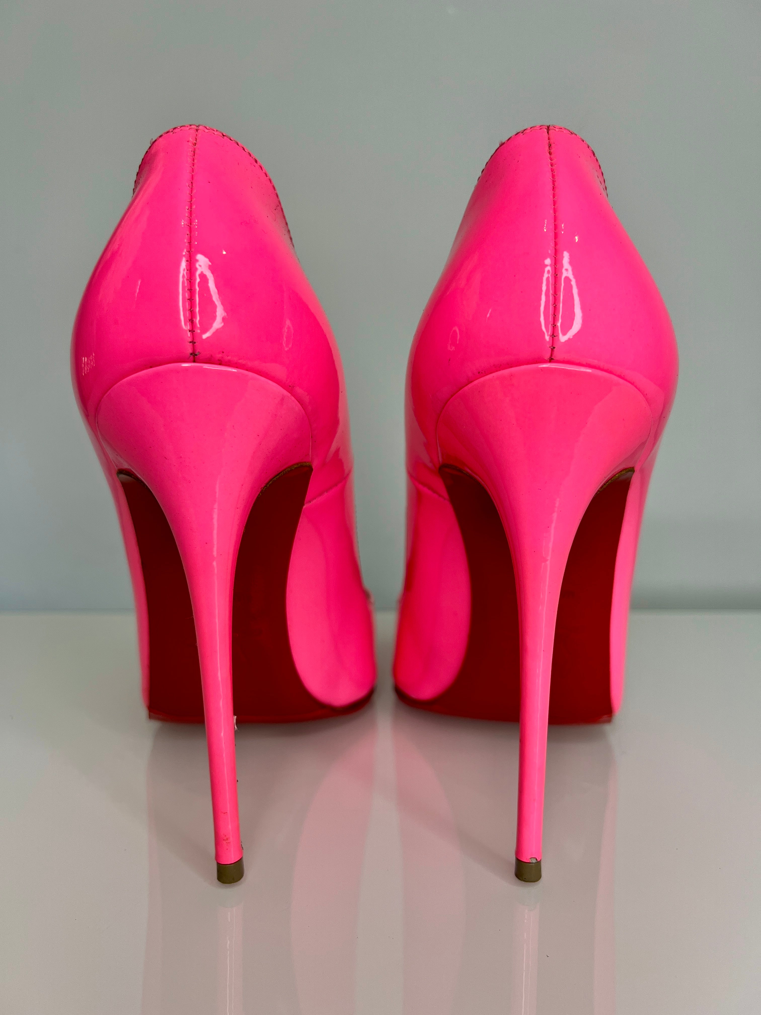 Christian Louboutin Preloved So Kate 120 Shocking Pink Patent Leather Heels 37.5 UK4.5
