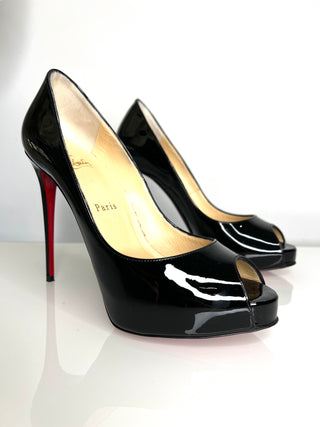 Christian Louboutin Preloved New Very Prive 120 Black Patent Peep-Toe Platform Heels 37.5
