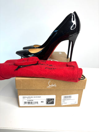 Christian Louboutin Decollete 554 100 Black Patent Heels 40 UK7