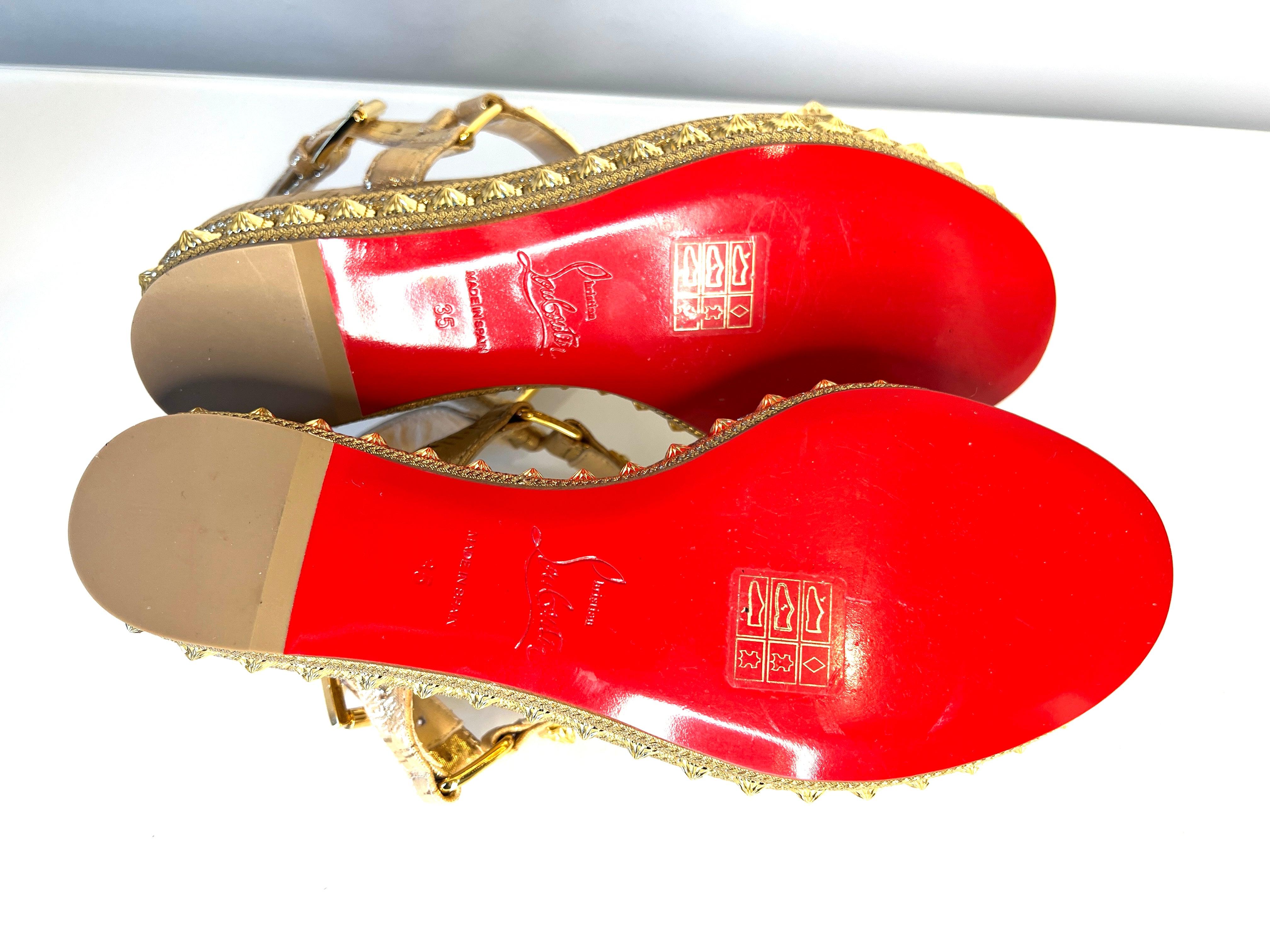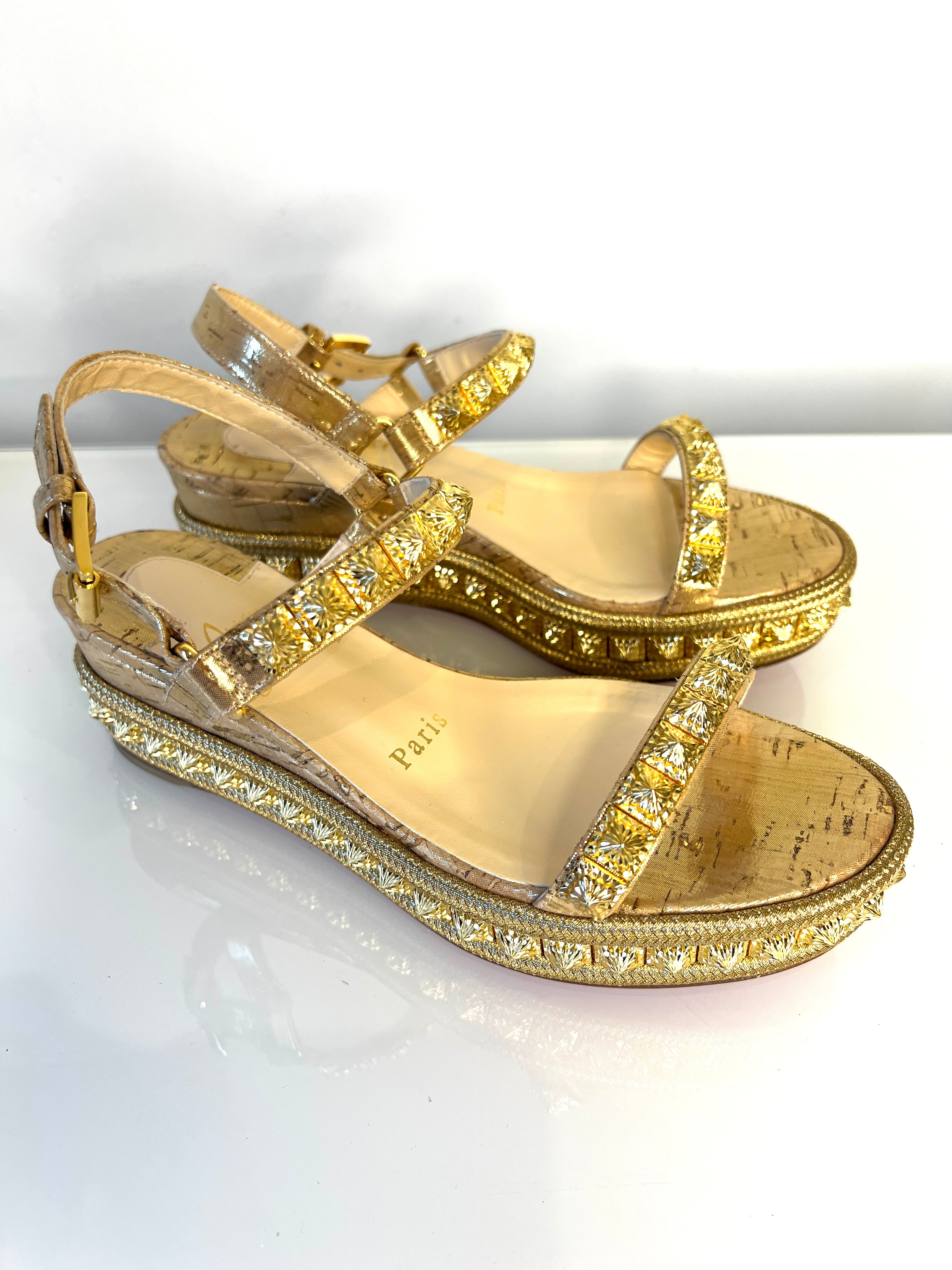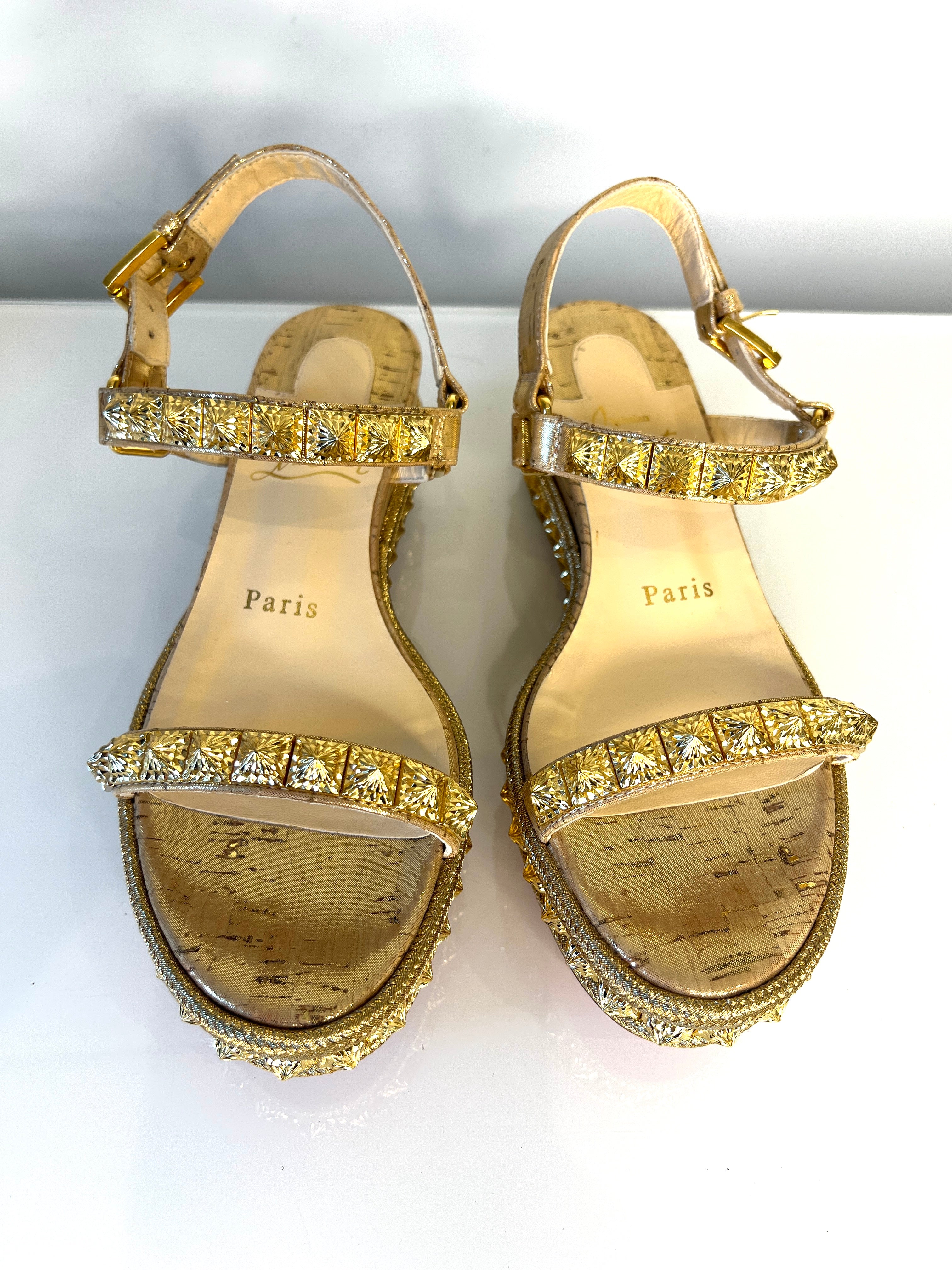 Christian Louboutin Pyradiams Gold Studded Platform Wedge Sandals Large 35 UK2