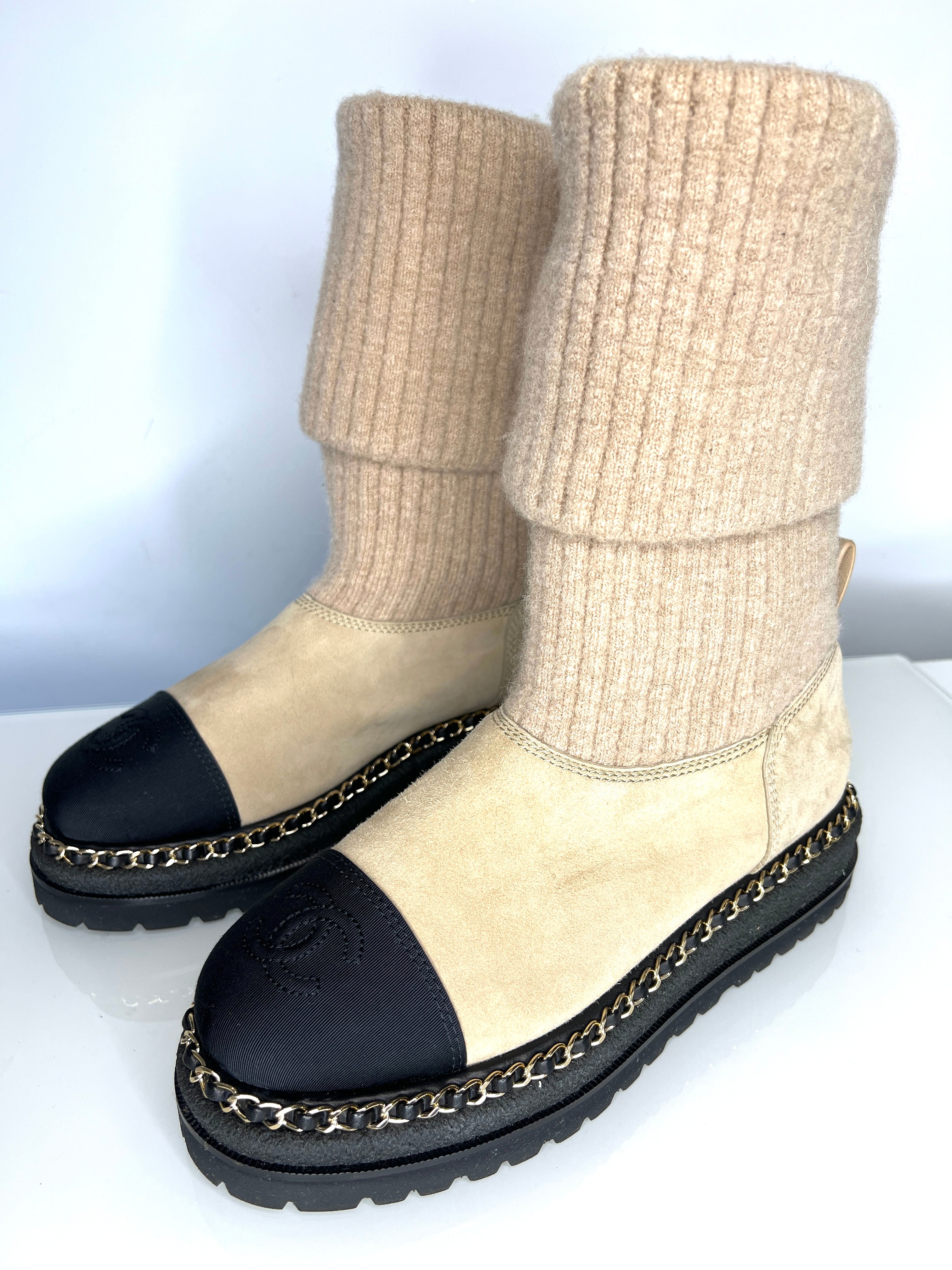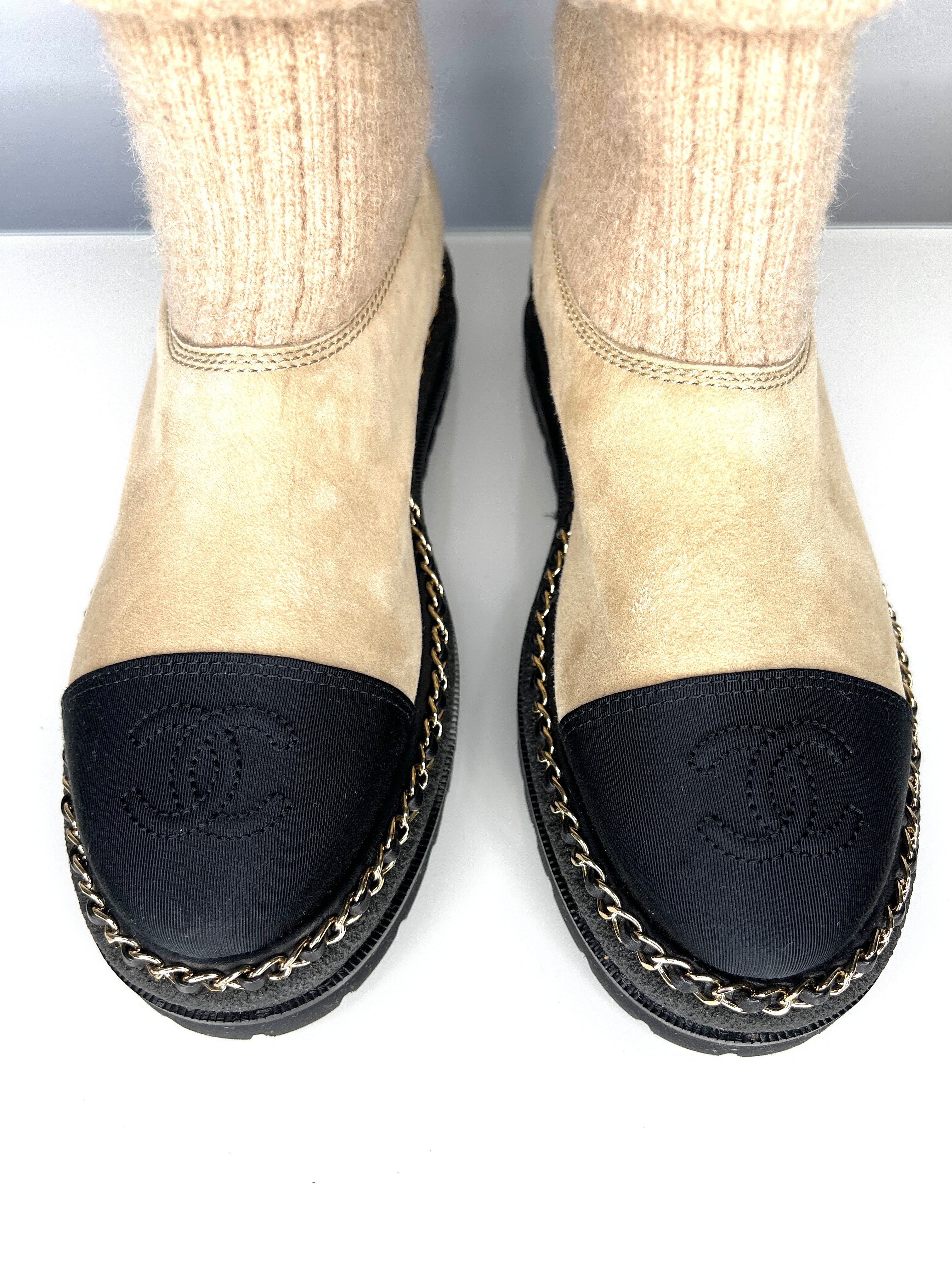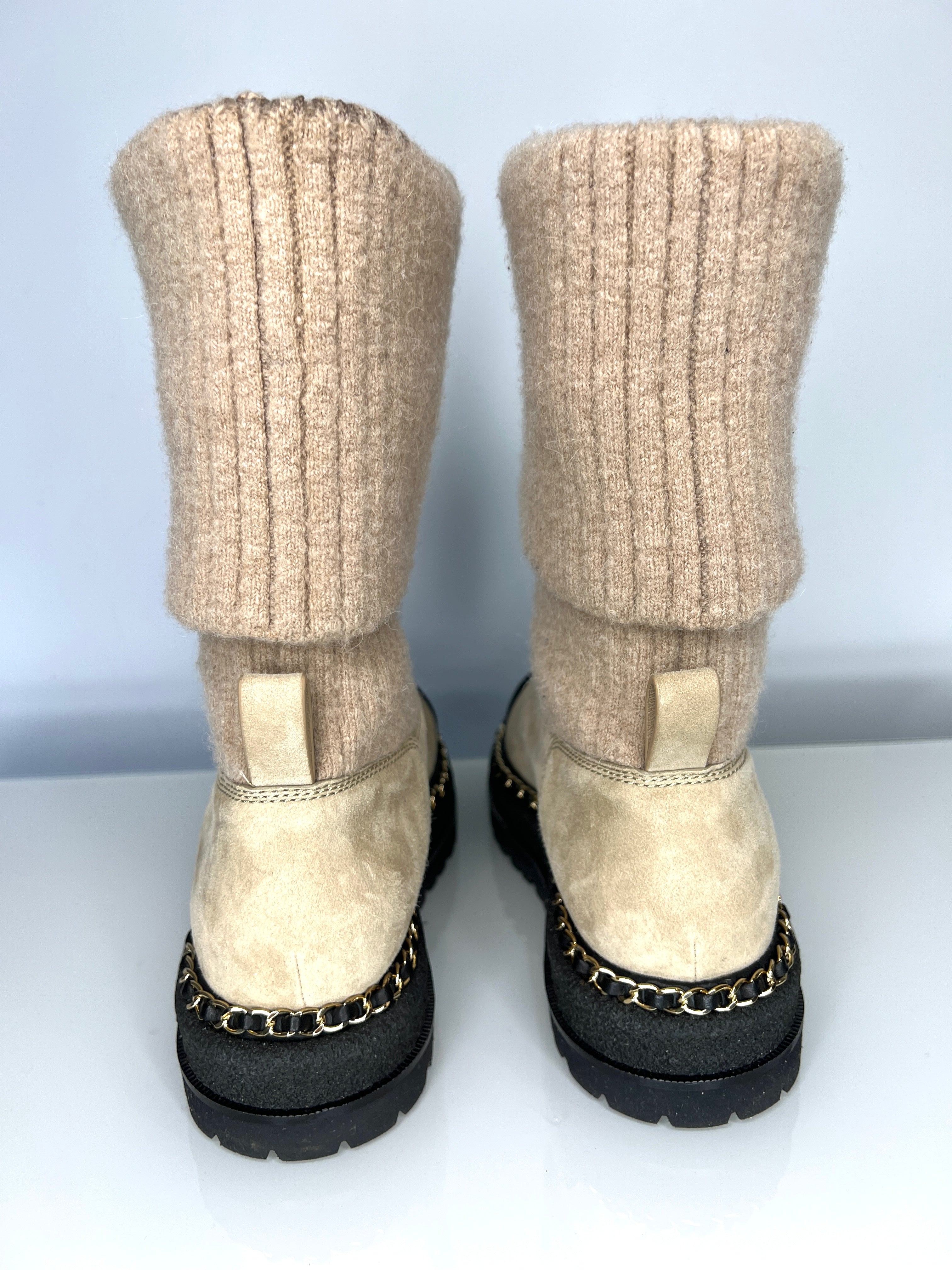 Chanel Beige Suede and Knit Chain Detail Boots 39 UK6