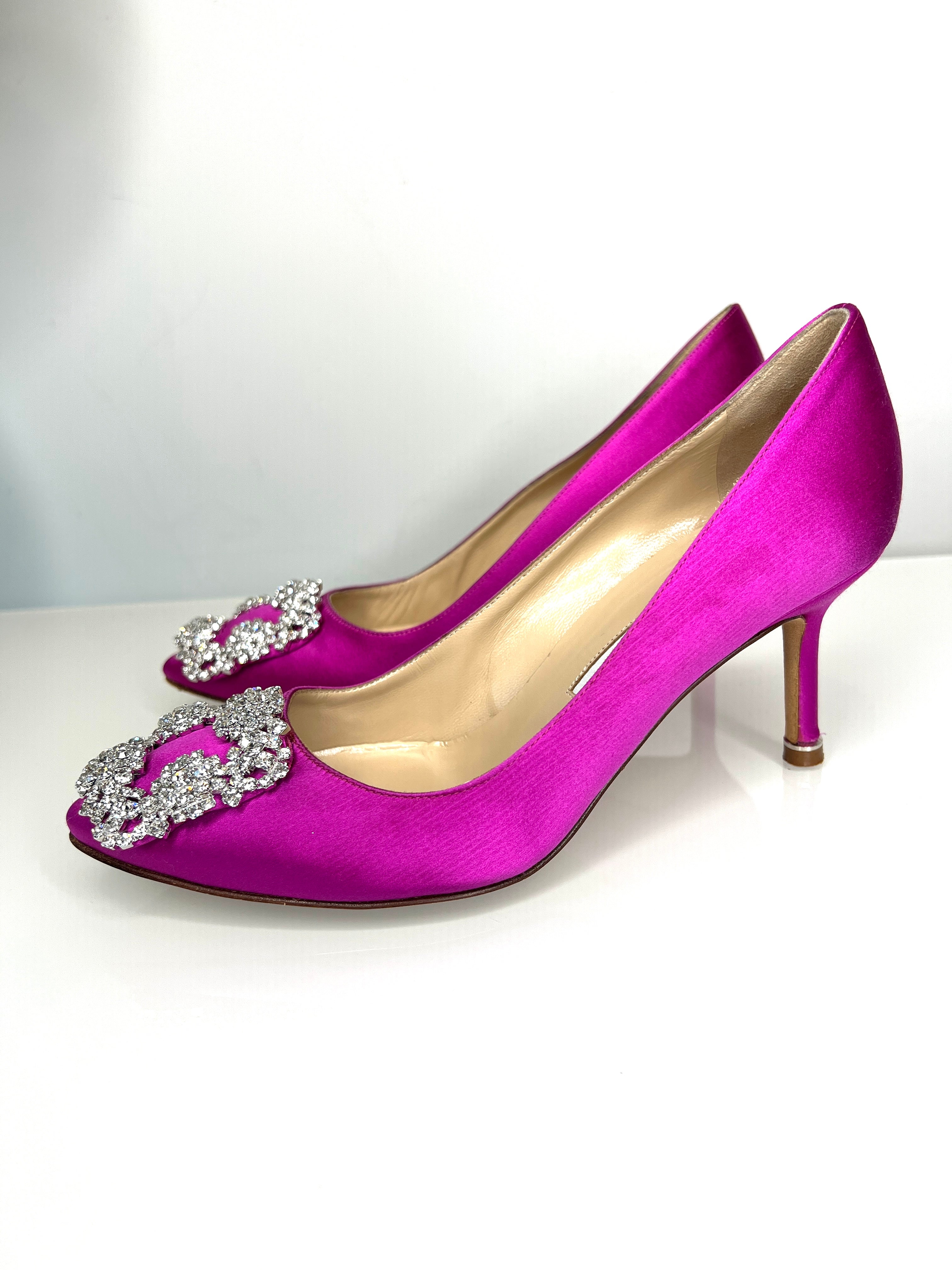 Manolo Blahnik Preloved Hangisi 70 Crystal-Embellished Fuchsia Pink Pumps Heels 35 UK2