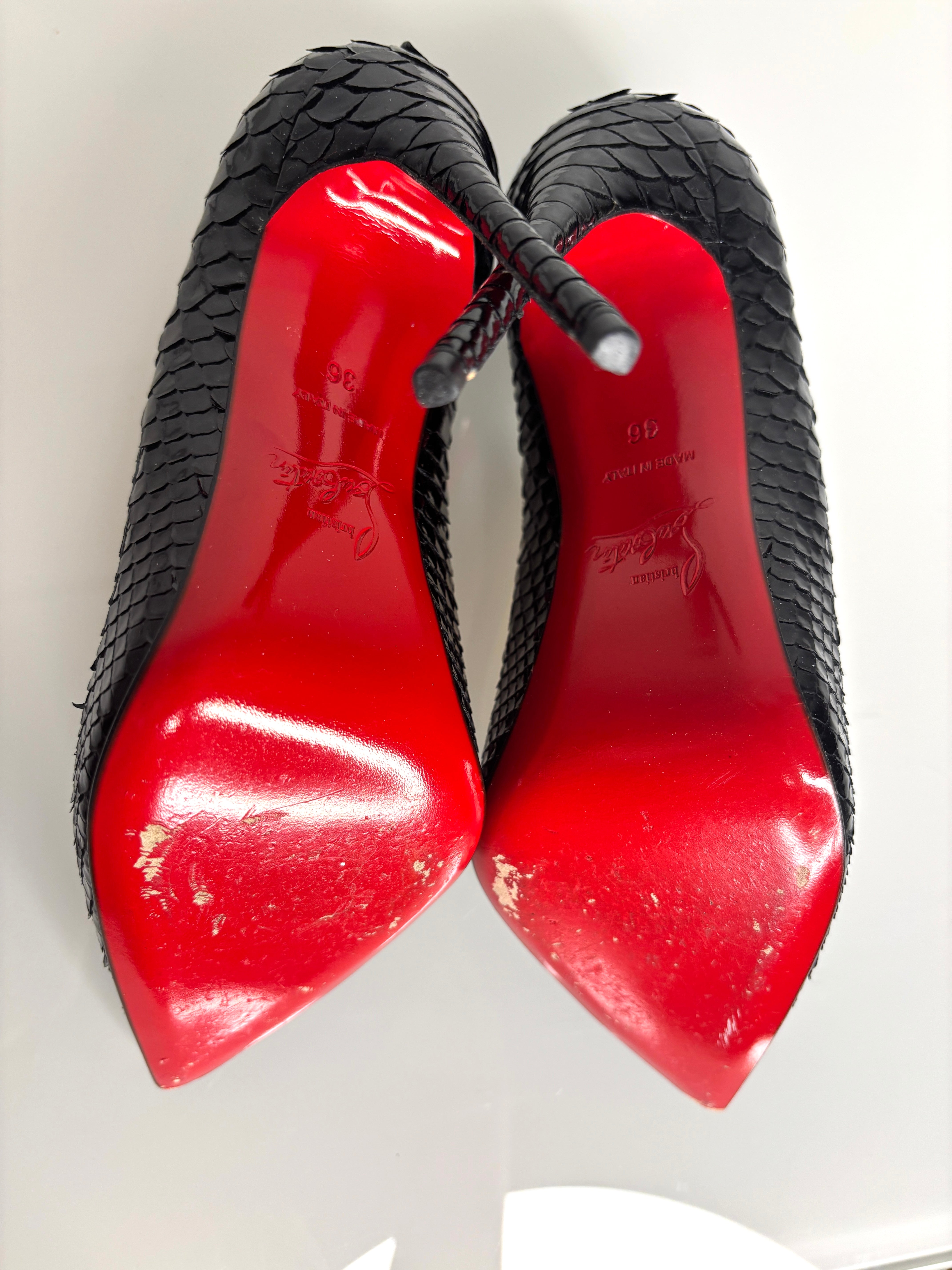 Christian Louboutin Preloved So Kate 120 Black Python Crystal Heels 36 UK3