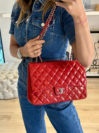 RESERVED for 24 hrs - Chanel Jumbo Red Lambskin Classic Single Flap Shoulder Bag - Preloved