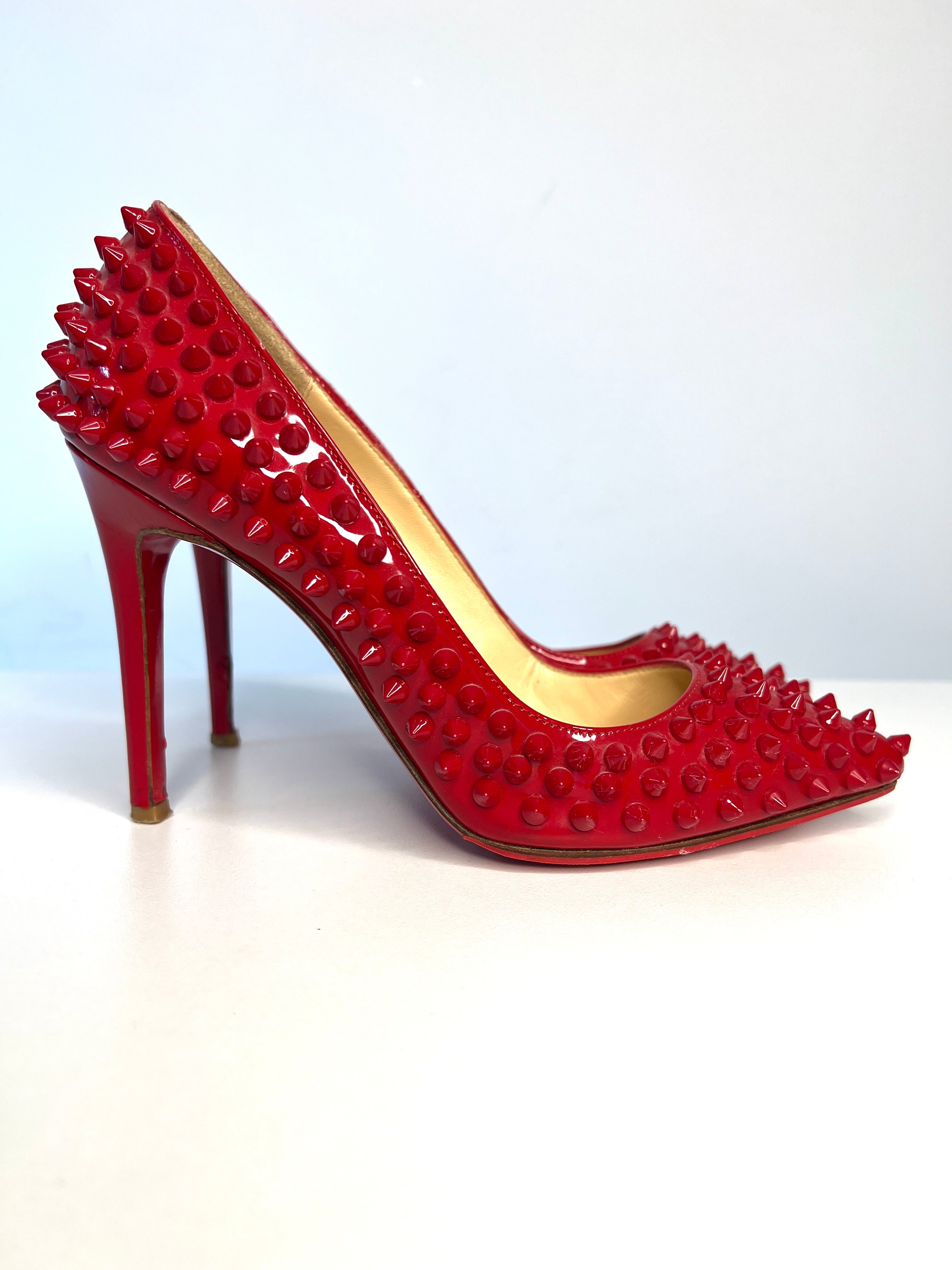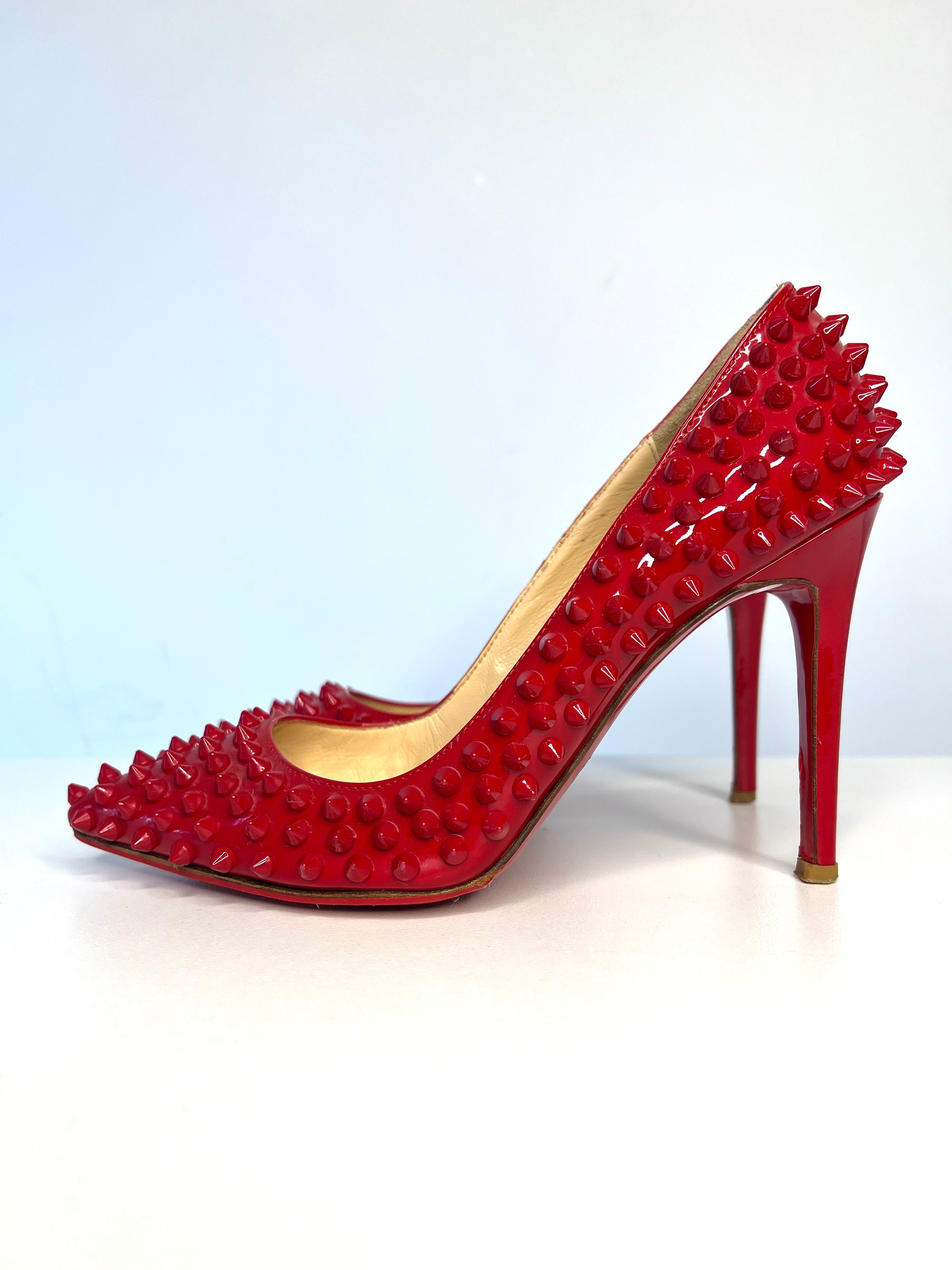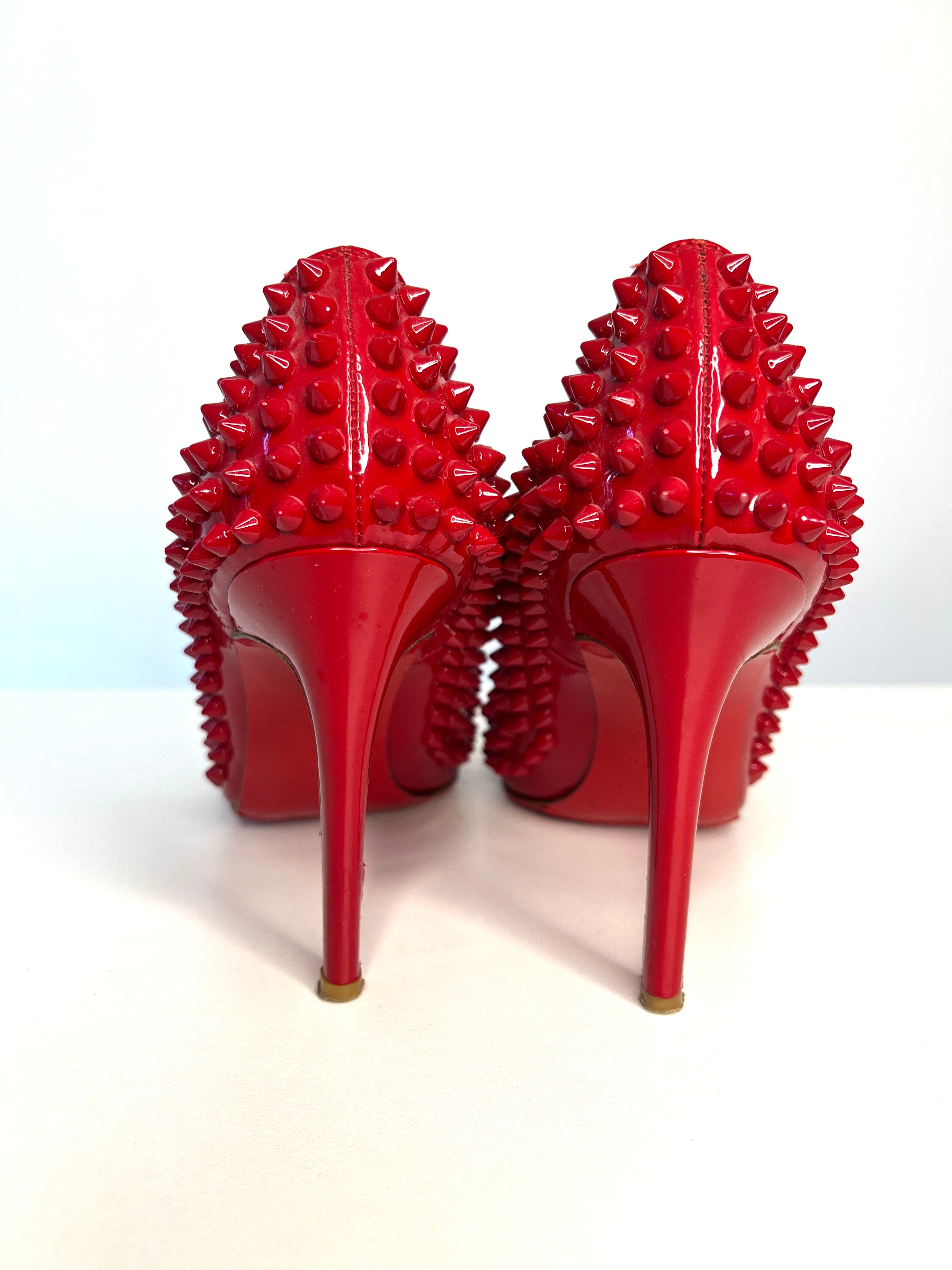 Christian Louboutin Pigalle Spike 100 Red Patent Heels 37 UK4