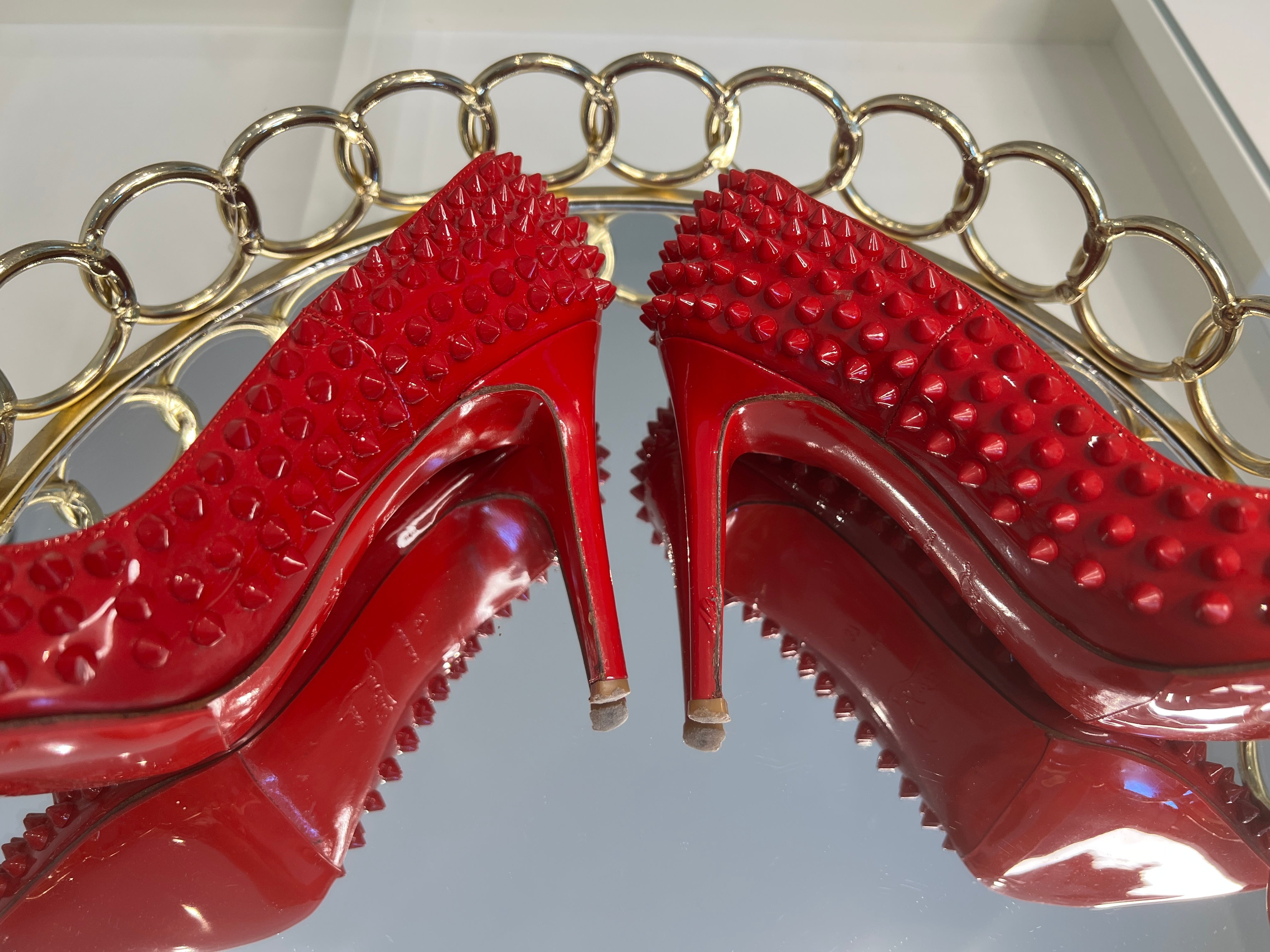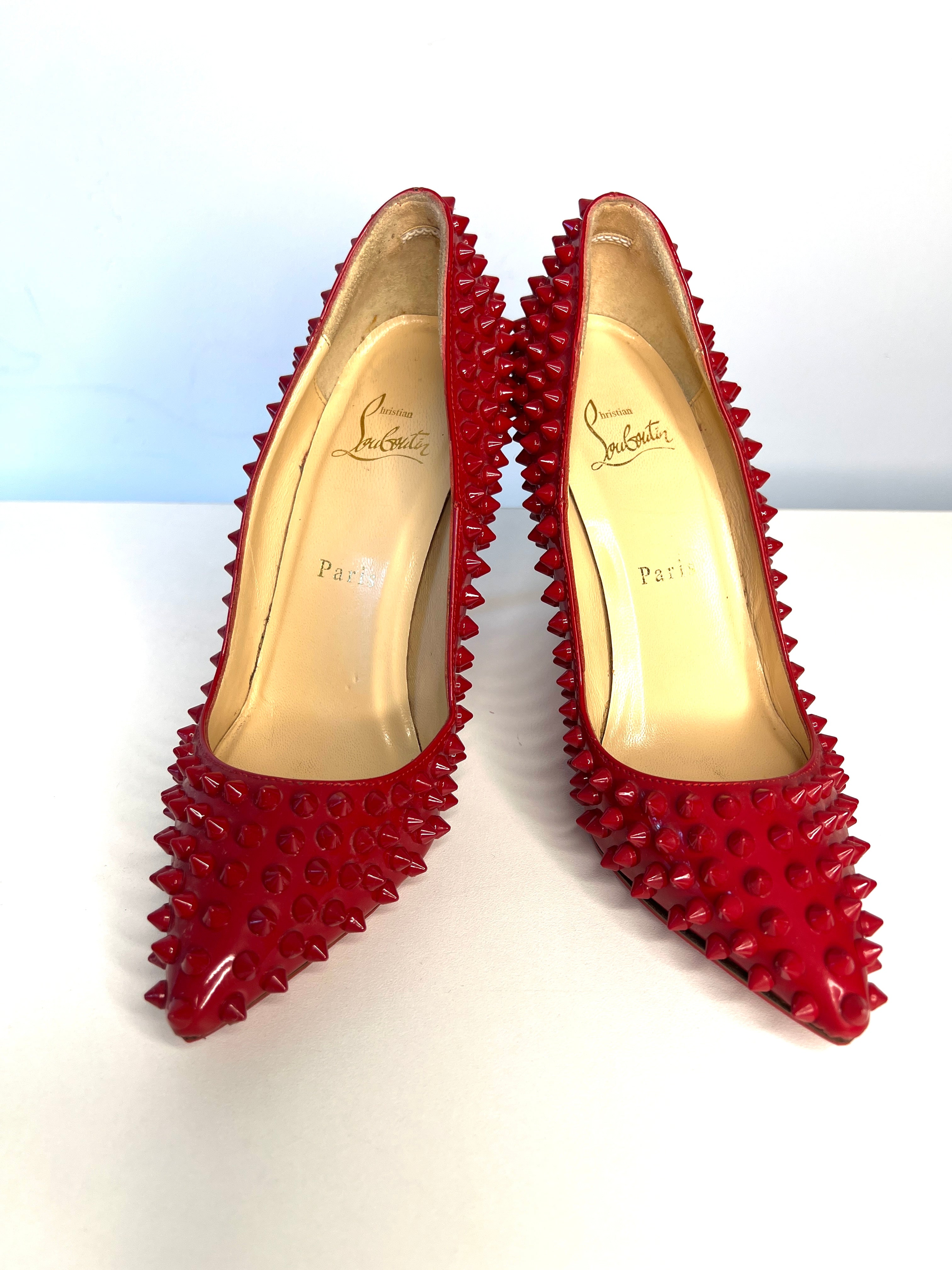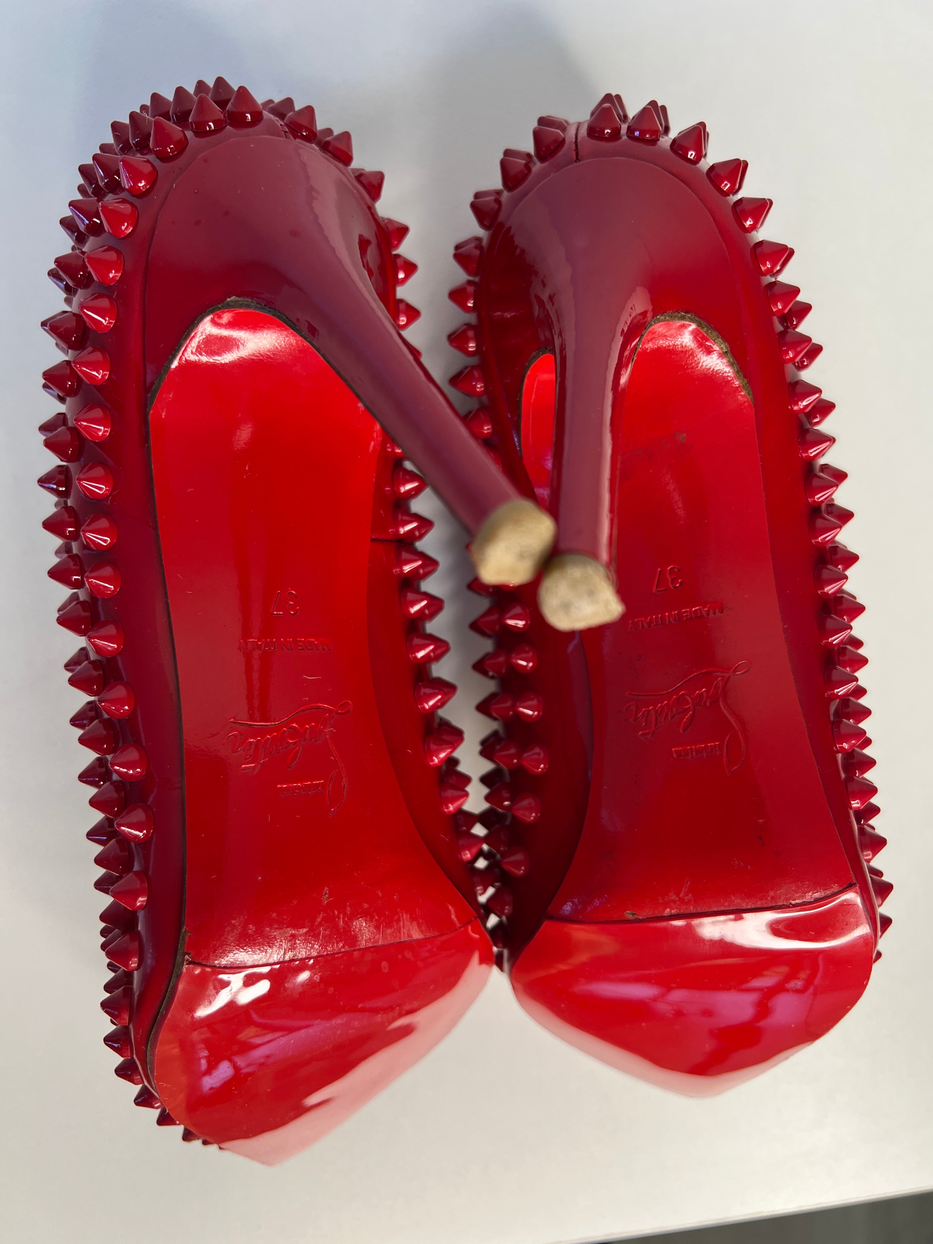 Christian Louboutin Pigalle Spike 100 Red Patent Heels 37 UK4