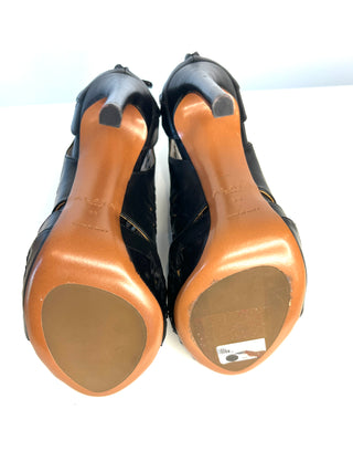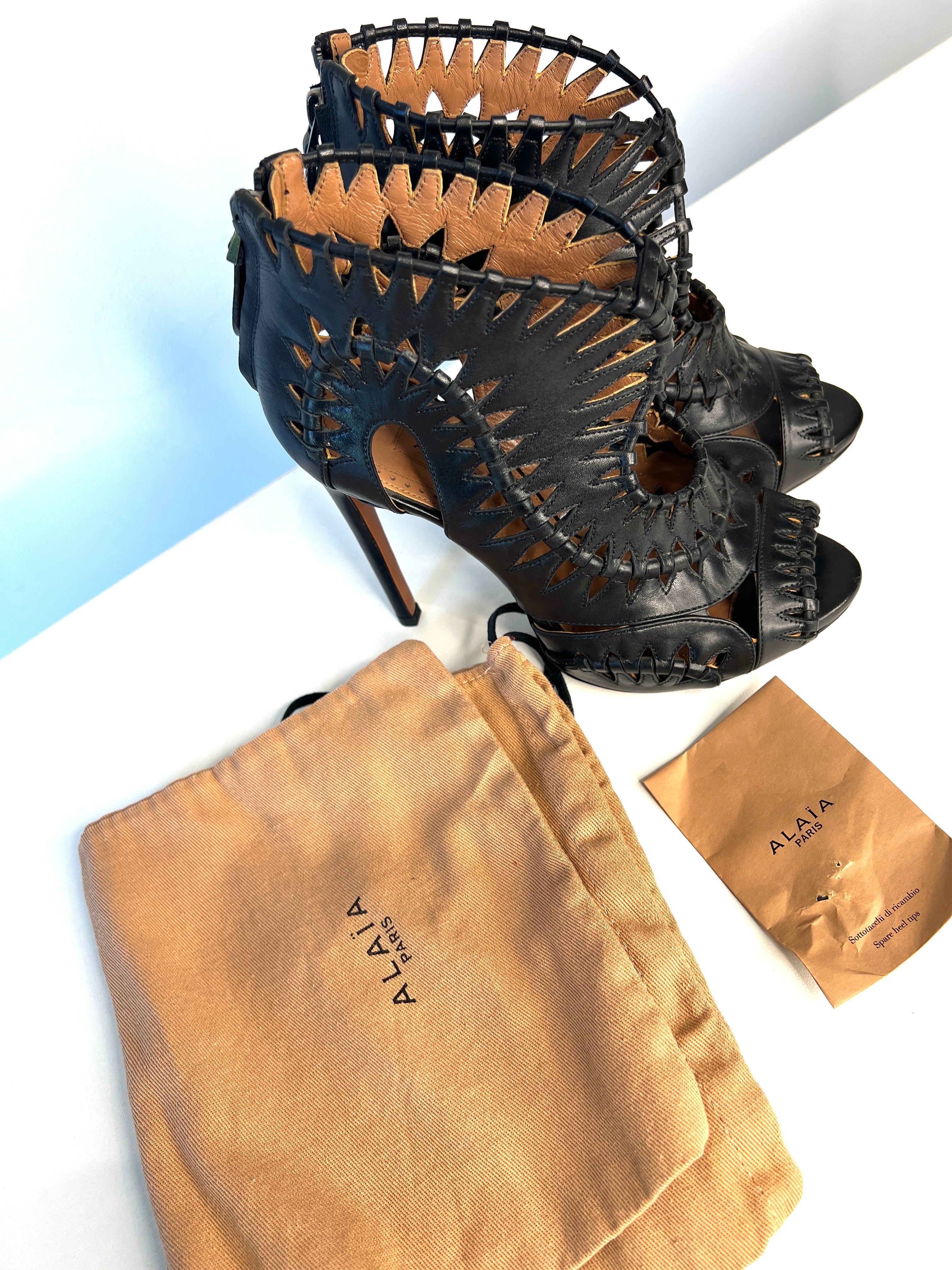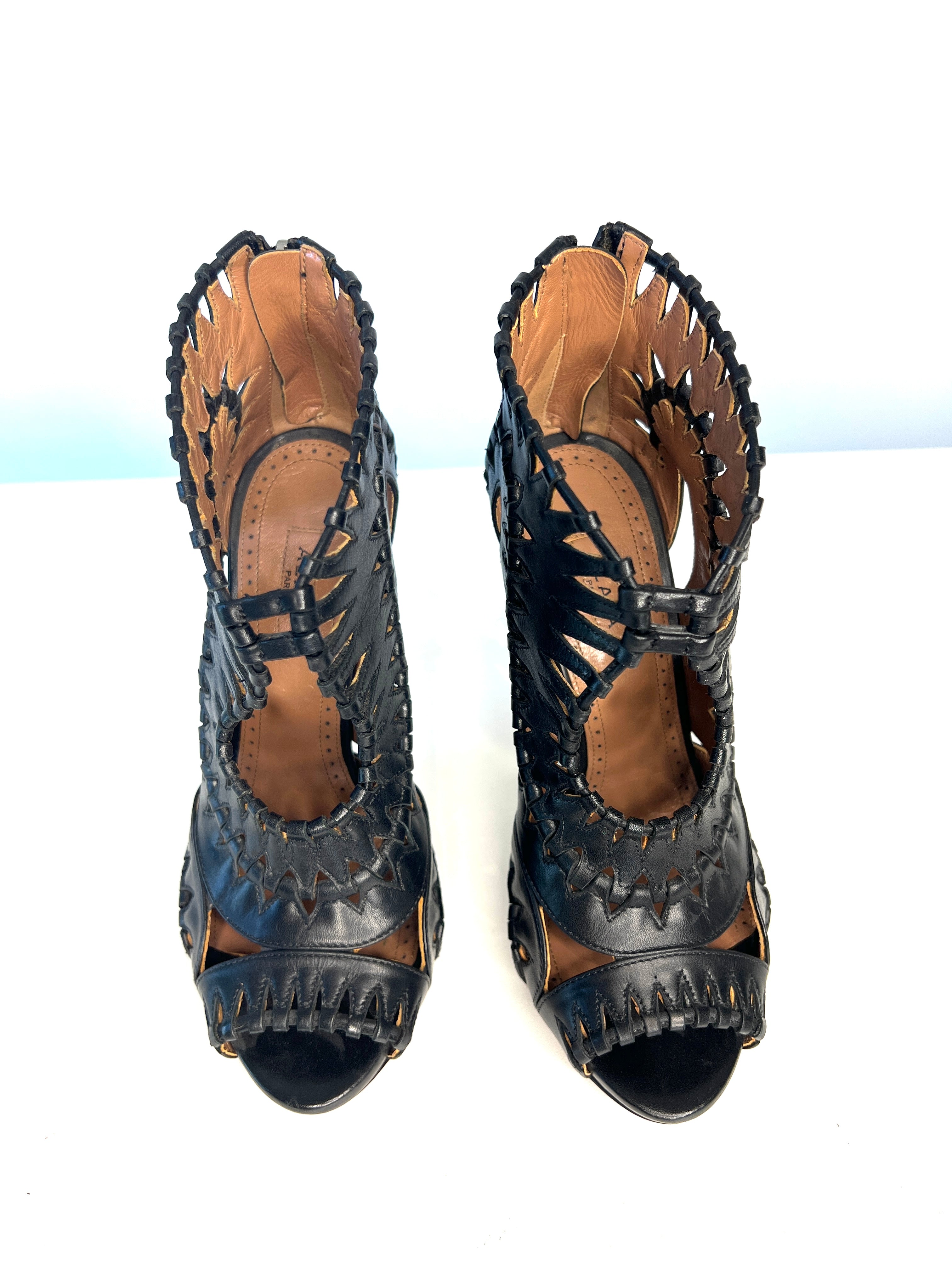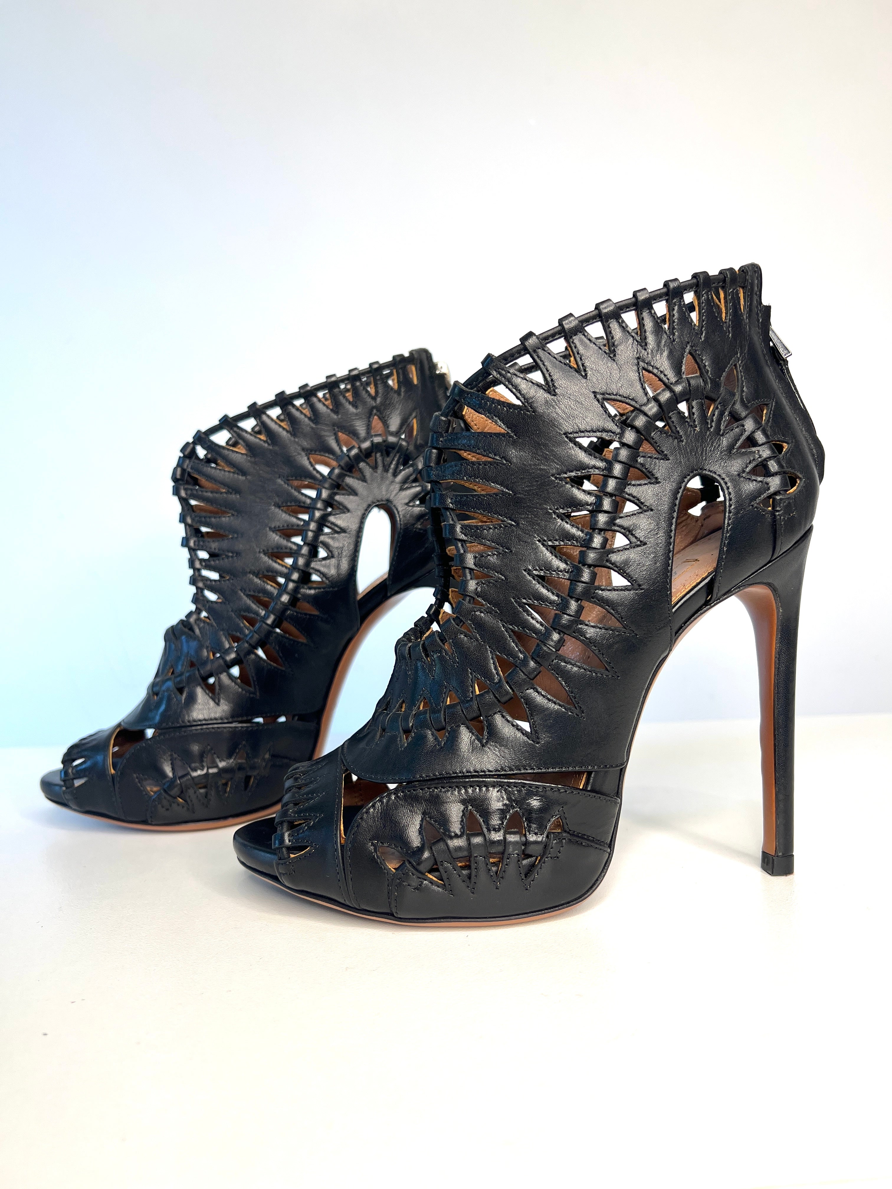 Alaia Black Leather Laser-Cut Peep-Toe Heels 35 UK2