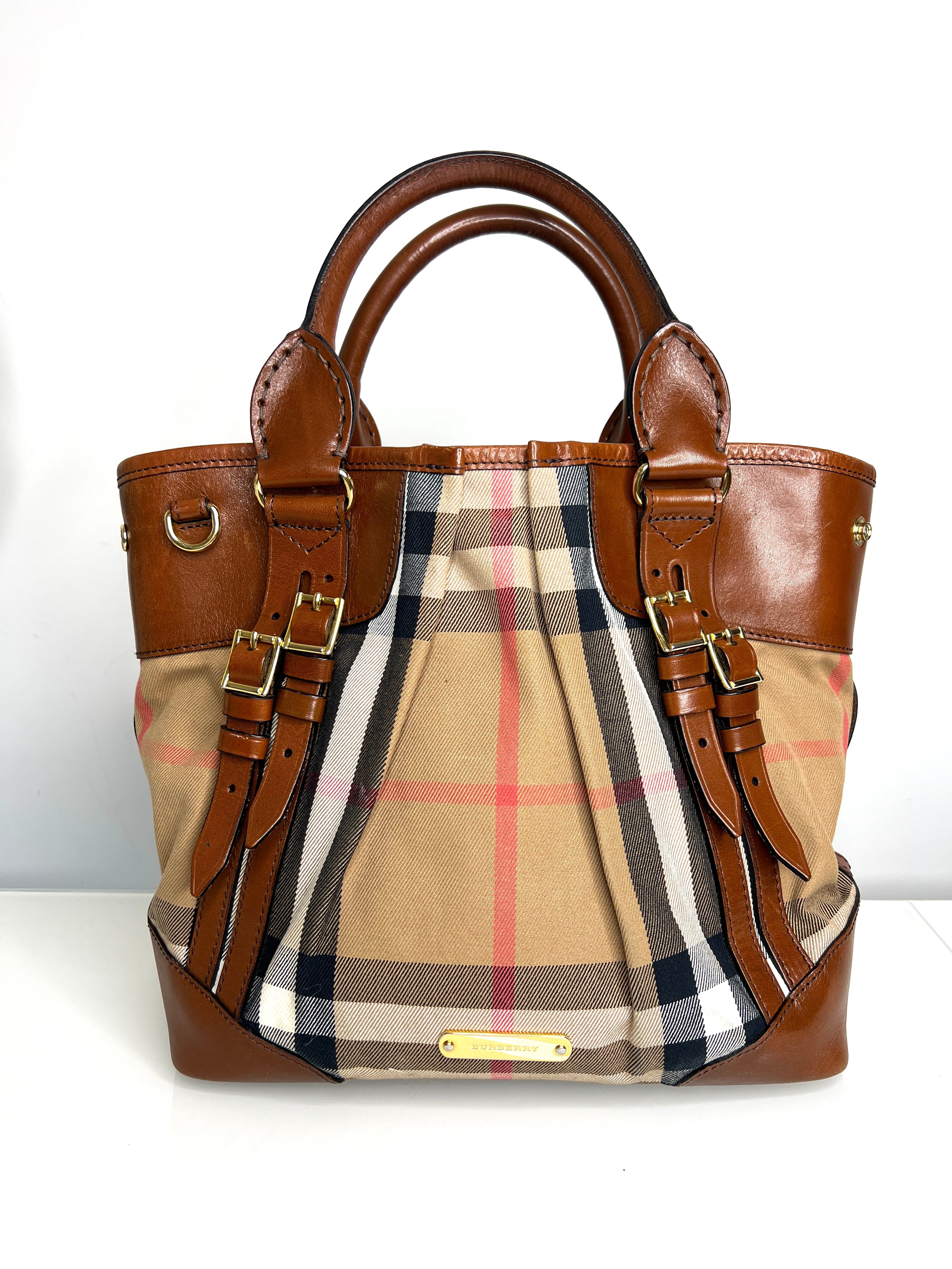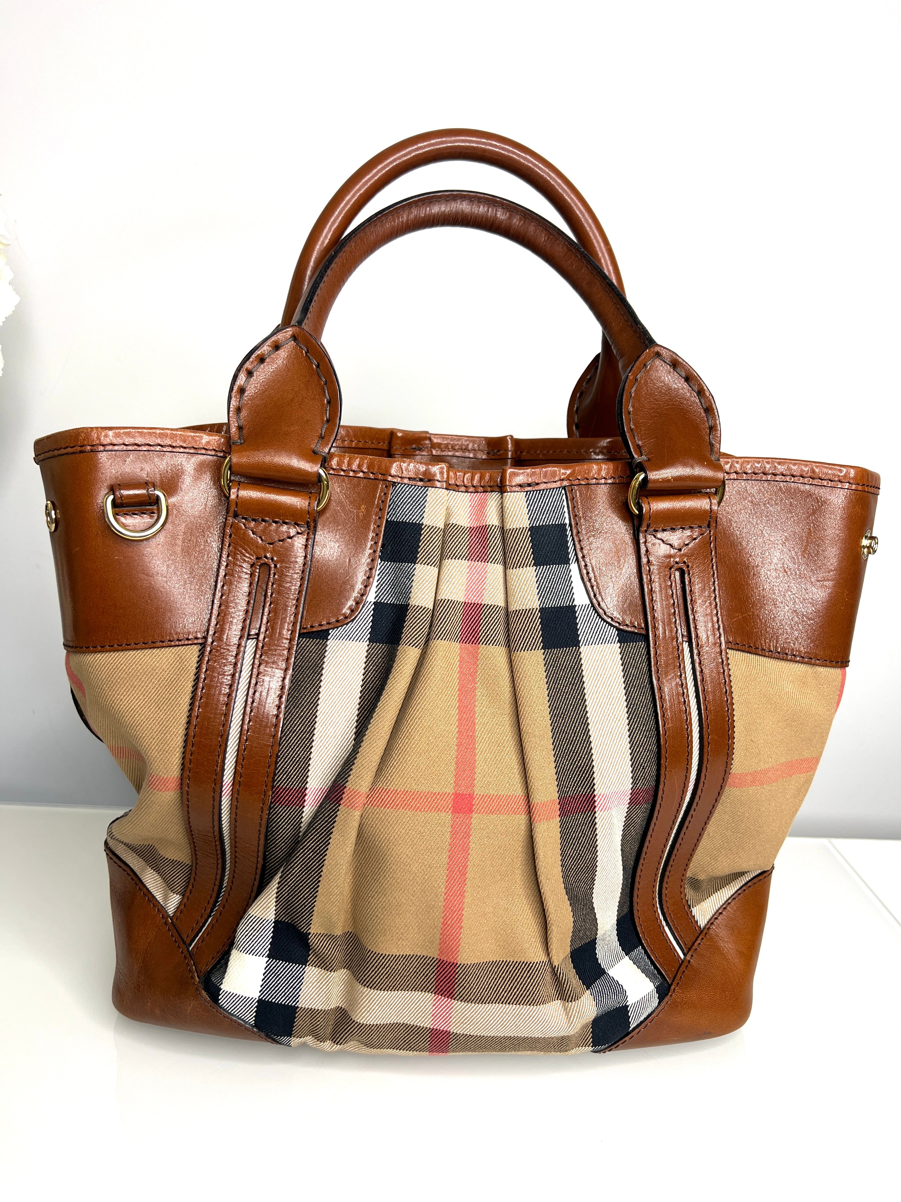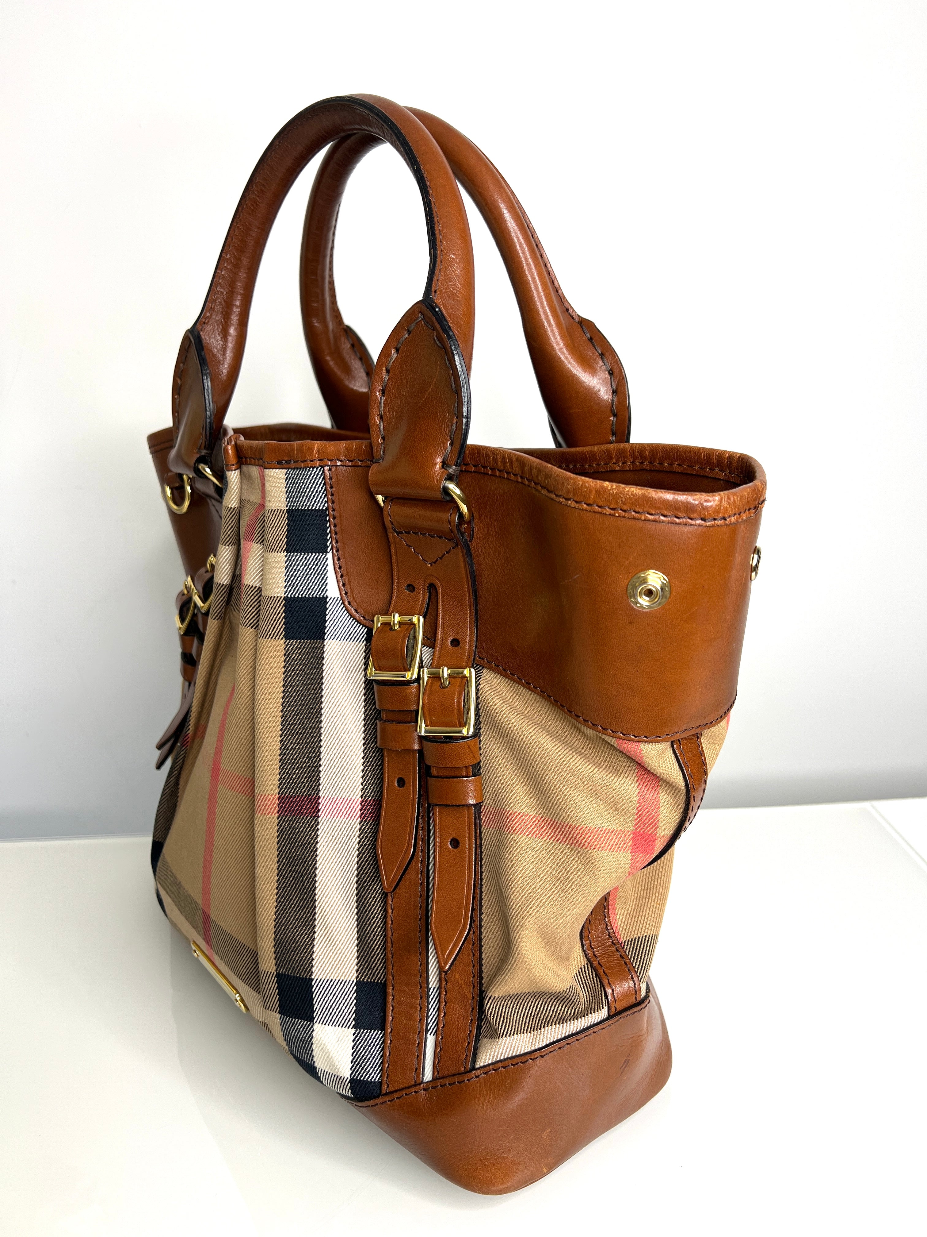 Burberry Preloved Canterbury Tote Classic Check and Brown Leather Handbag