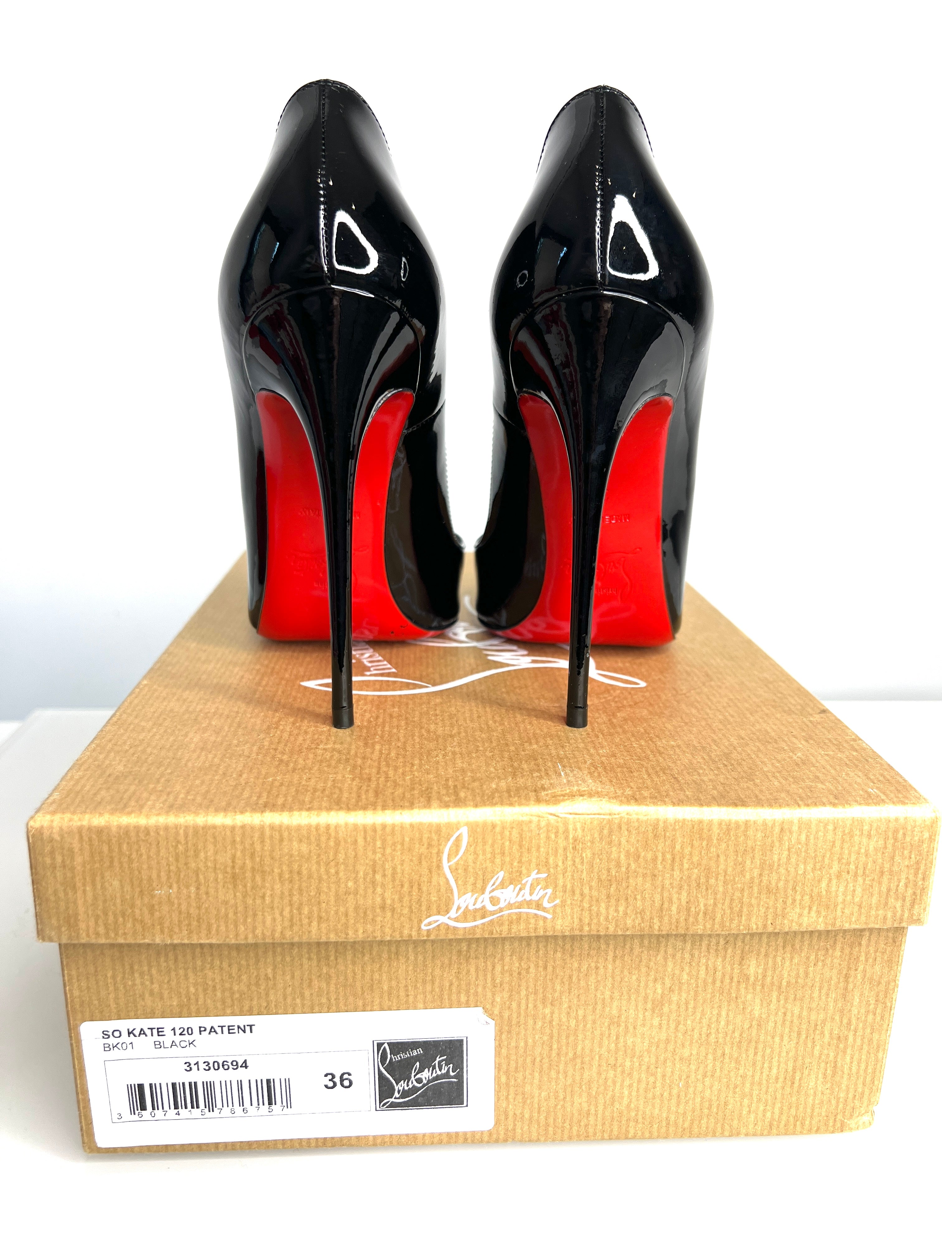 Christian Louboutin So Kate 120 Black Patent Heels 36 UK3