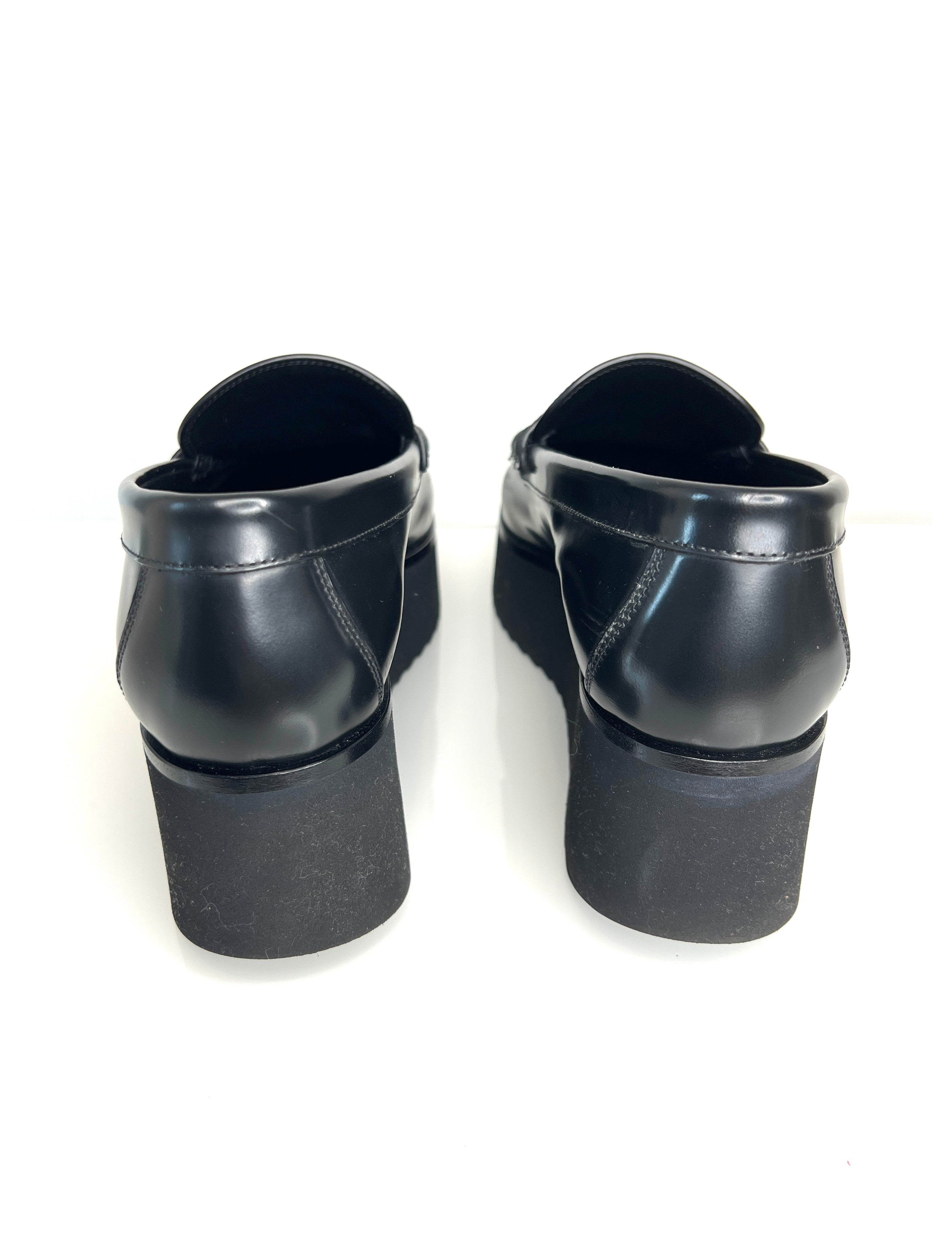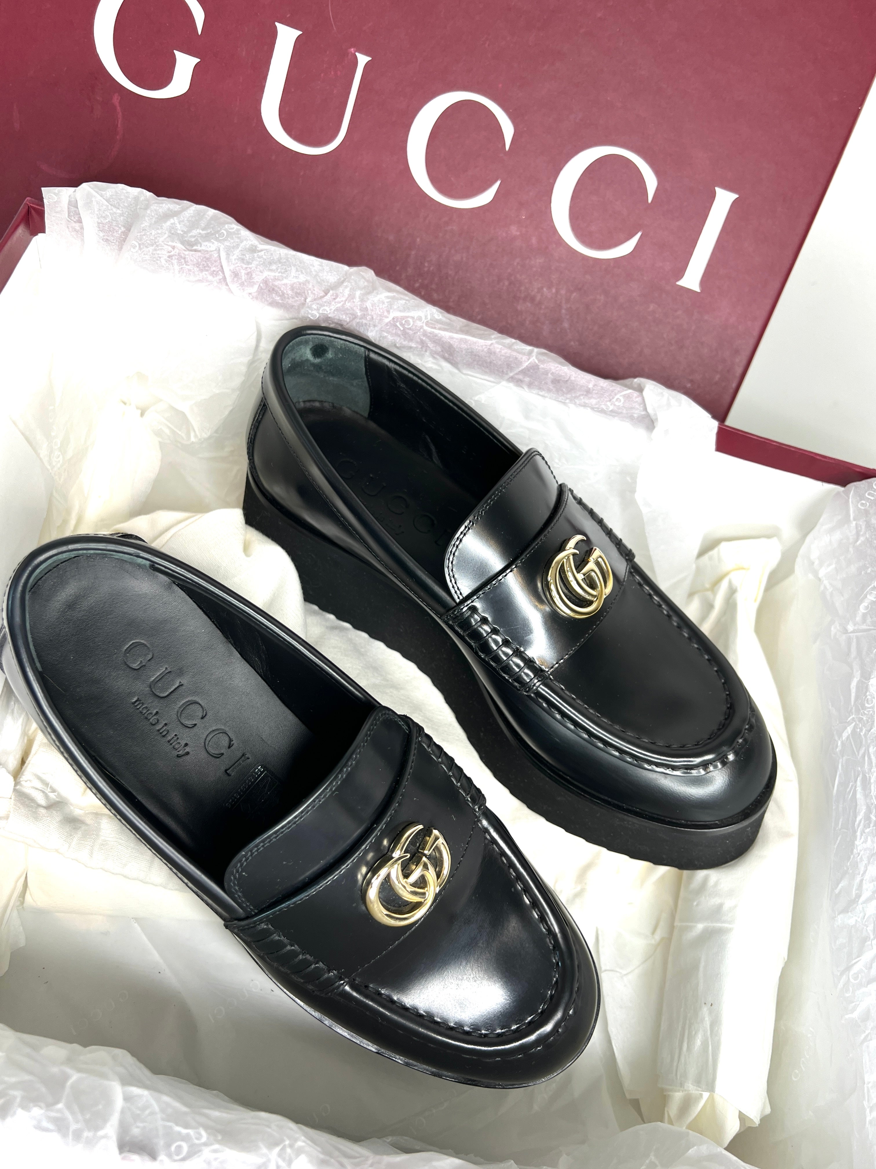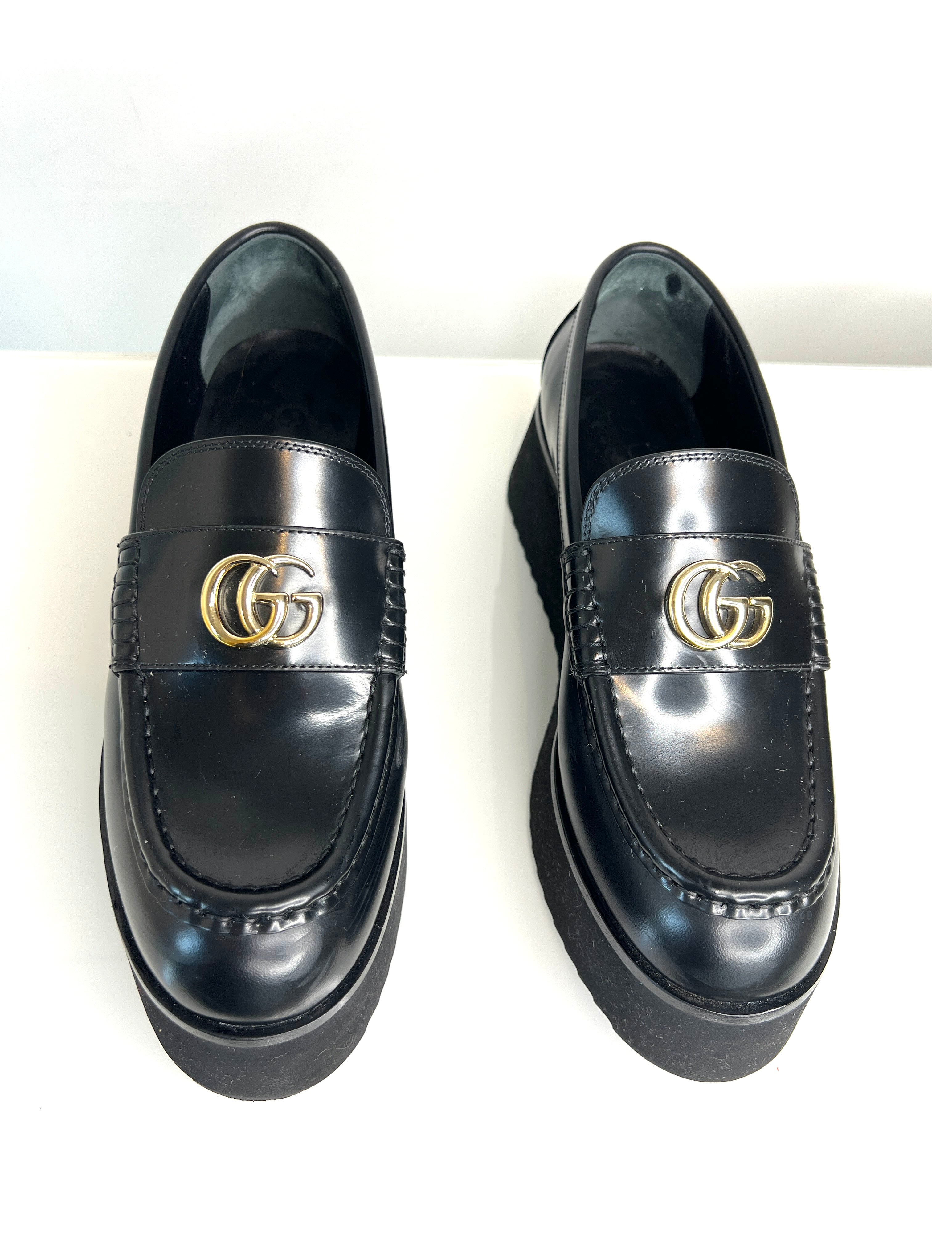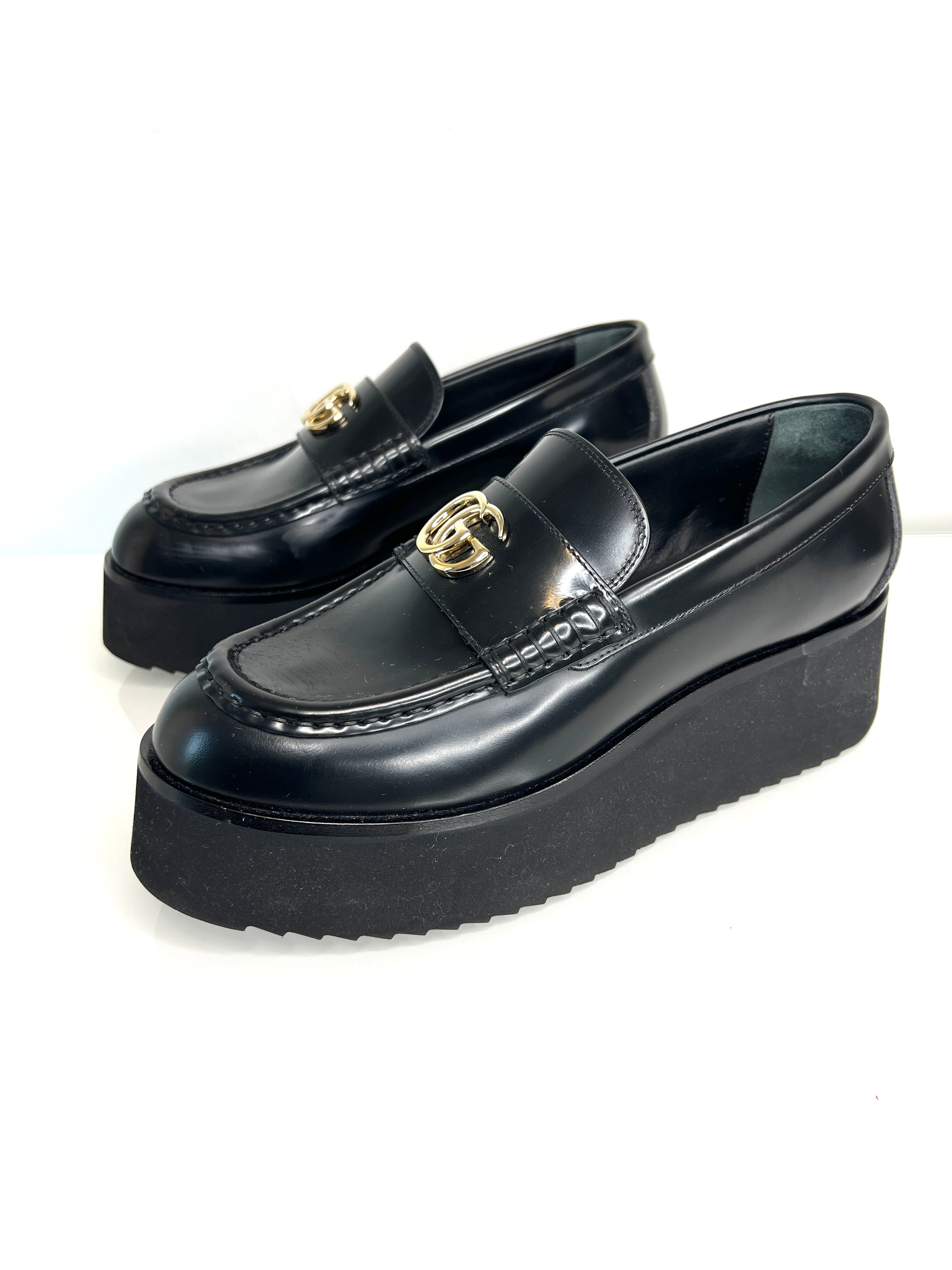 Gucci Pre-Loved Double G Creeper Platform Black Leather Loafers 37.5 UK4.5