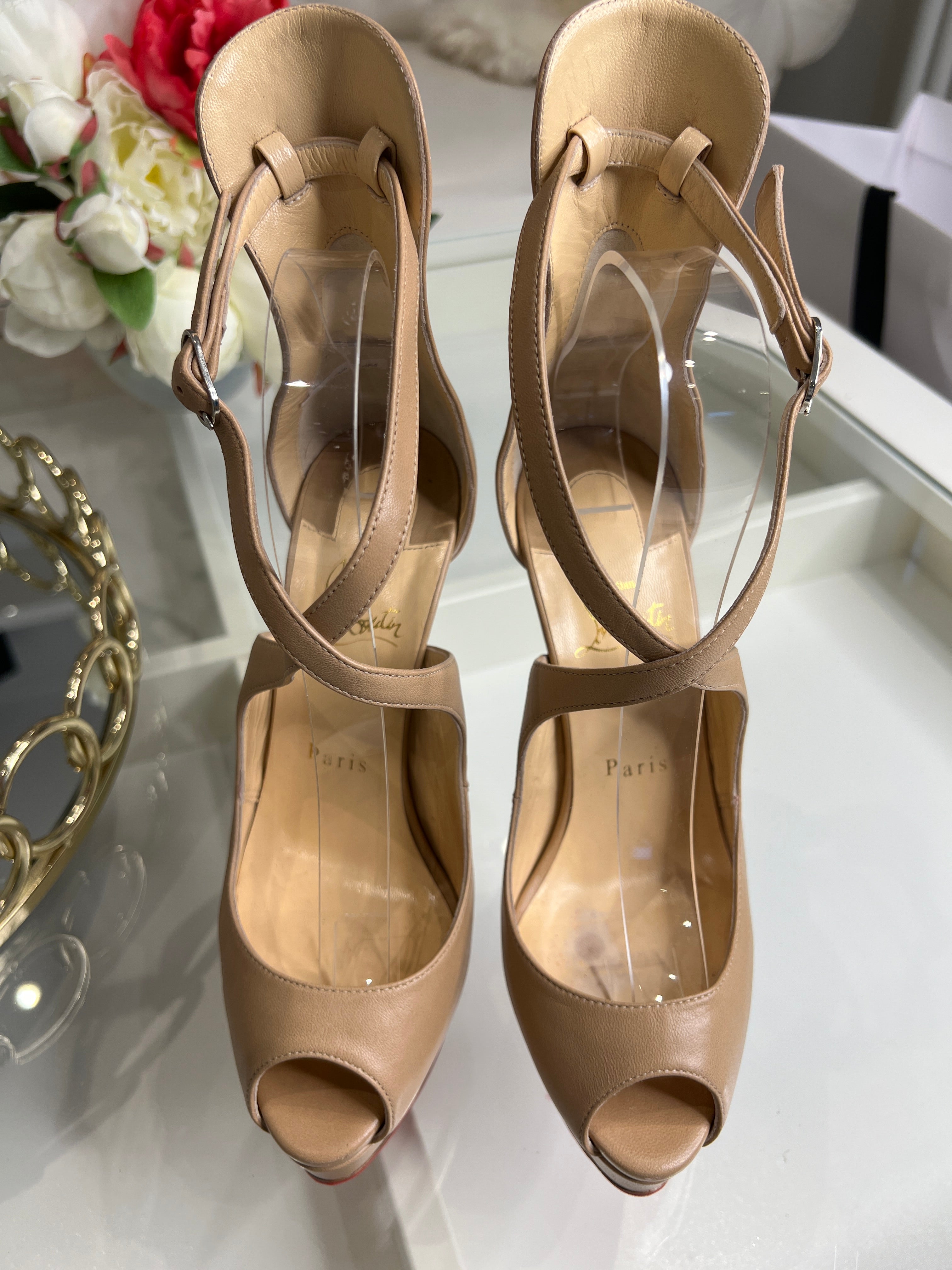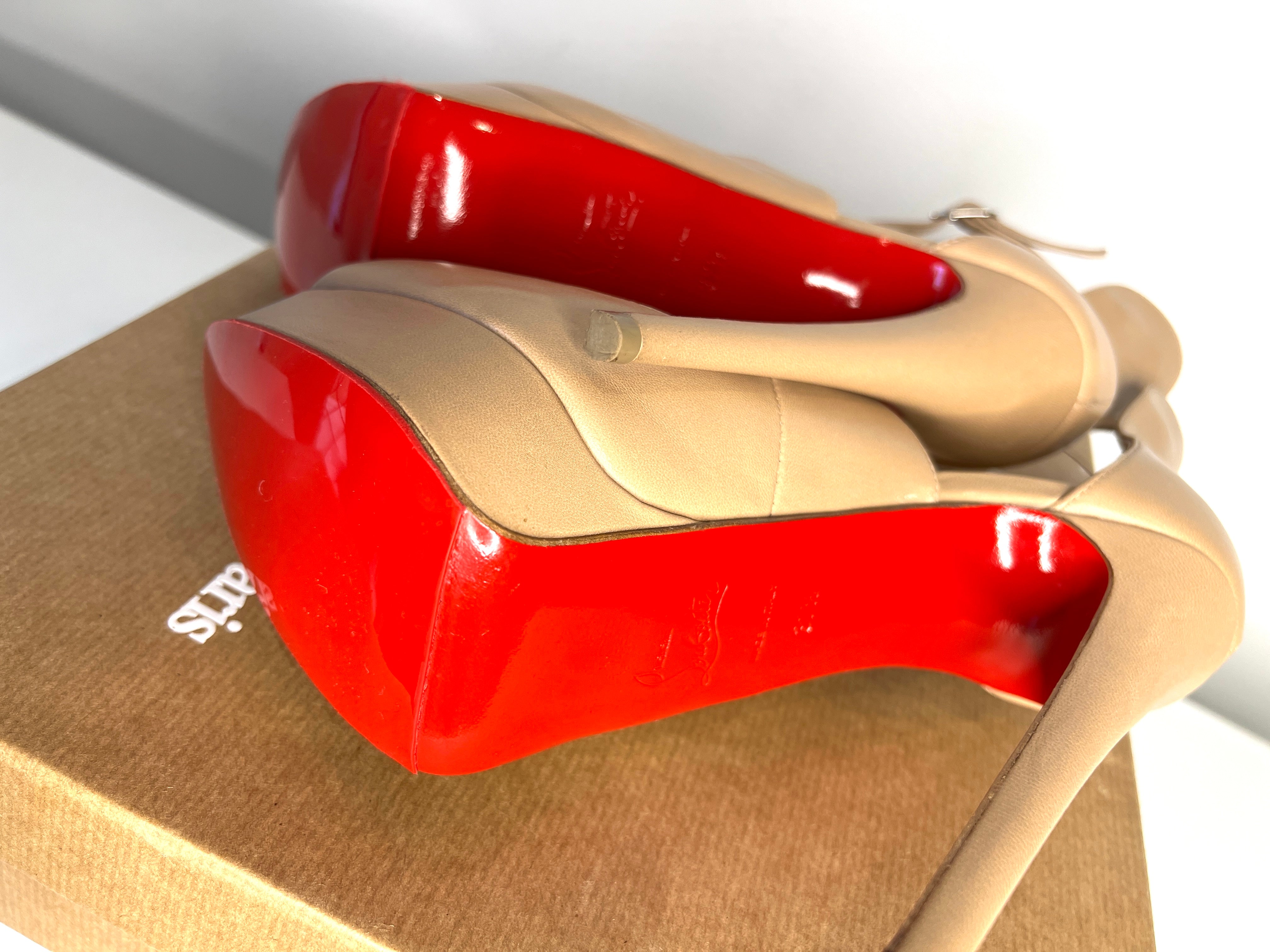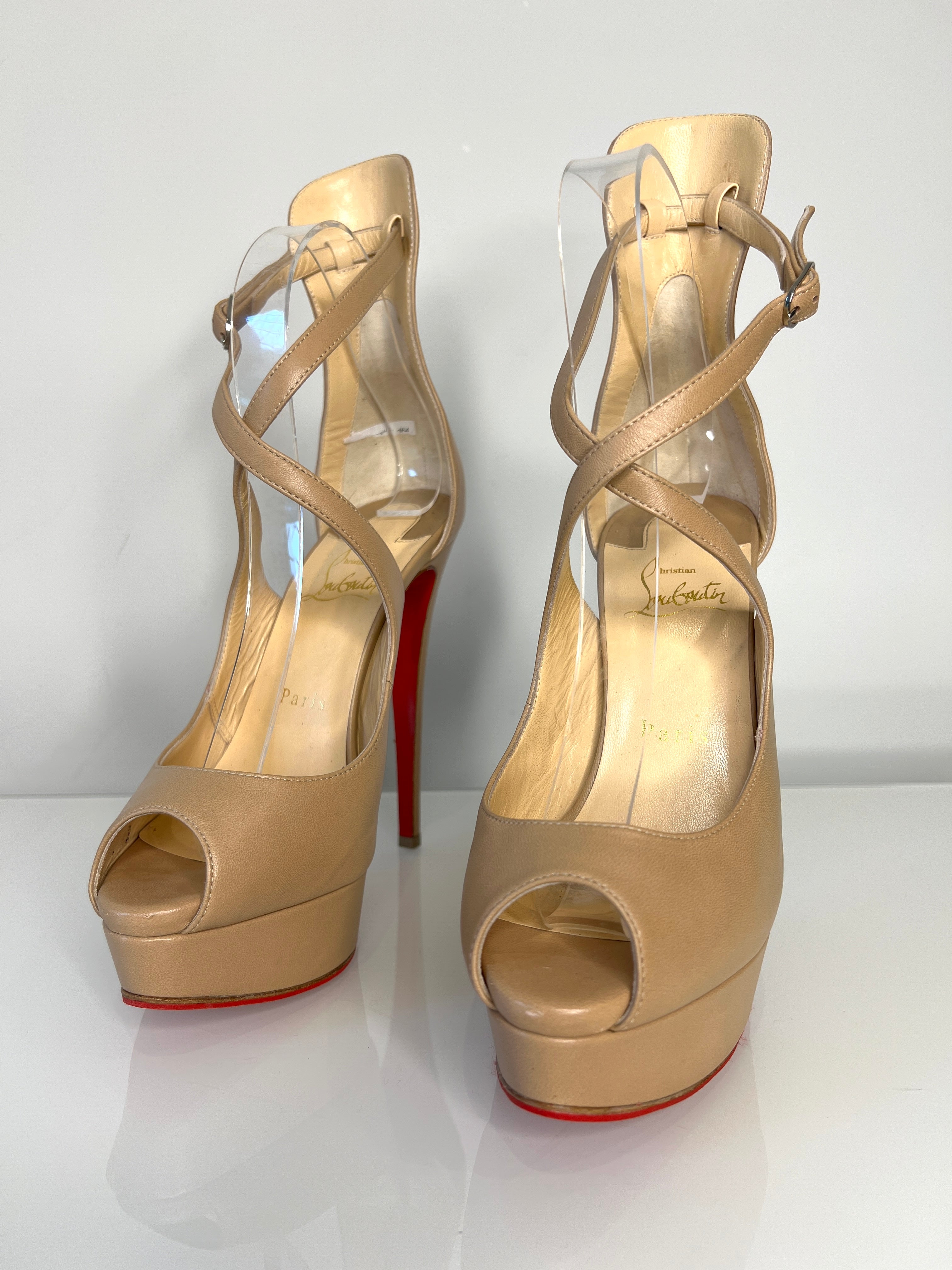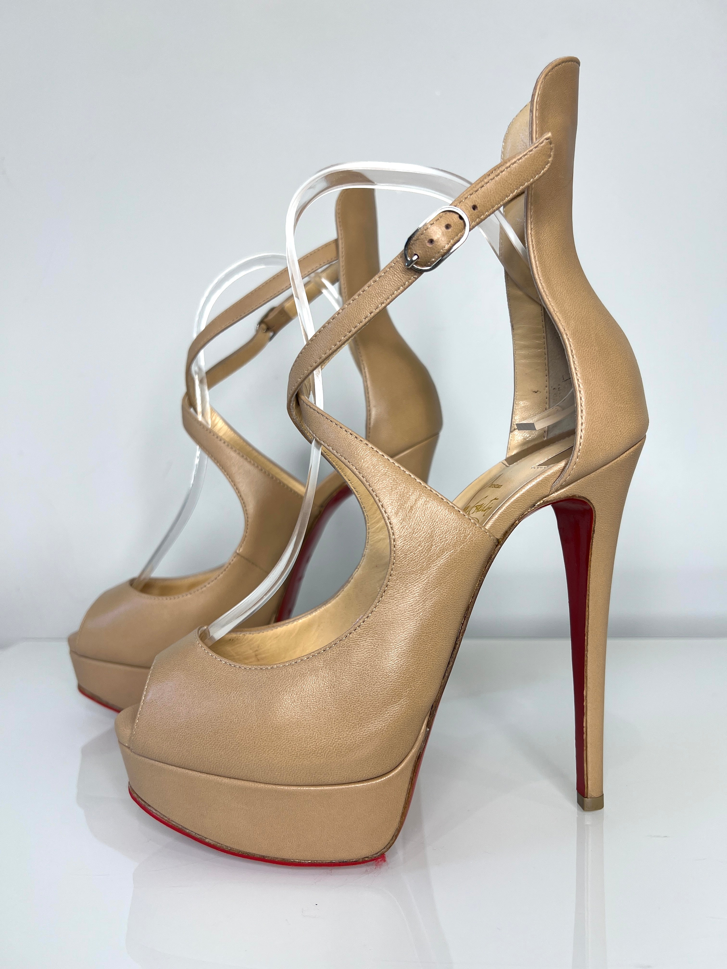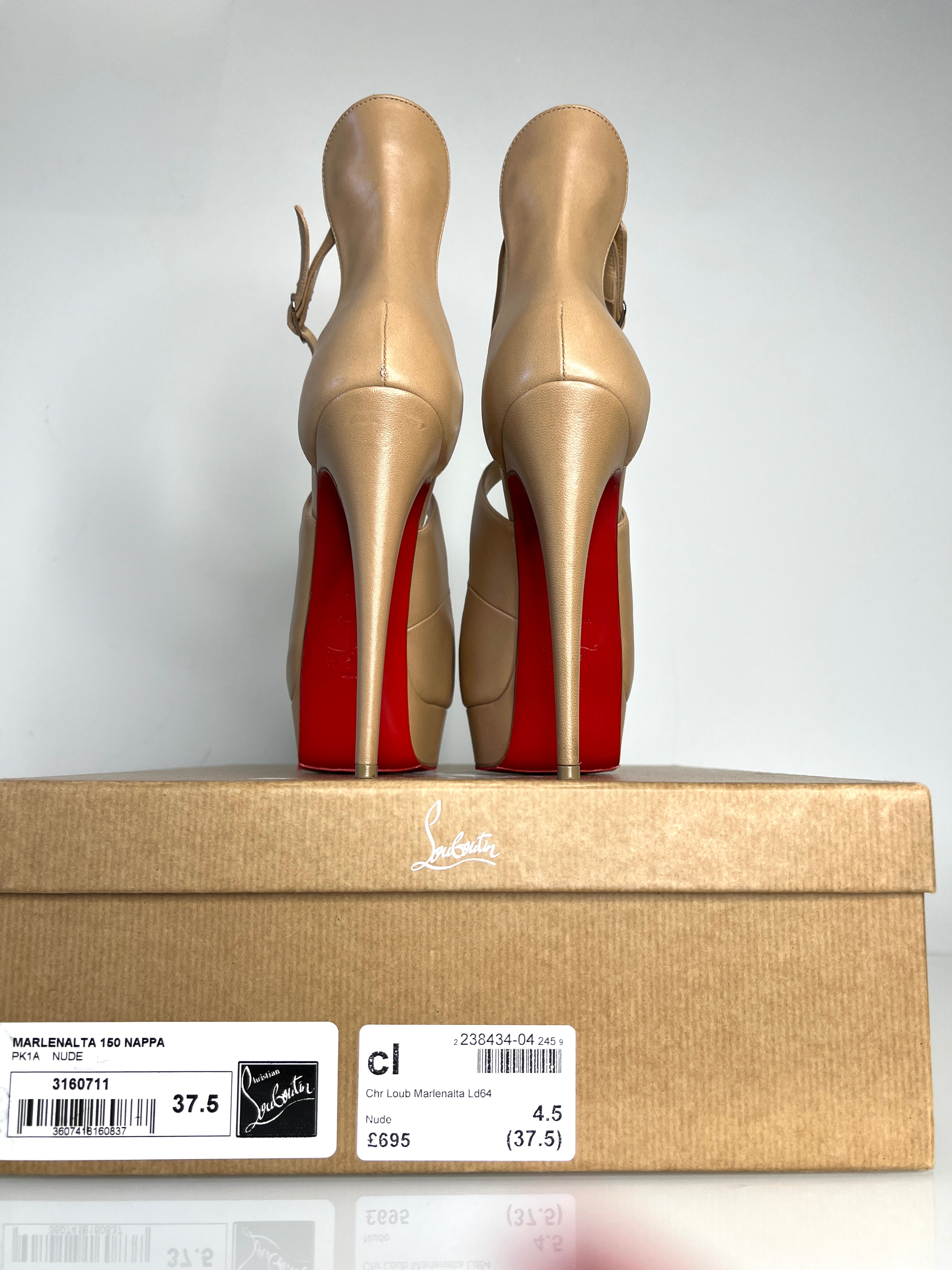 Christian Louboutin Preloved Marlenalta 150 Nude Leather Platform Heels 37.5 UK4.5