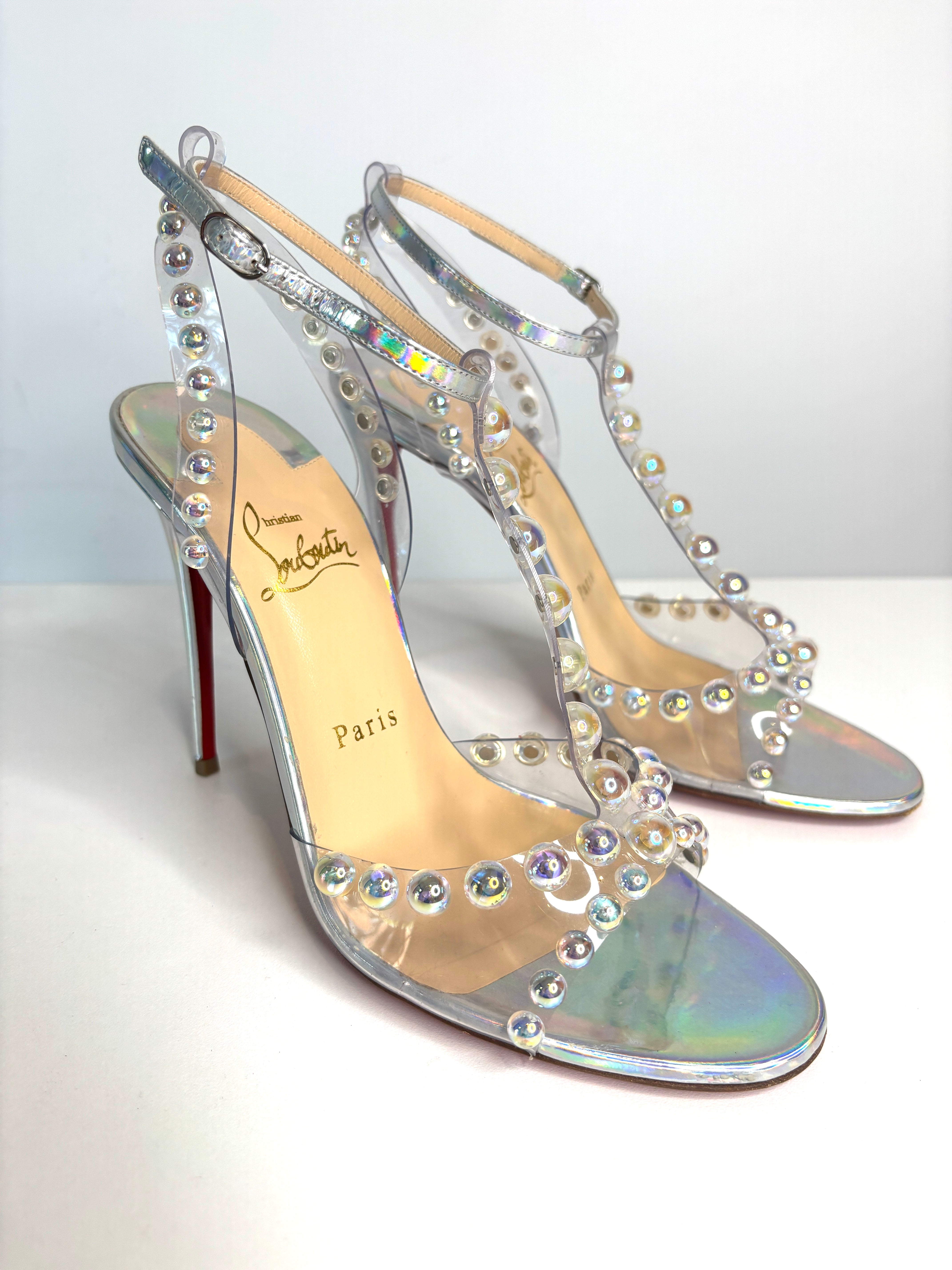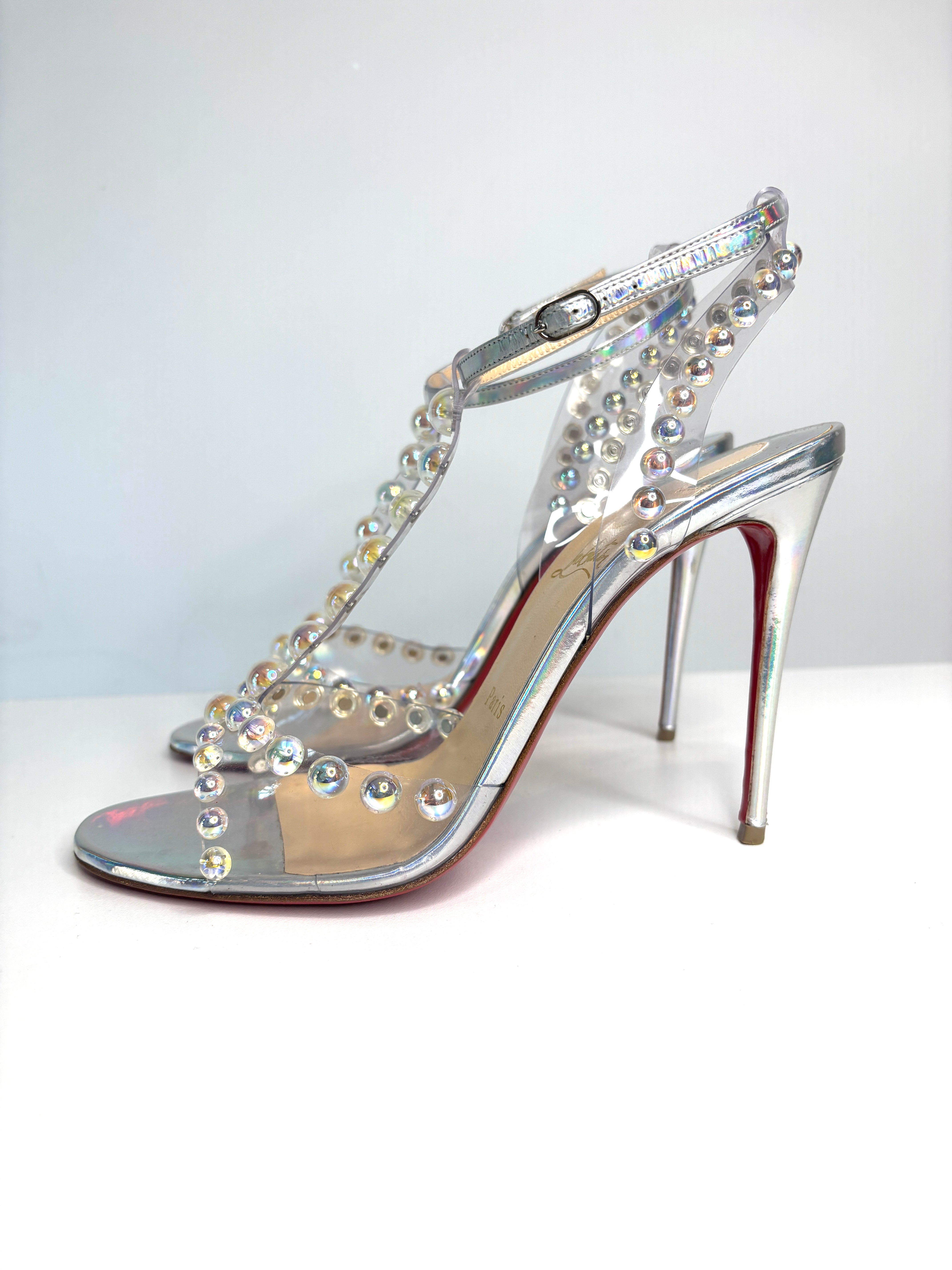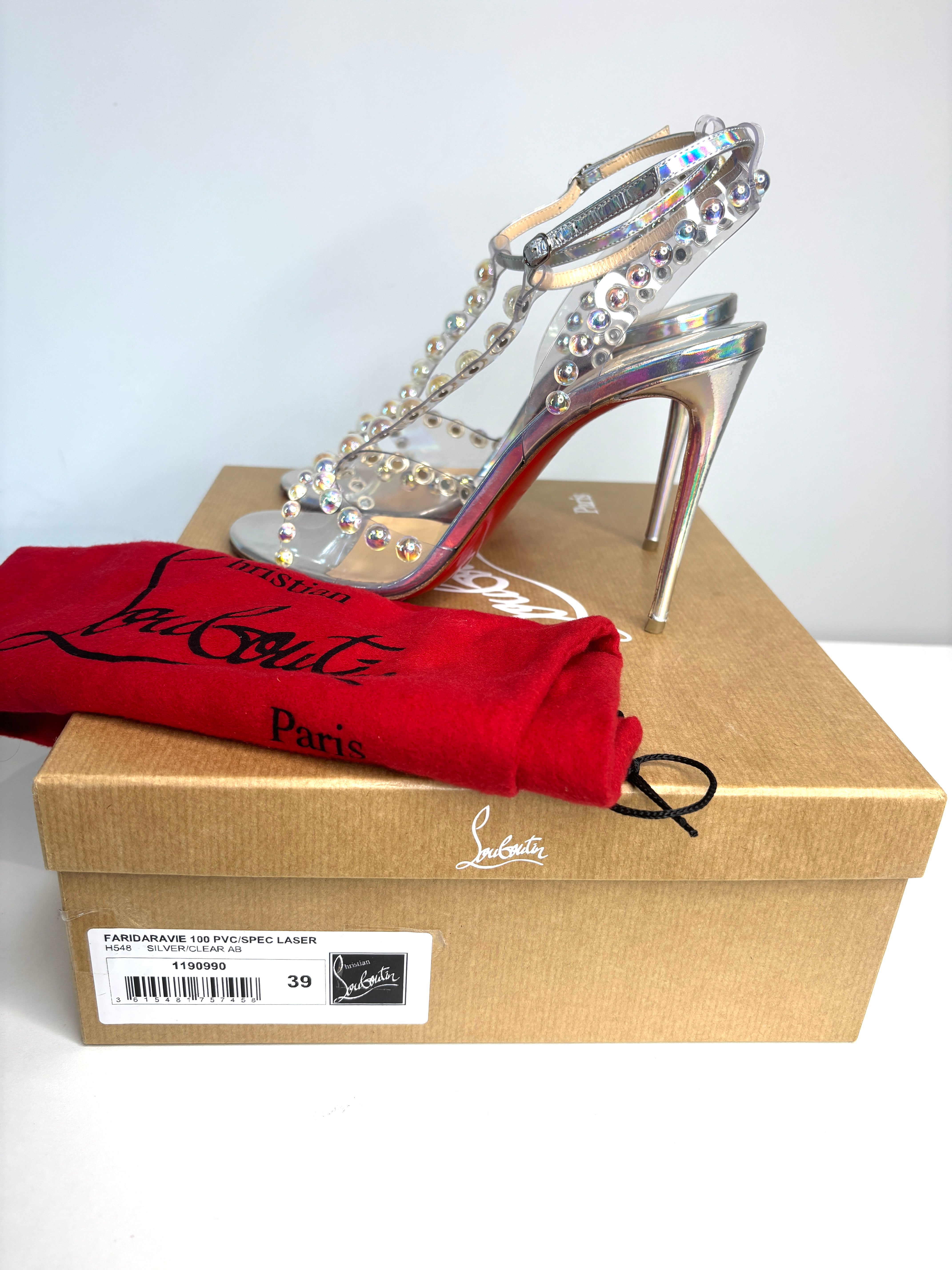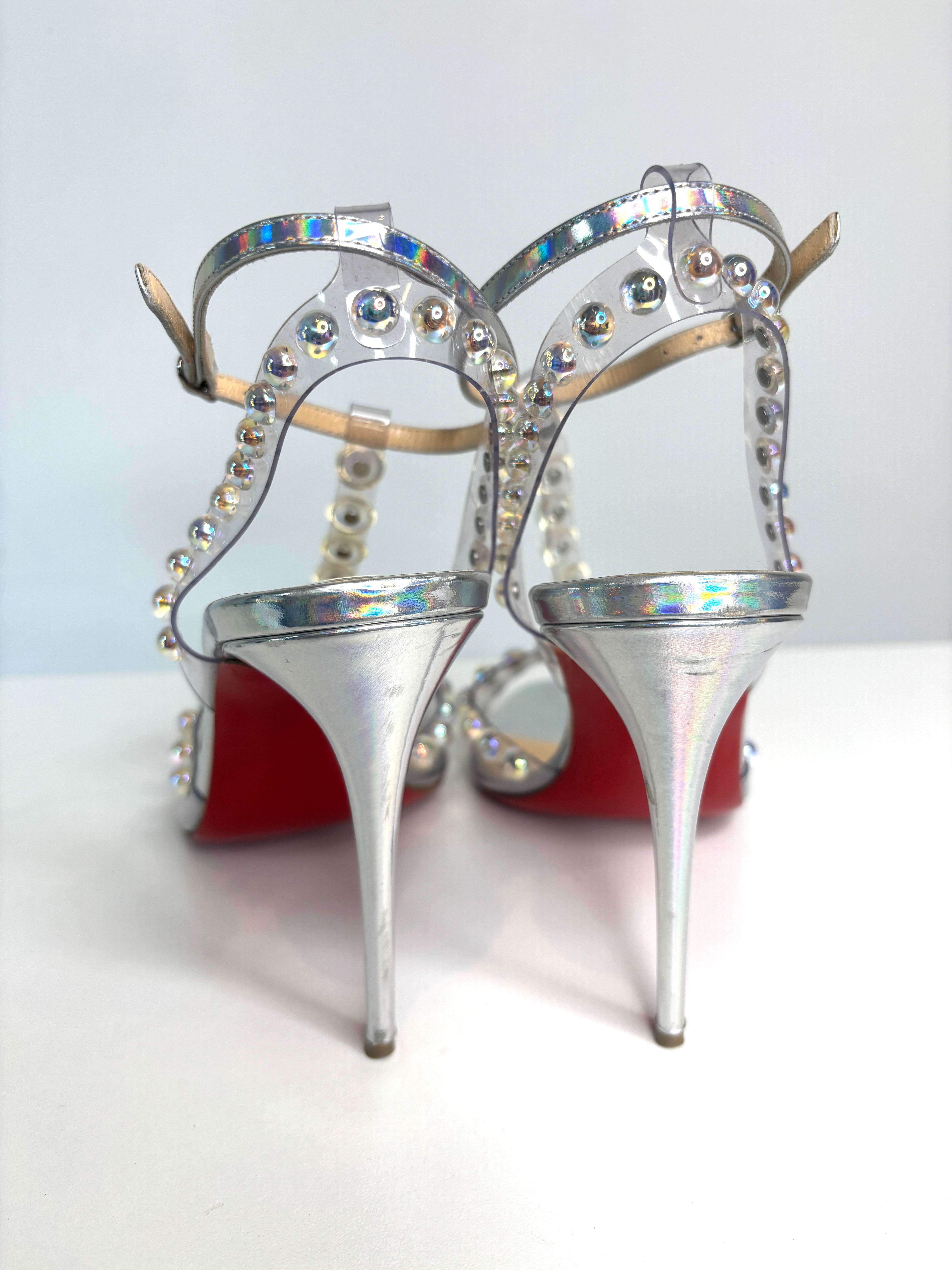 Christian Louboutin Faridaravie 100 Silver Sandals 39 UK6