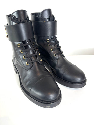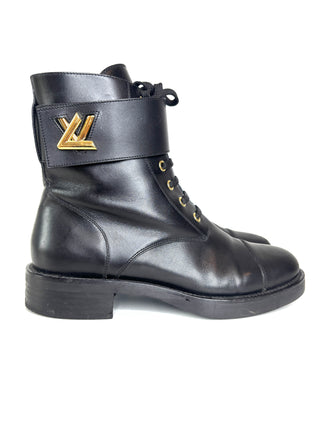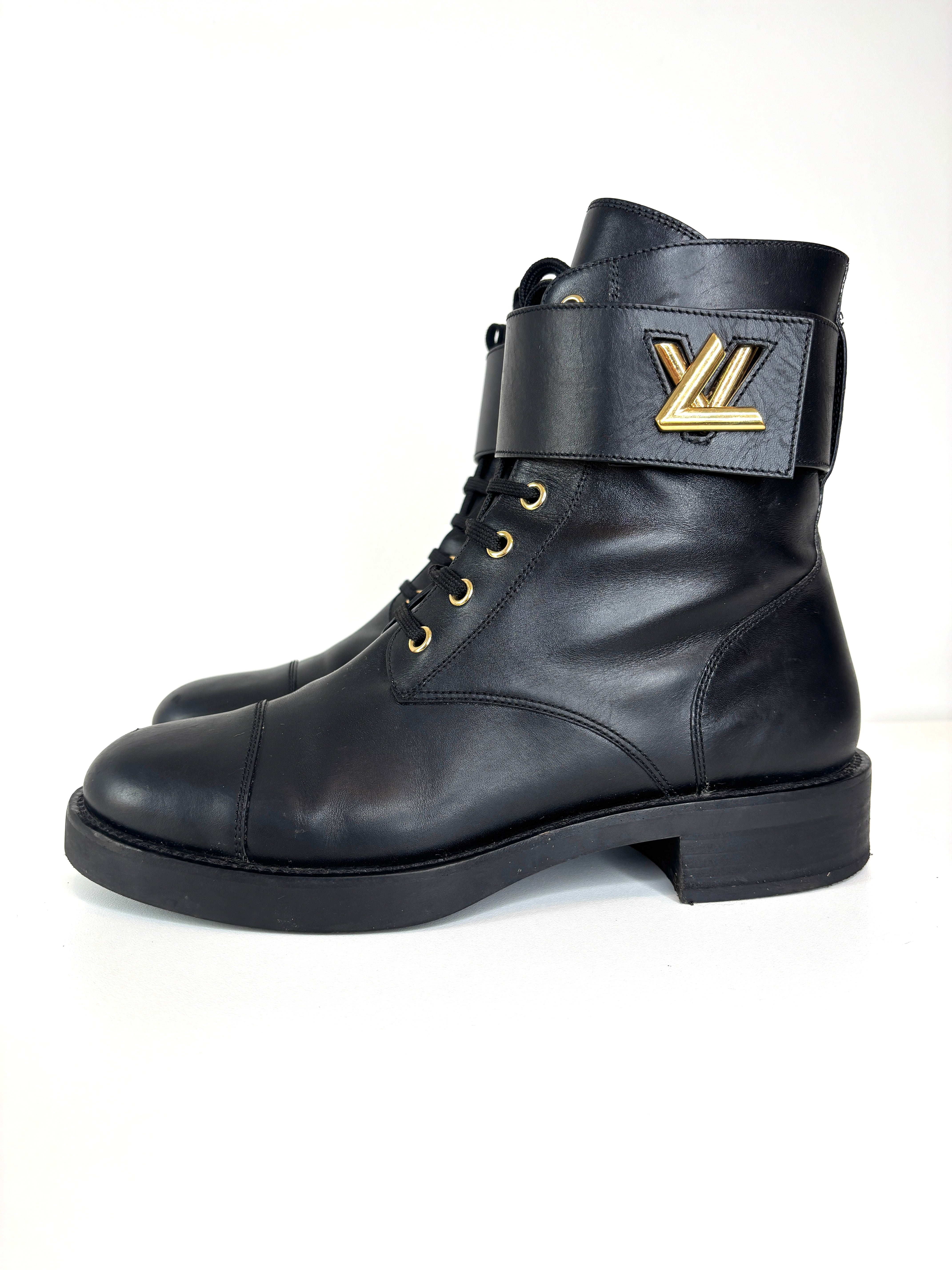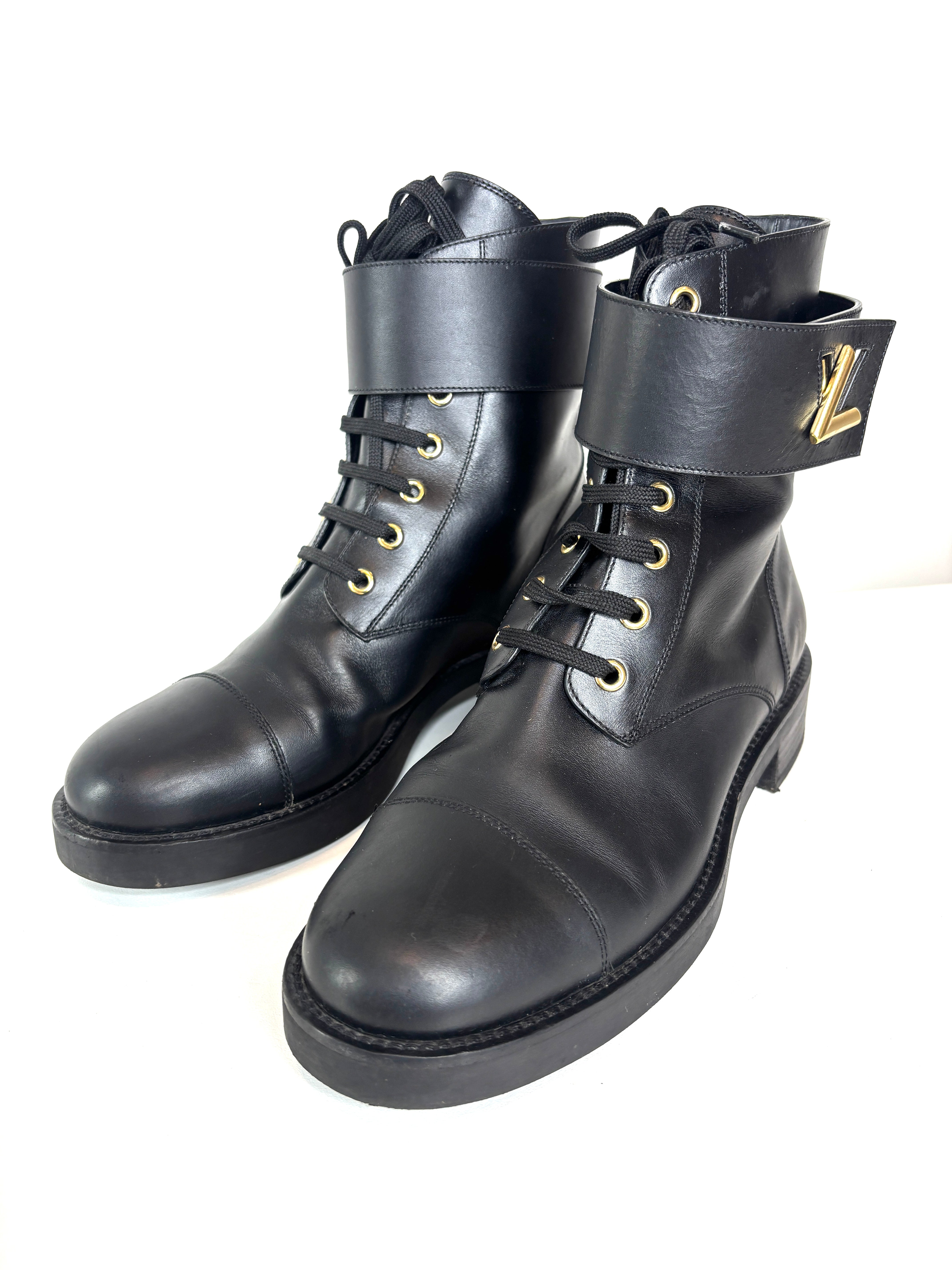 Louis Vuitton Wonderland Flat Ranger Black Leather Boots 40 UK7
