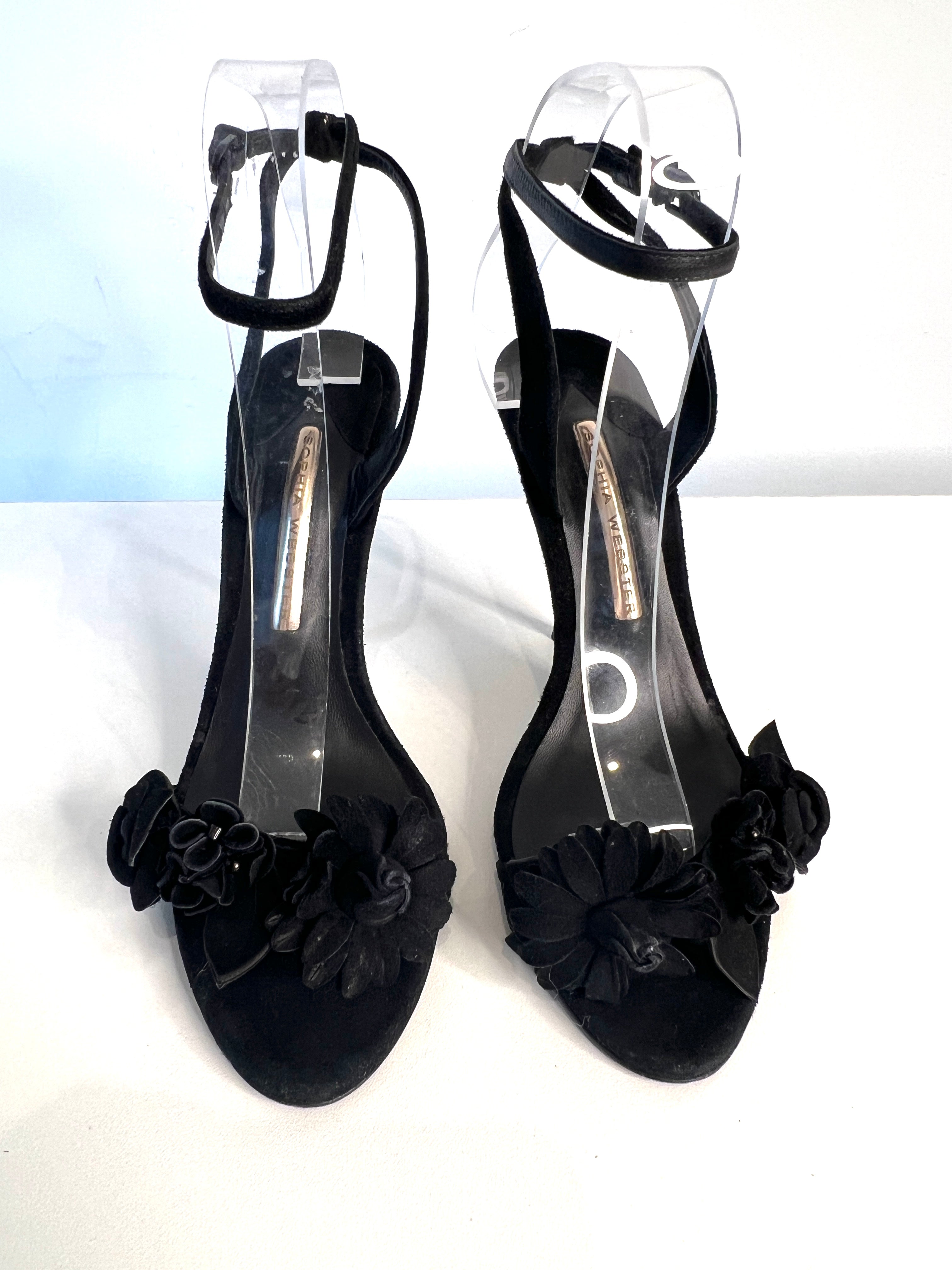 Sophia Webster Lilico Black Suede Heels Sandals 37.5 UK4.5