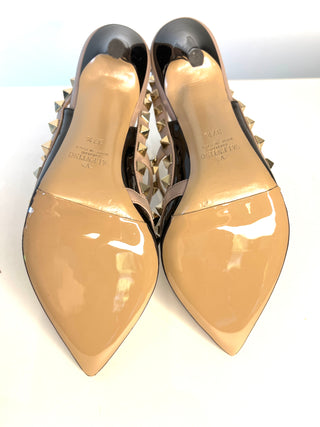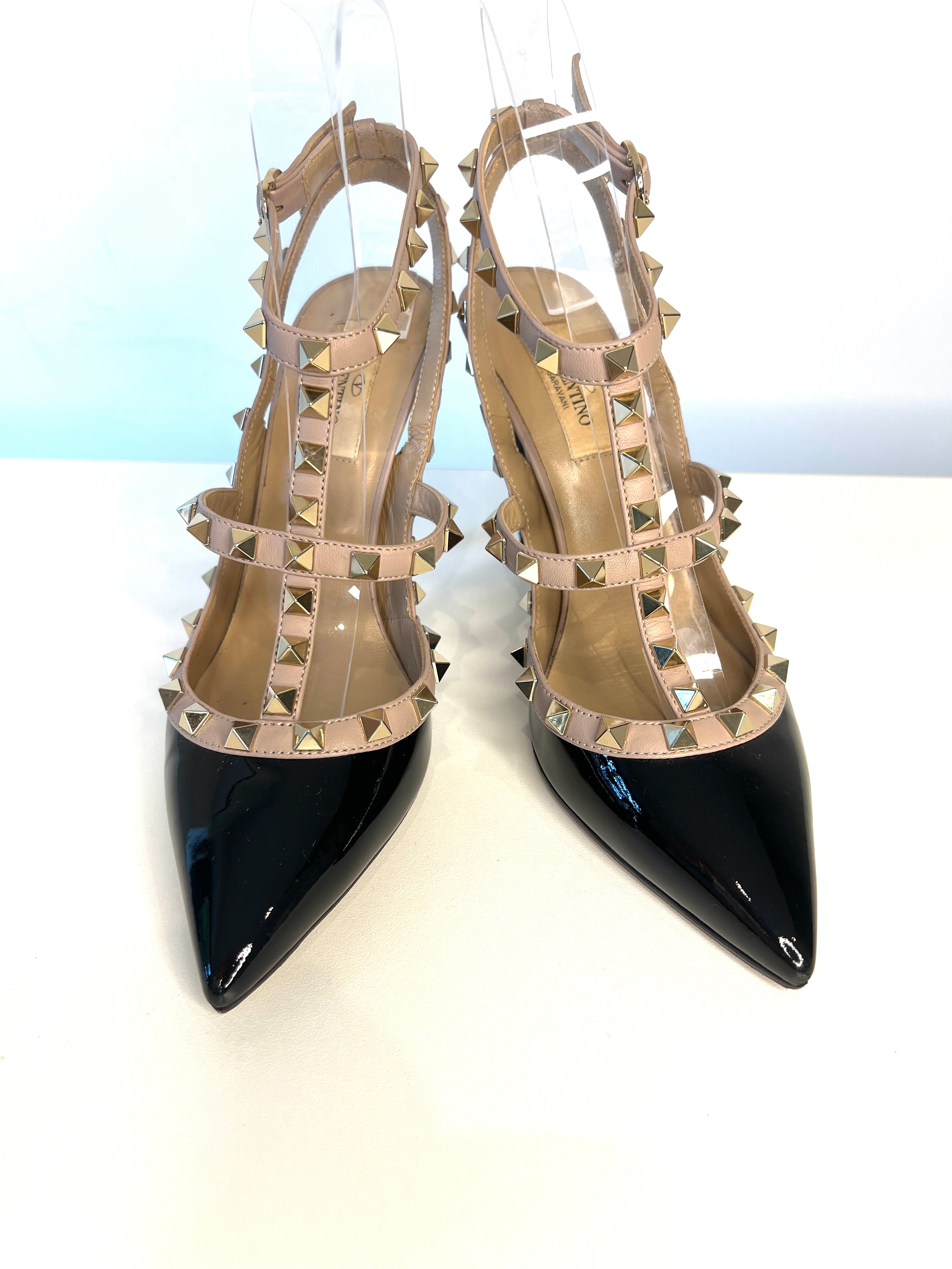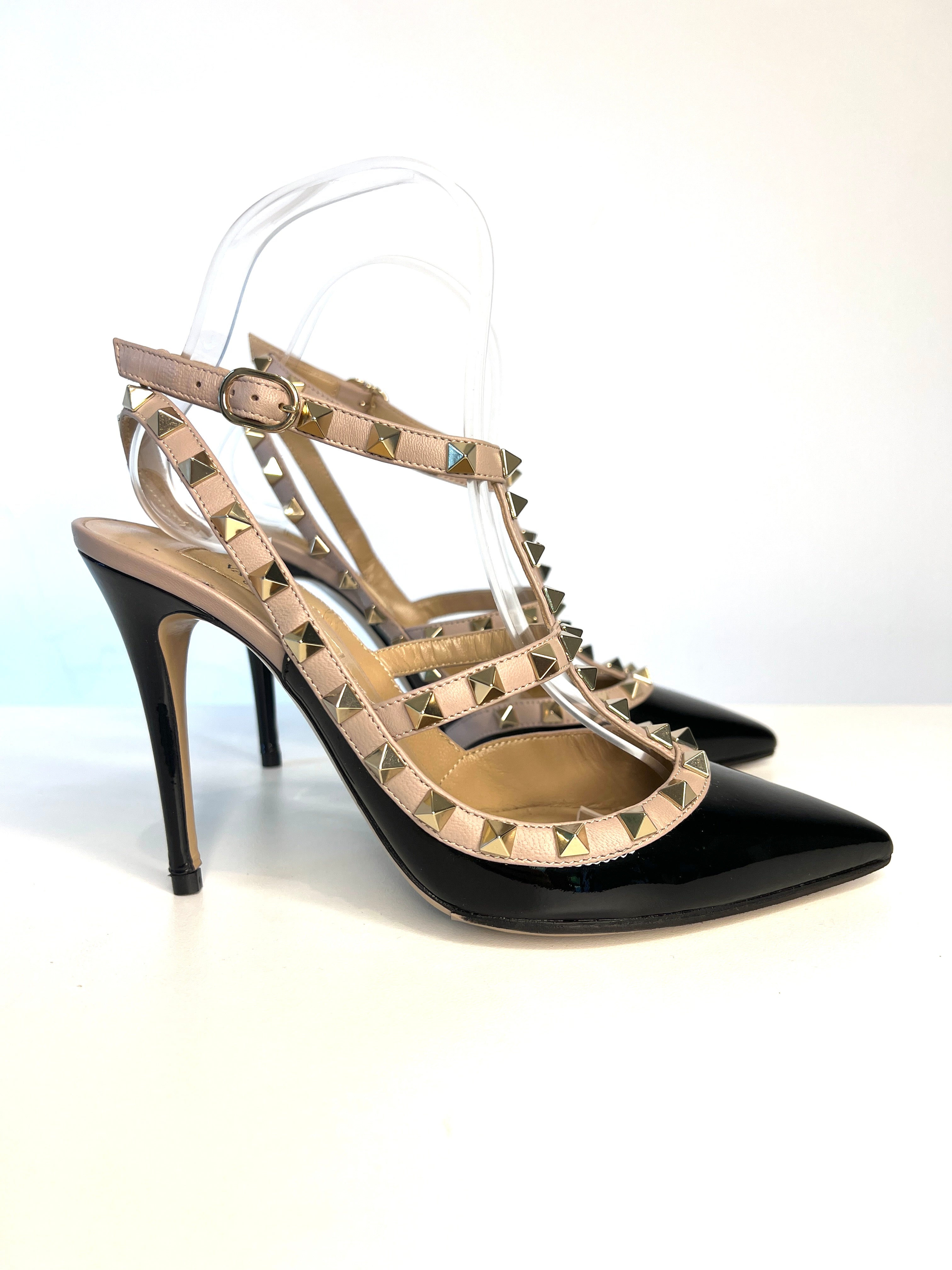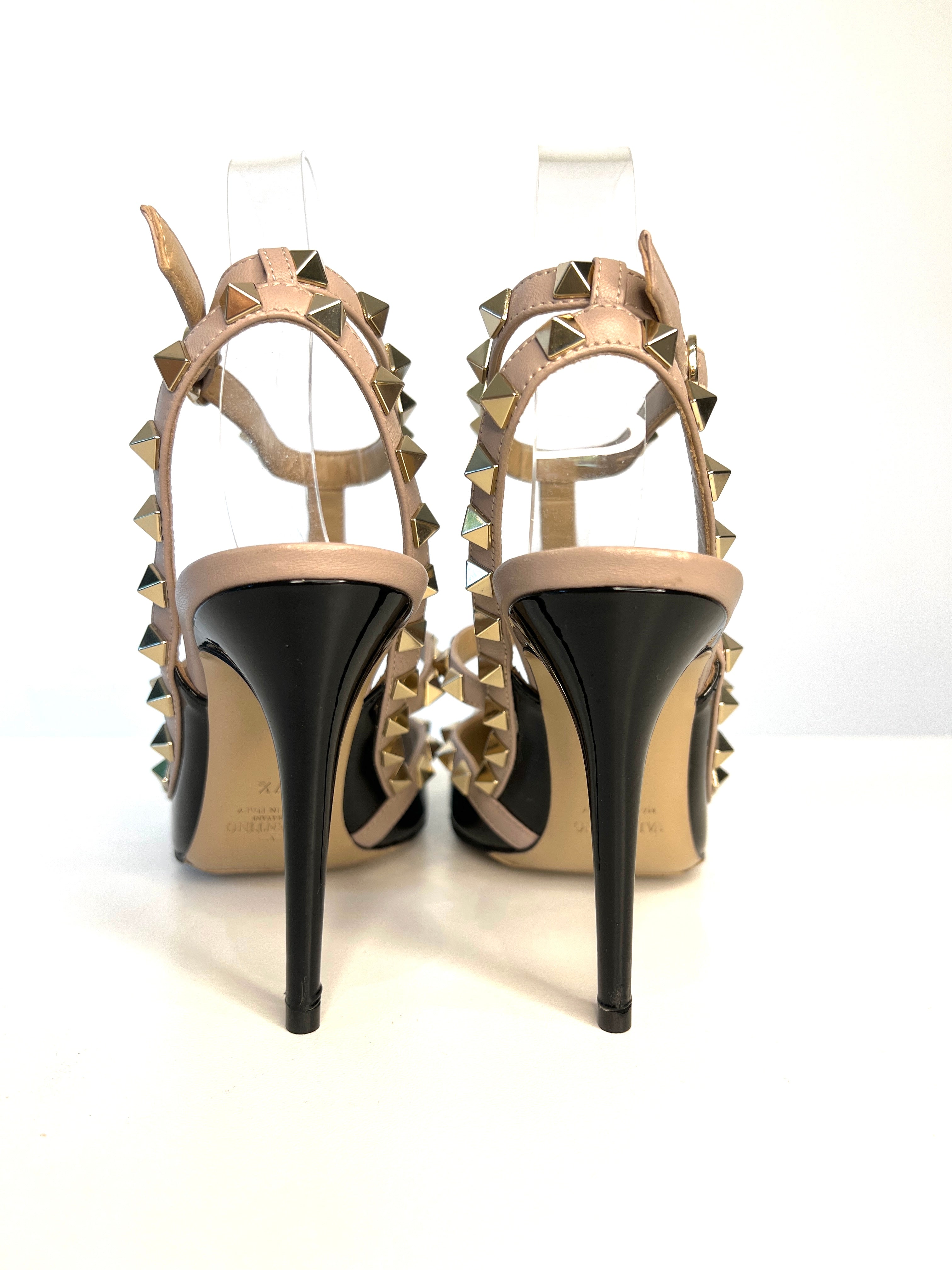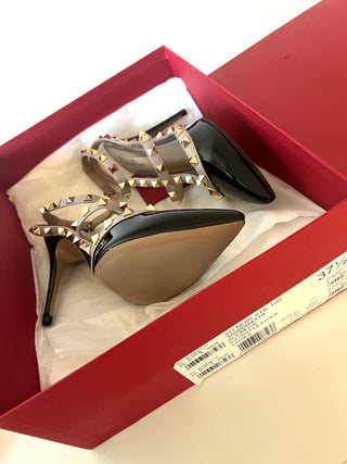 Valentino Garavani Rockstud 100 Caged Black Patent Leather Heels Sandals 37.5 UK4.5