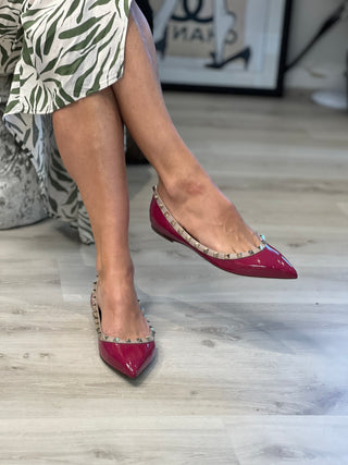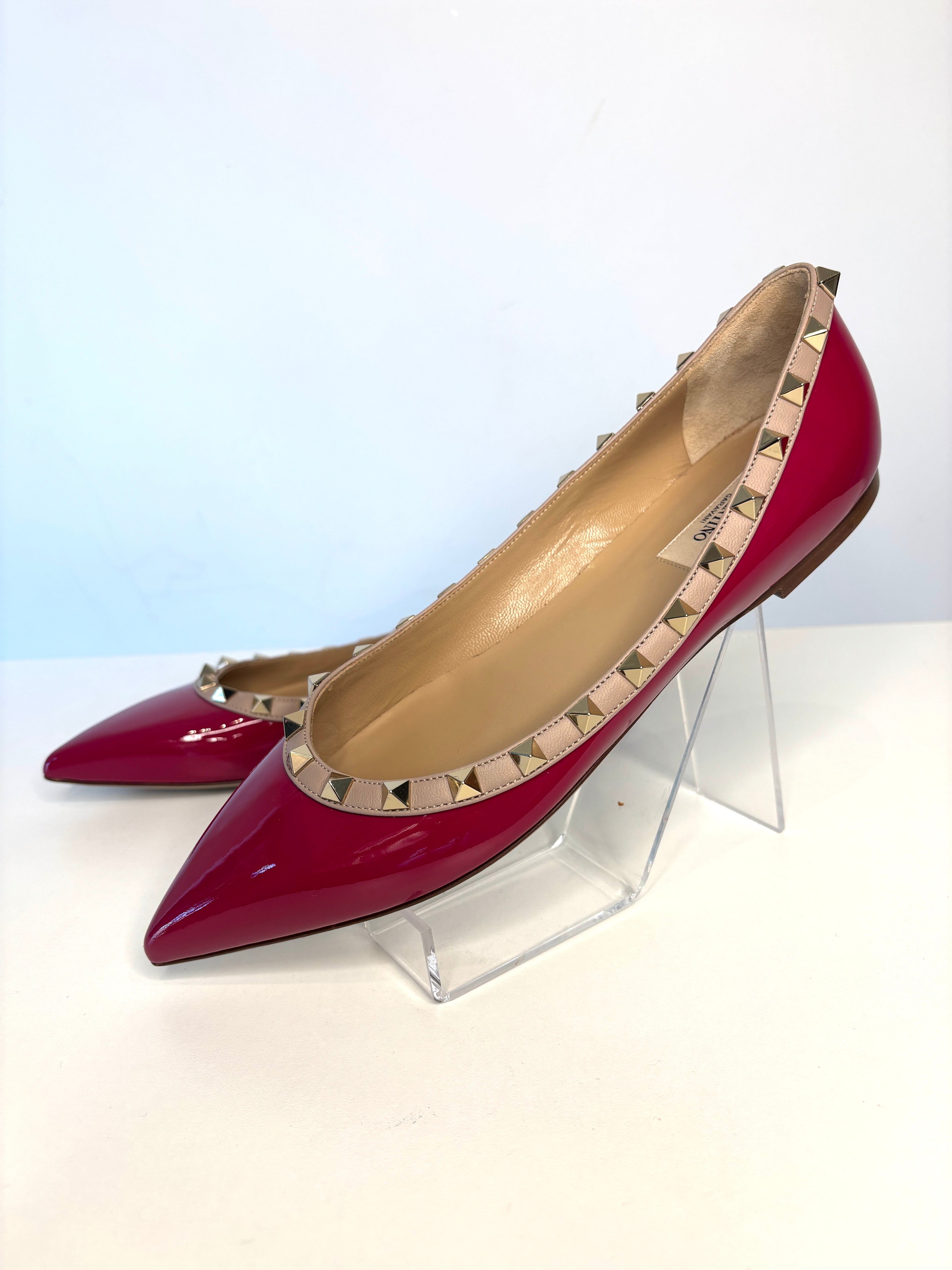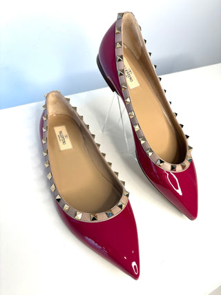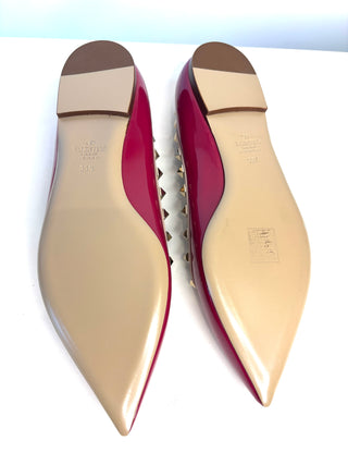 Valentino Rockstud Rasberry Pink Patent Leather Ballet Flats 39.5 UK6.5